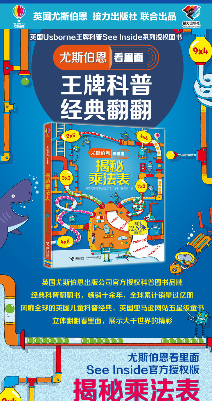 尤斯伯恩看里面·揭秘乘法表 See Inside揭秘系列图书,120多张翻页,揭秘乘法表中的规律,在互动翻翻中帮助孩子巧记乘法表
