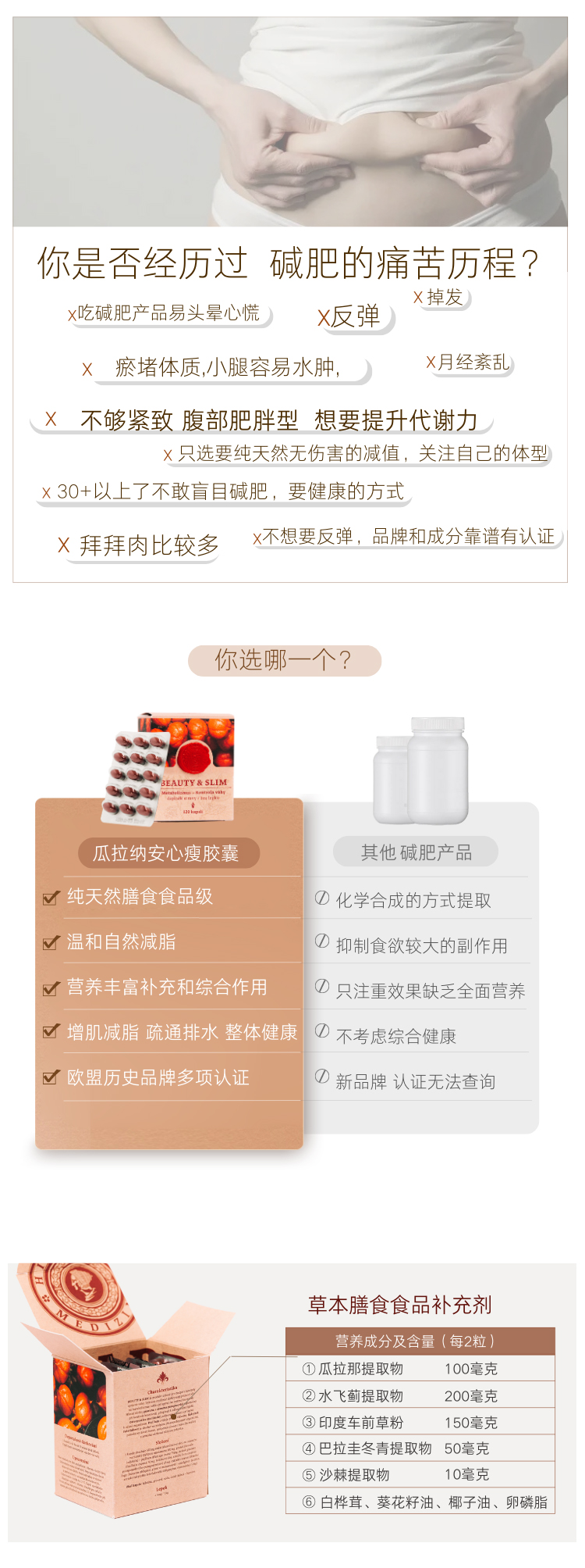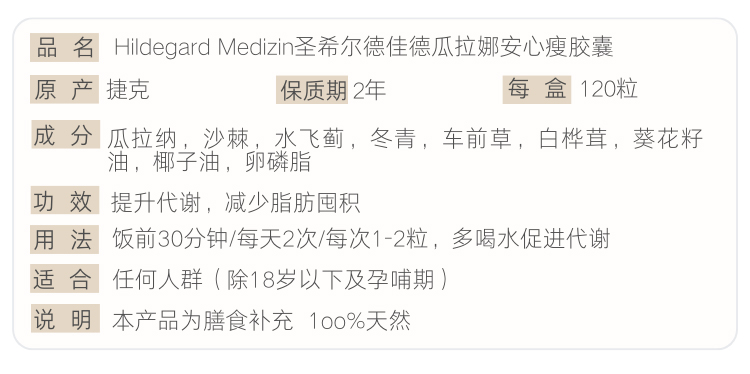 捷克圣希尔德佳德瓜拉纳安心瘦减重胶囊全身排油纯植物强代谢