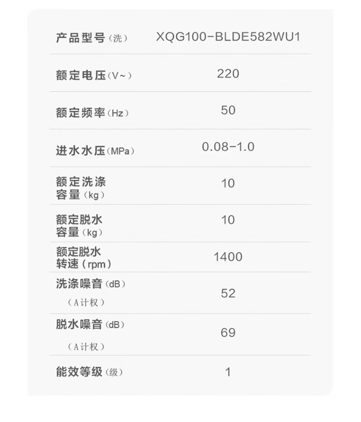 海尔(Haier)洗衣机 XQG100-BLDE582WU1