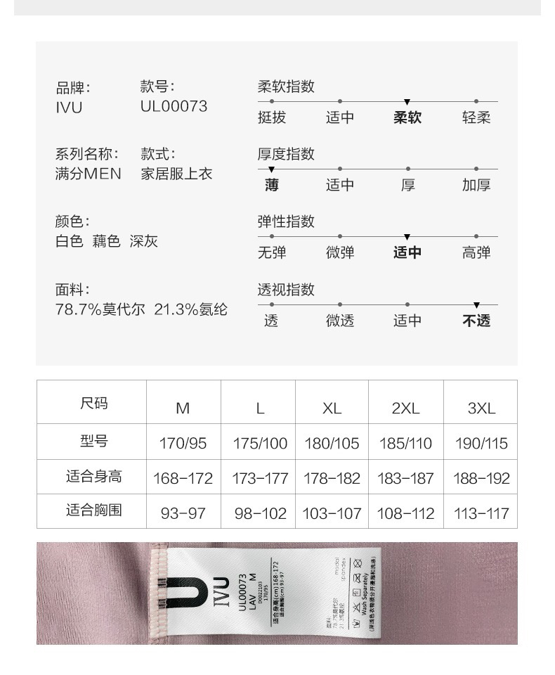 6F IVU男士春薄款莫代尔抗菌长袖上衣