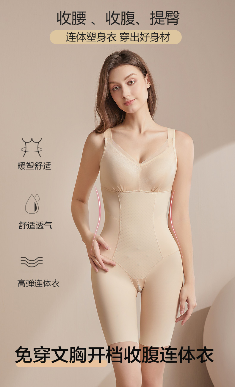 免穿文胸开档收腹连体衣 产后三个月内偏大一个码数买,年龄超过38岁偏大一个码数购买!