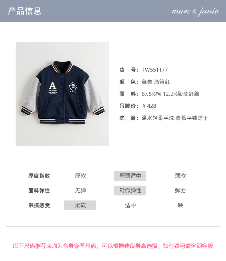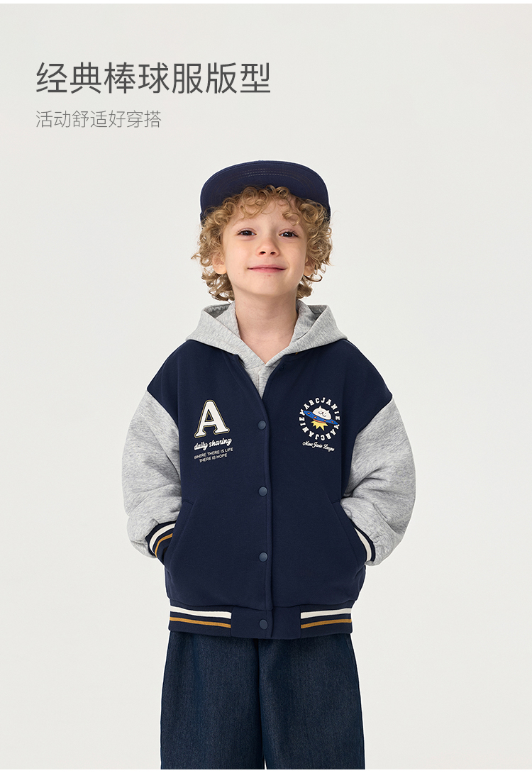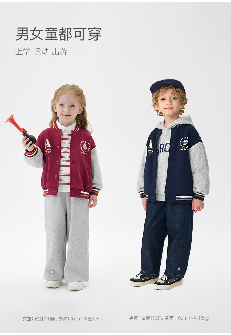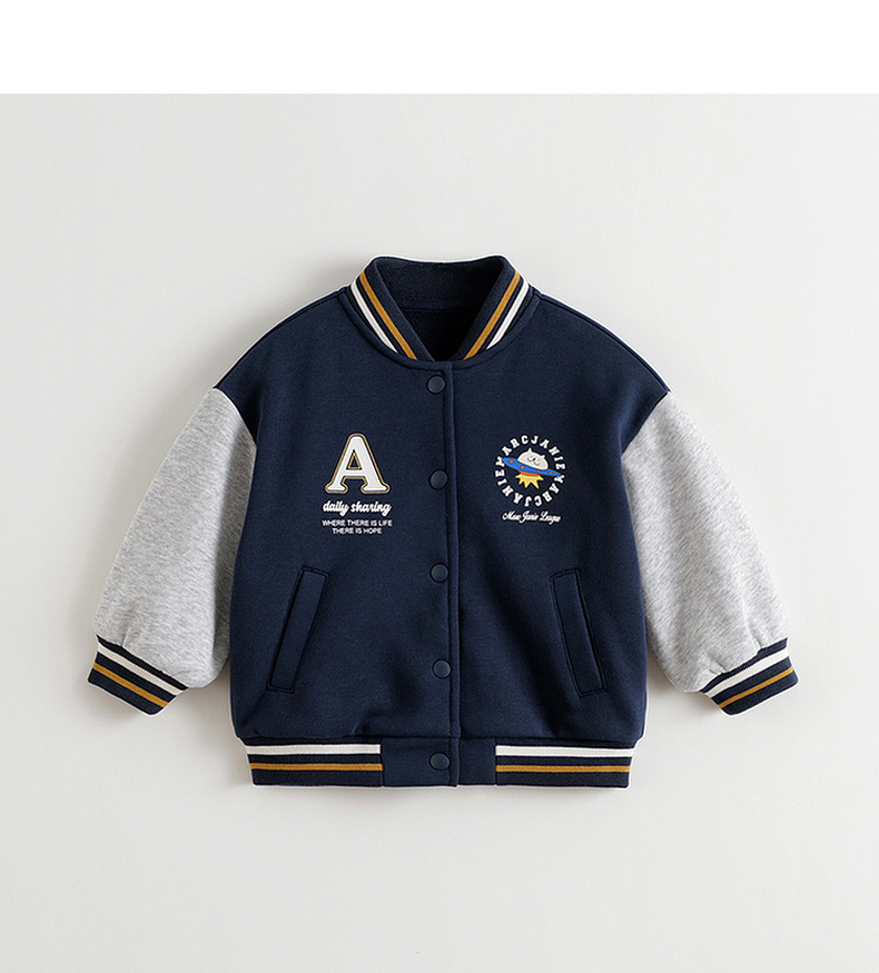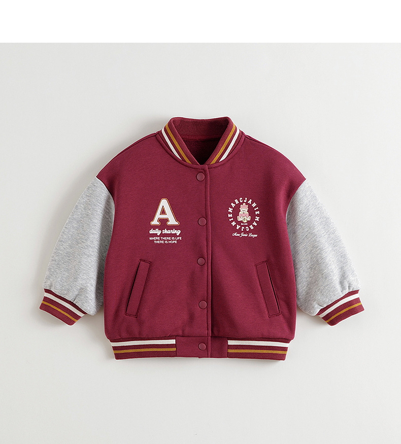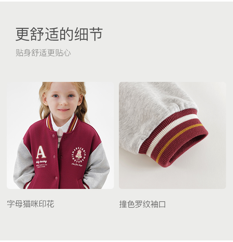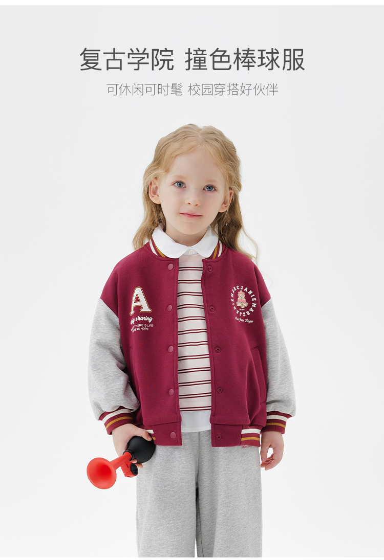 马克珍妮男女童复古学院拼色棒球服宝宝外套2025年秋装新款551177