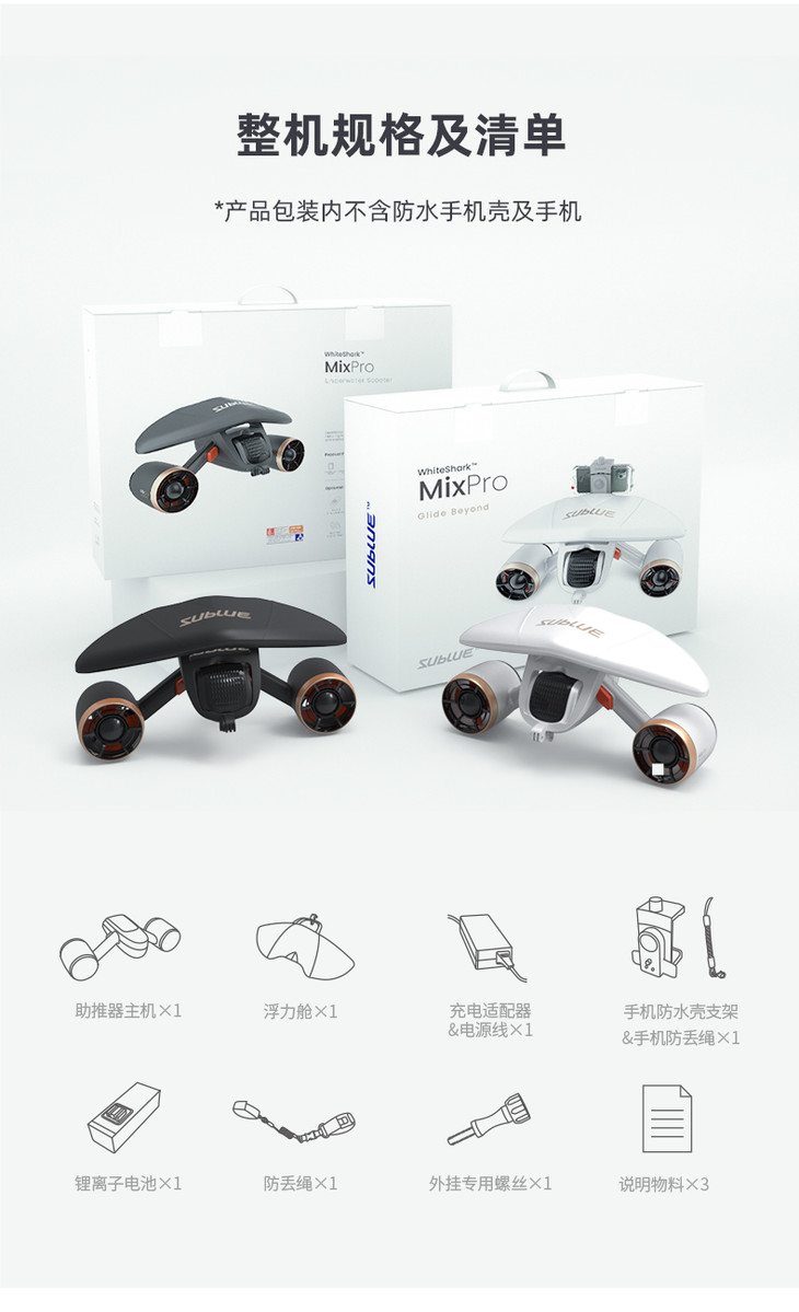 Sublue深之蓝白鲨MixPro水下无人机器人自游器潜水助力器浮潜推进器