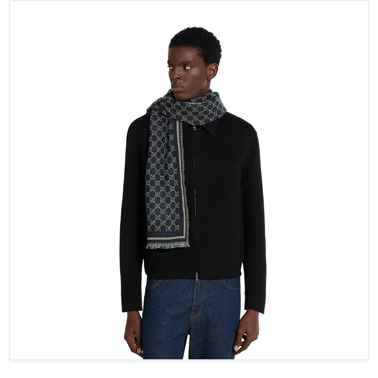 GUCCI 古驰 男士GG羊毛提花围巾 黑色 836264 4G386 1066