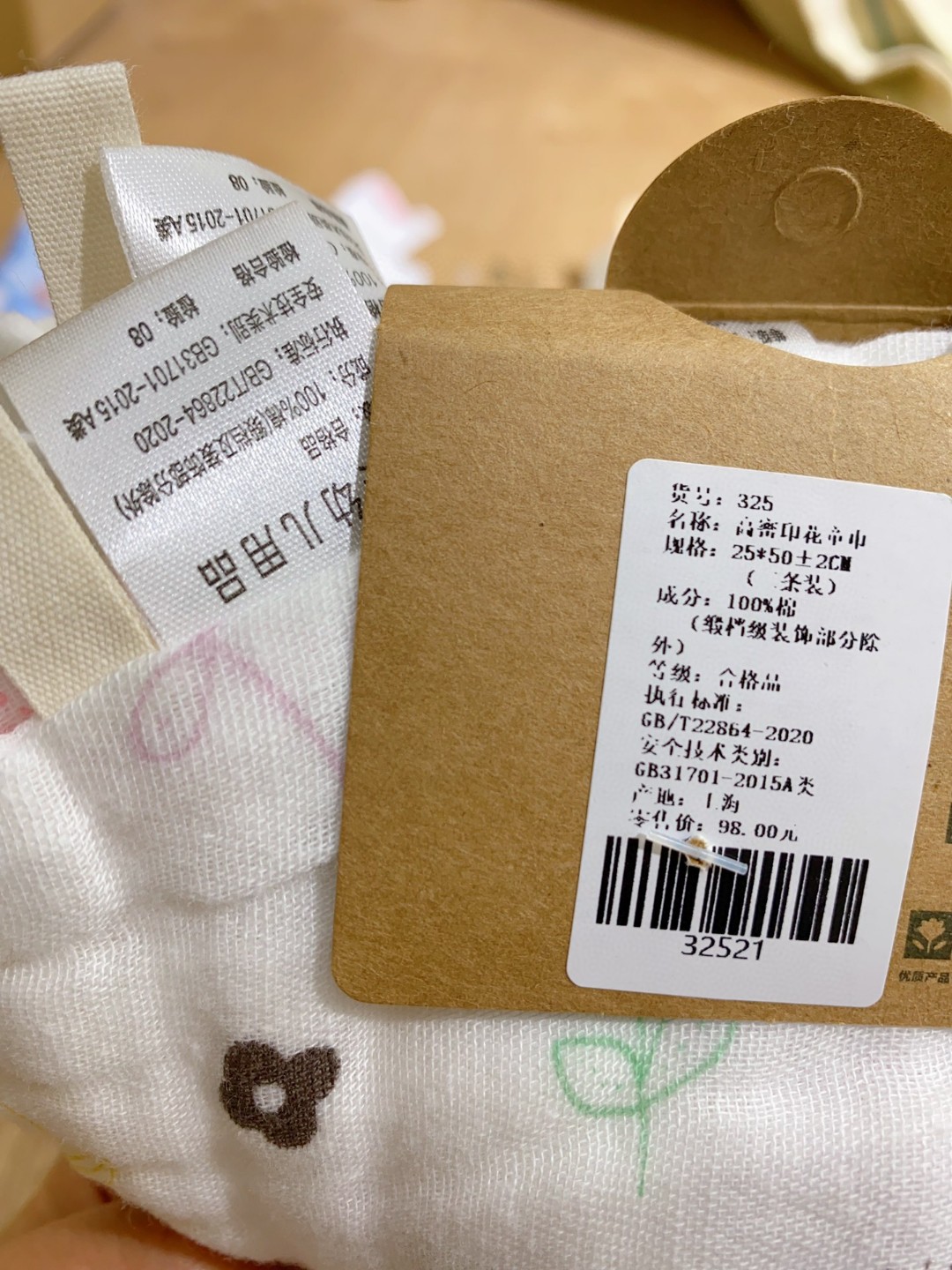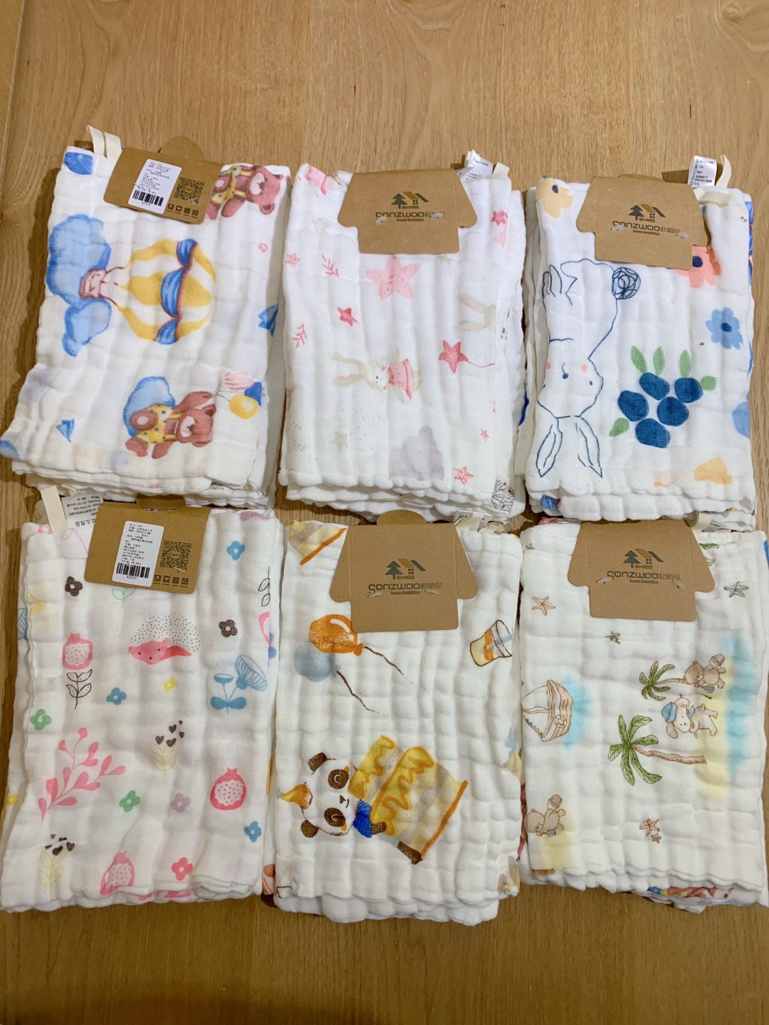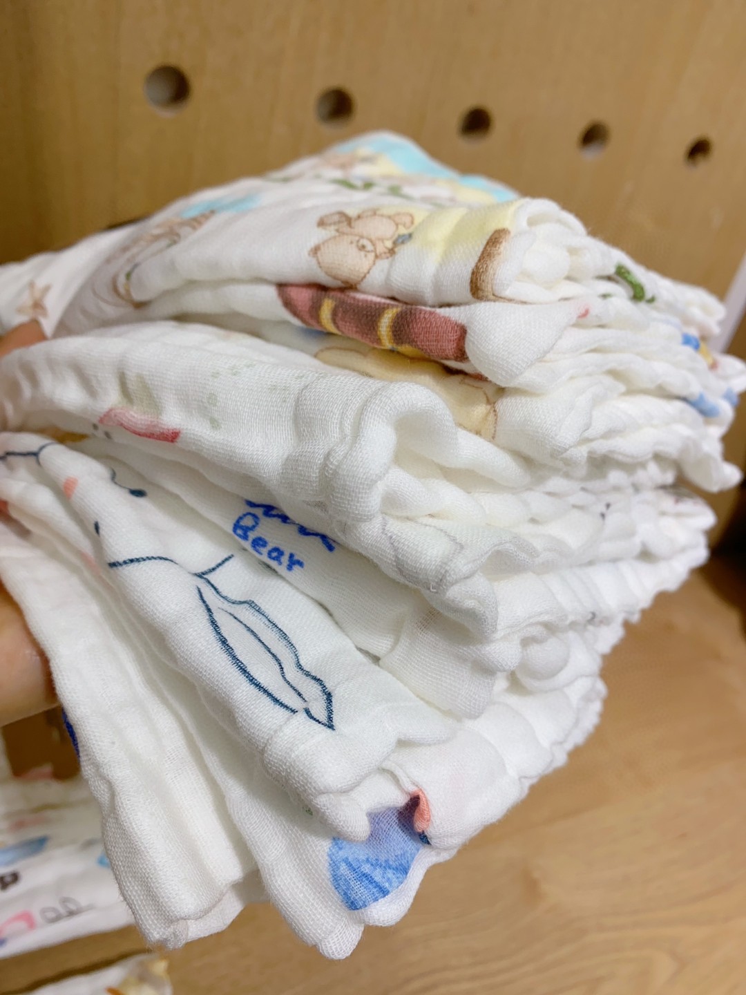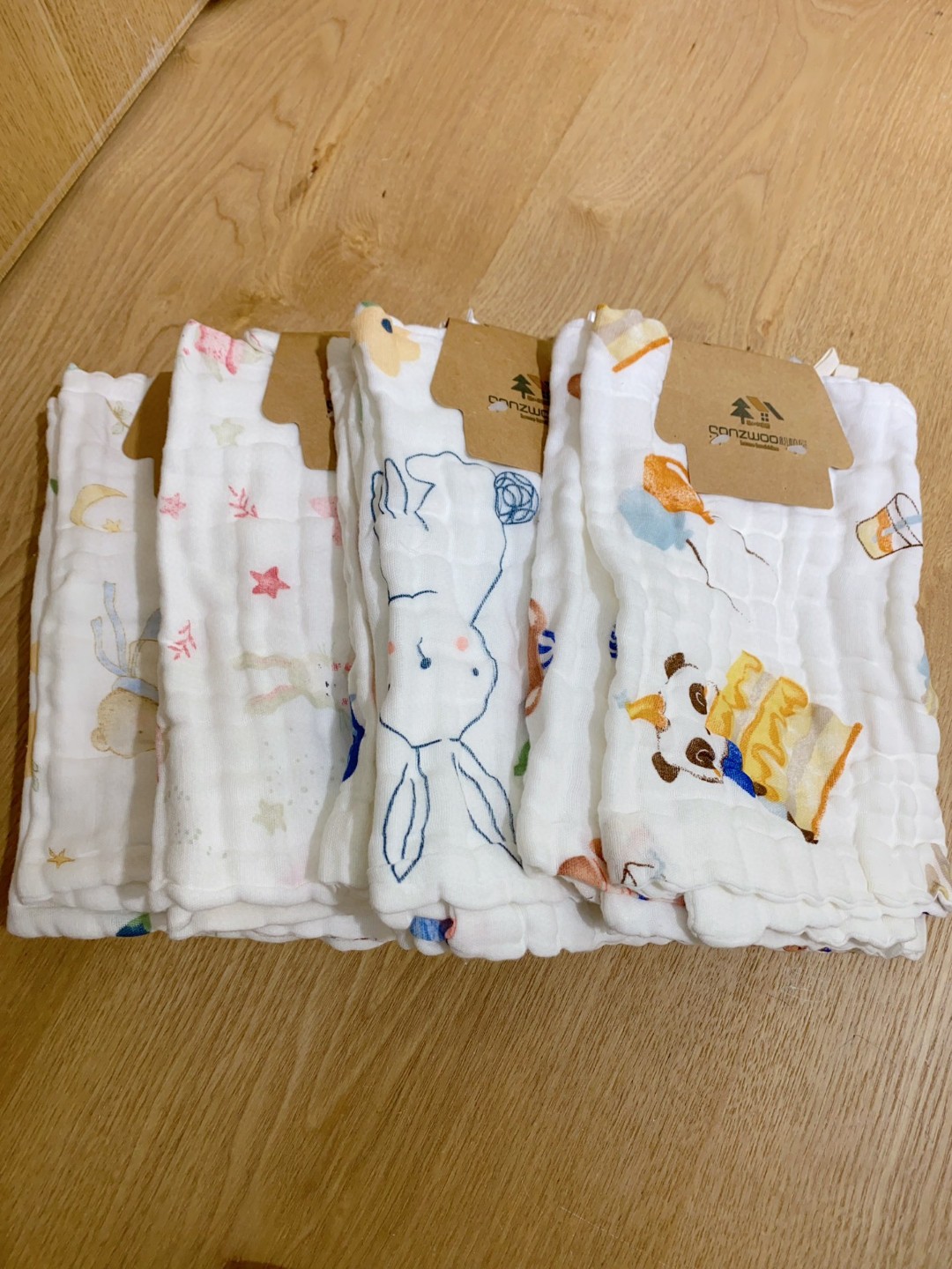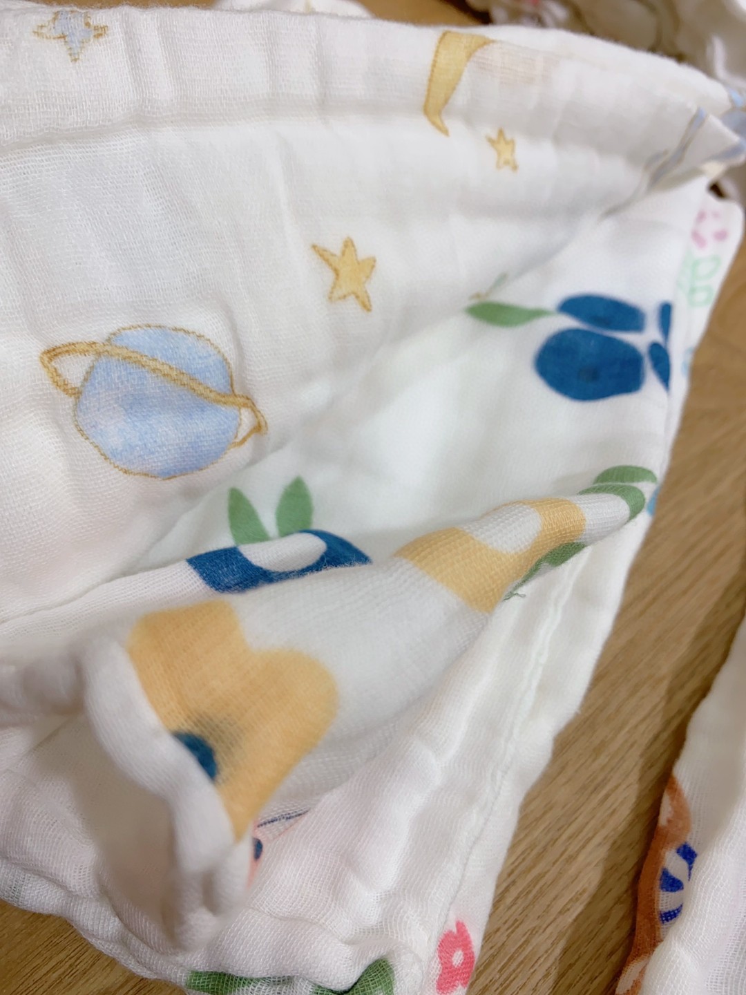松植屋全棉纱布高密印花童巾洗脸洗澡巾长方巾3条组合装