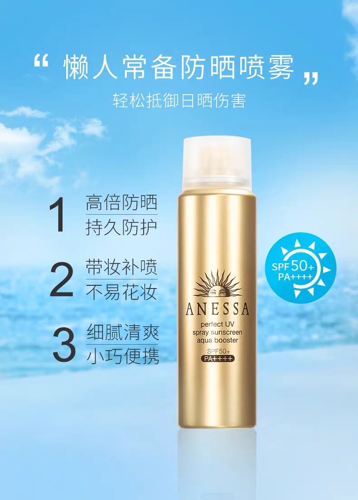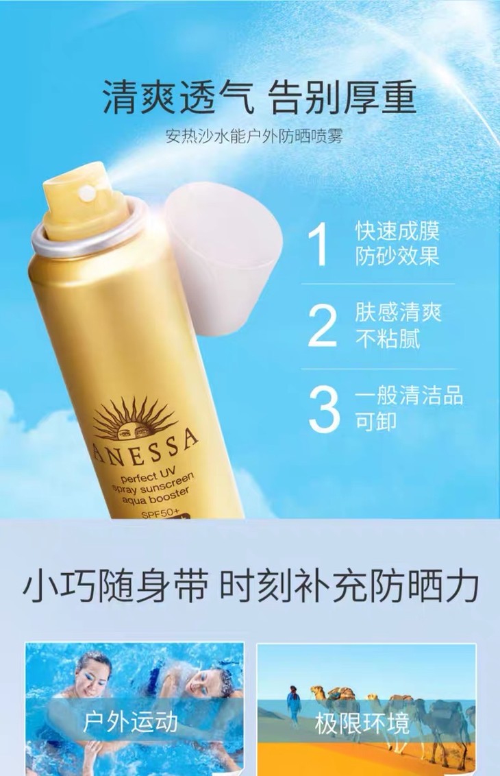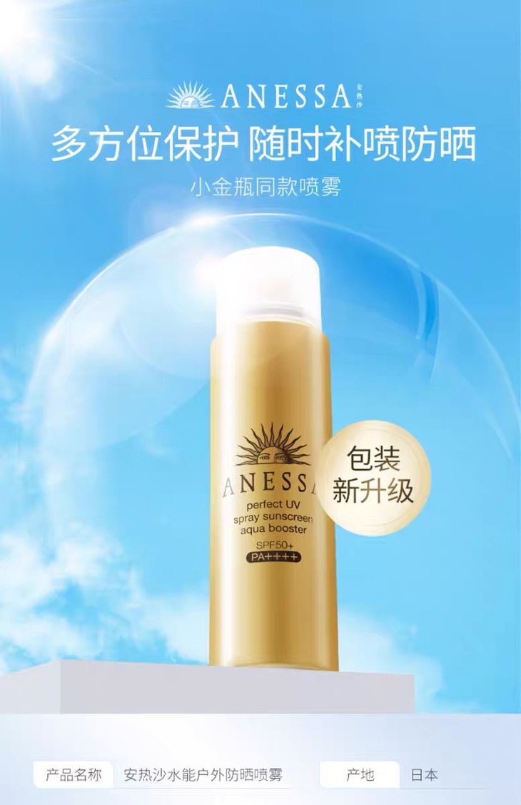 日本Shiseido/资生堂新款2024安耐晒金瓶防晒喷雾 SPF50+ PA++++ 安热沙水能户外身体防晒霜