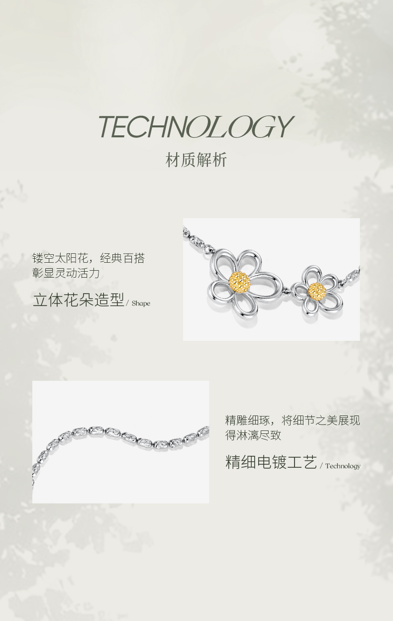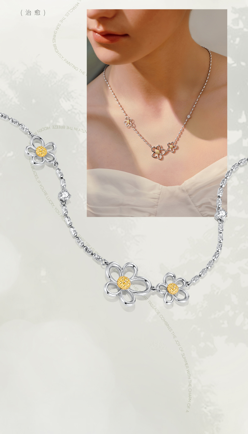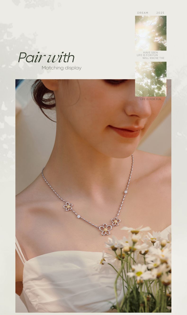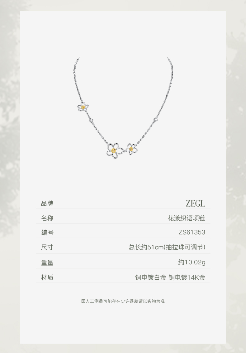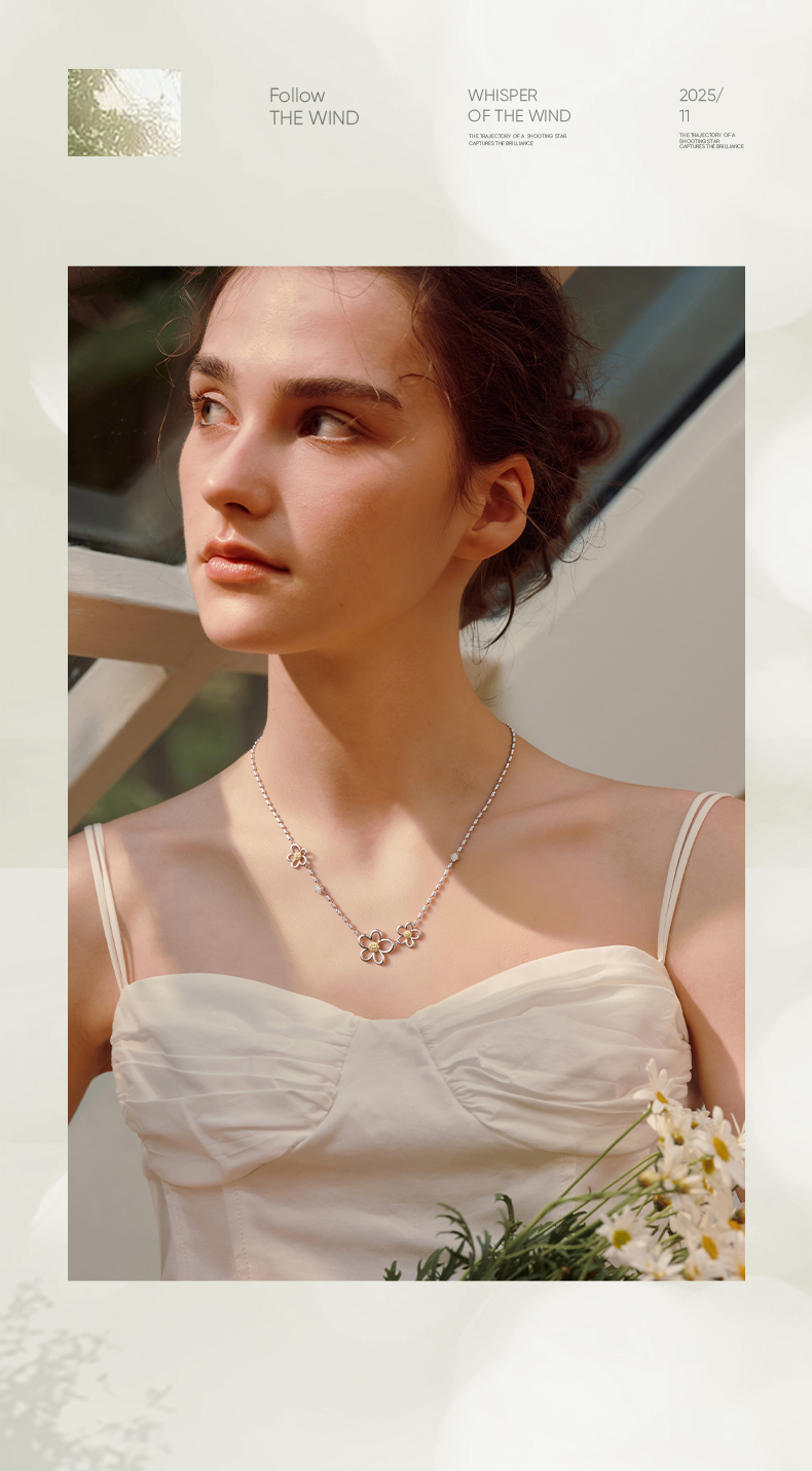 ZEGL花漫系列花朵项链女款高级感轻奢小众锁骨链秋冬银色颈链配饰