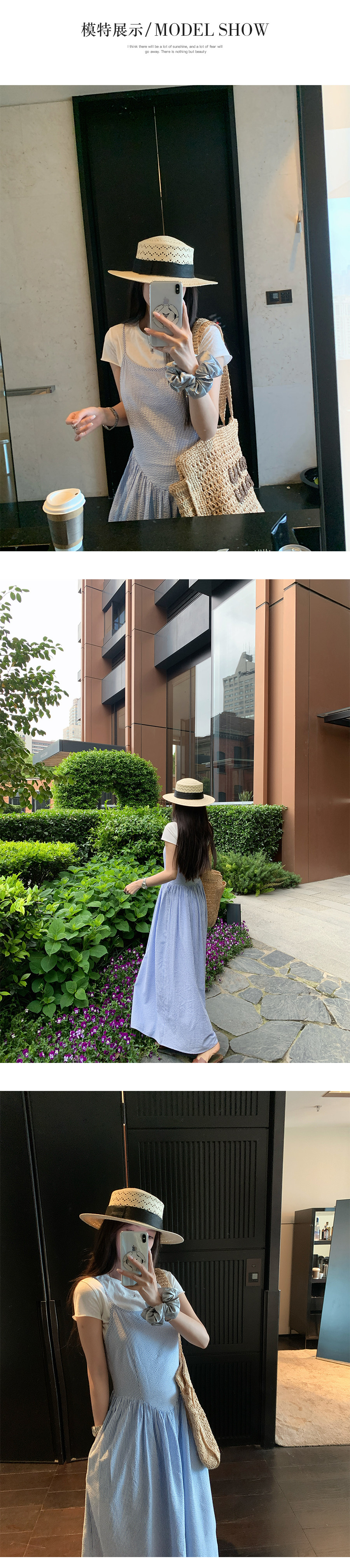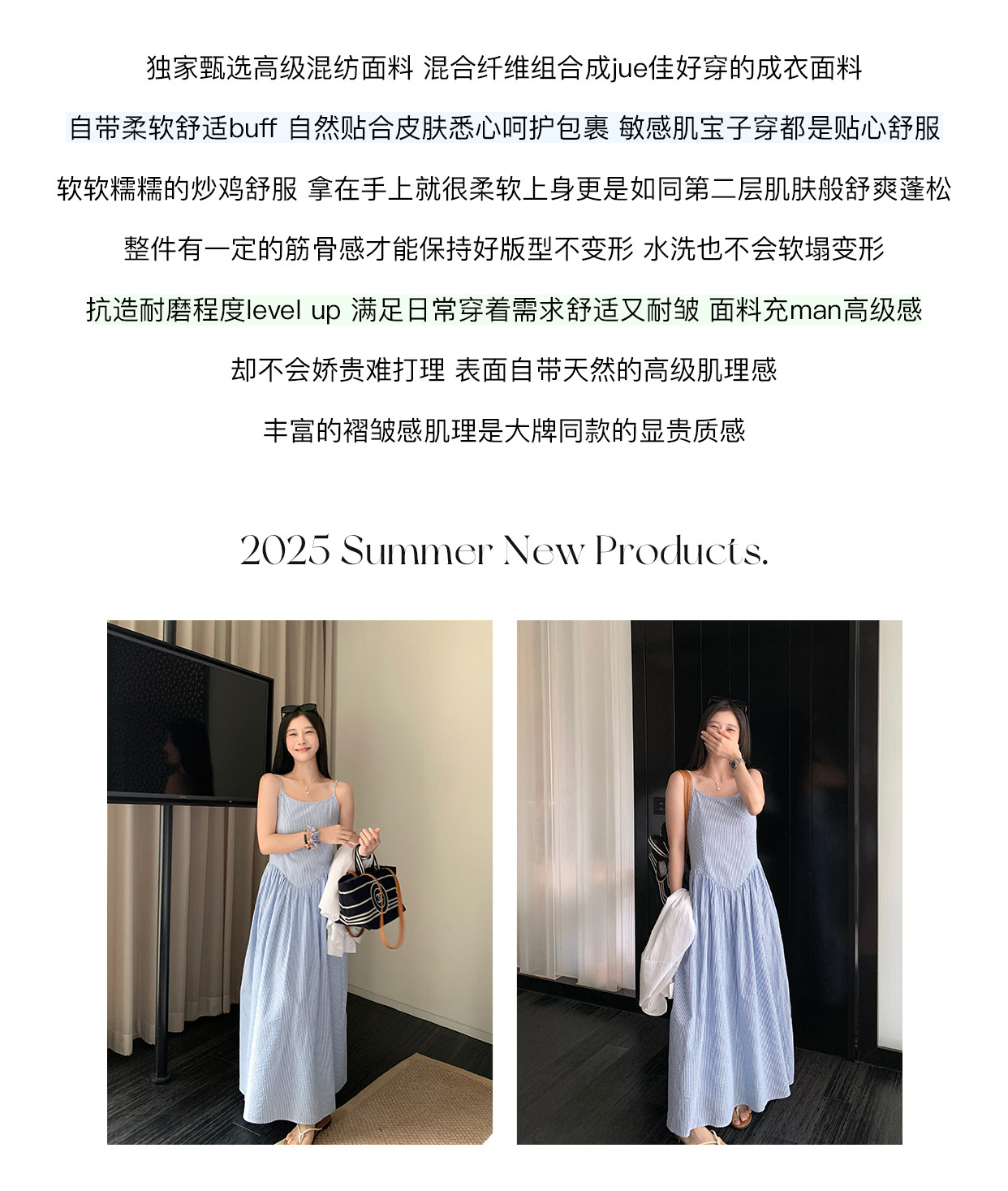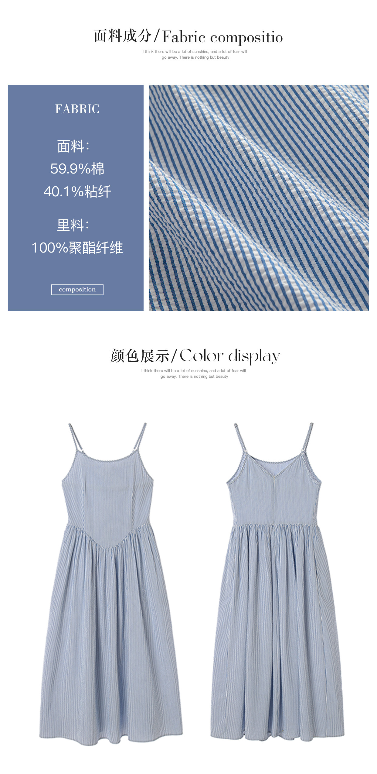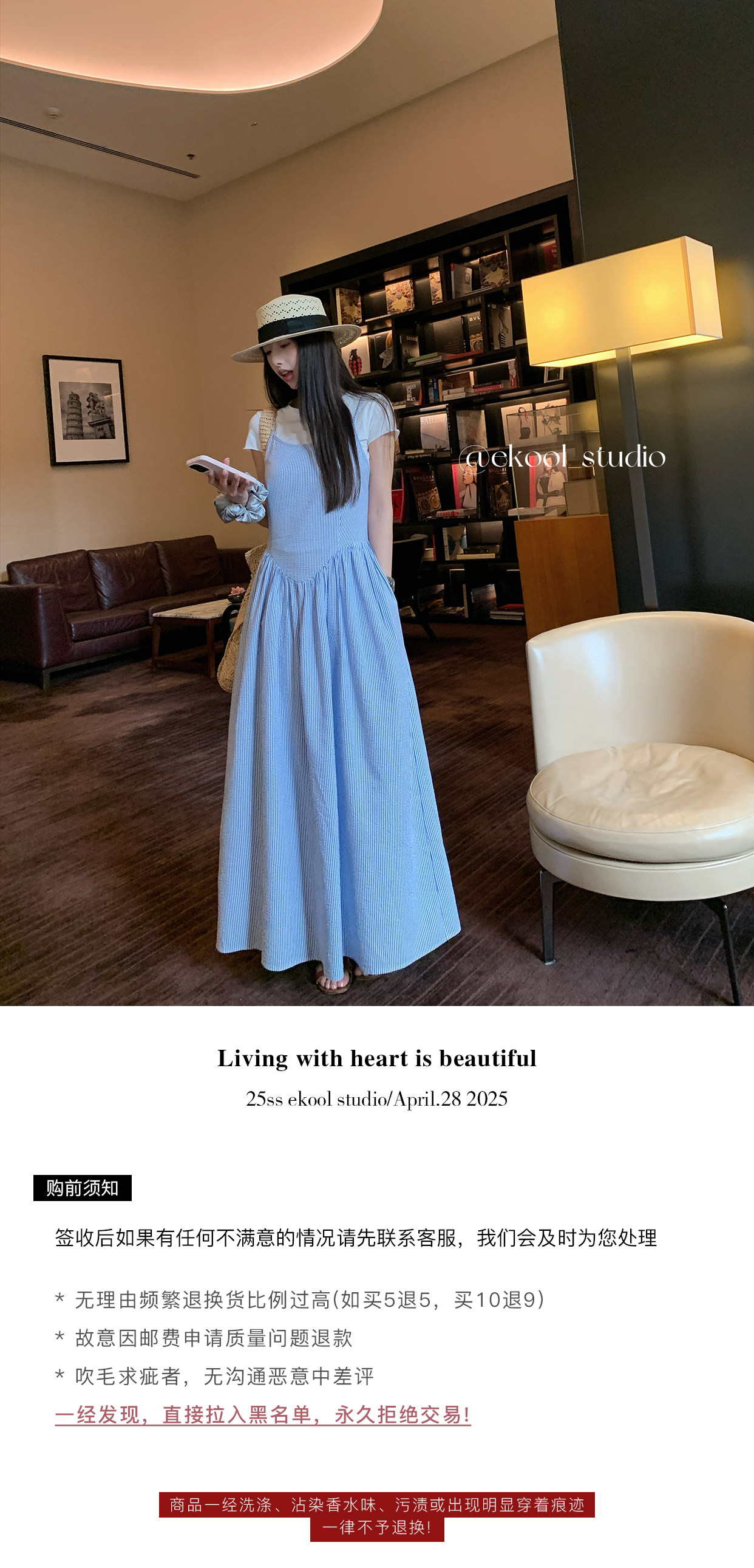 EKOOL衣库 减龄叠穿a字吊带裙女夏季高腰宽松显瘦无袖条纹连衣裙