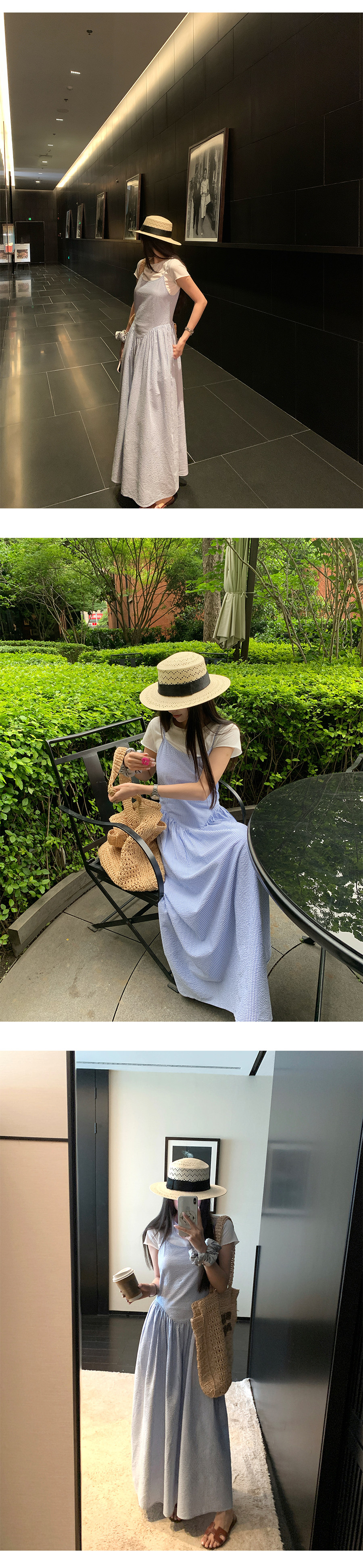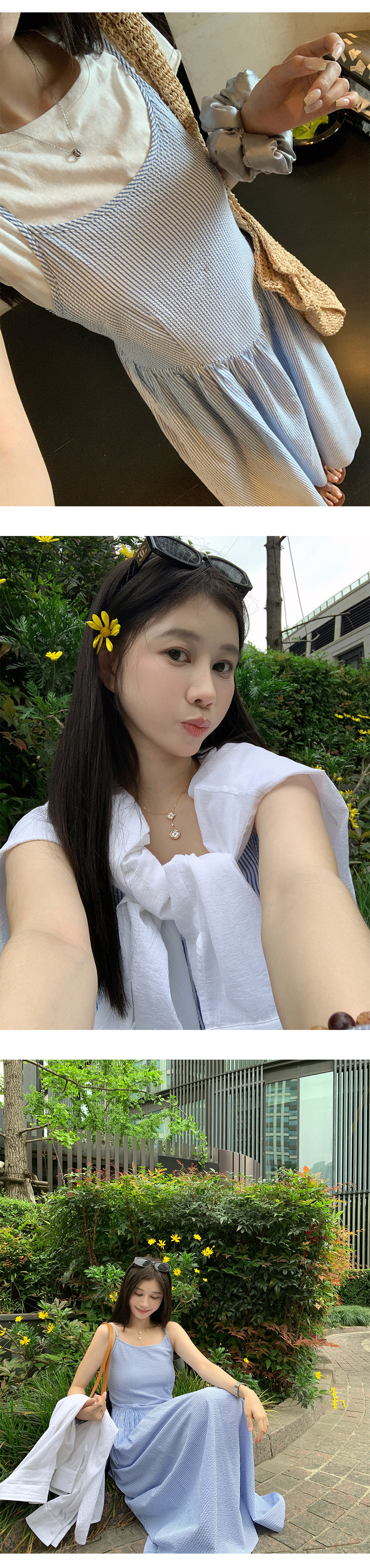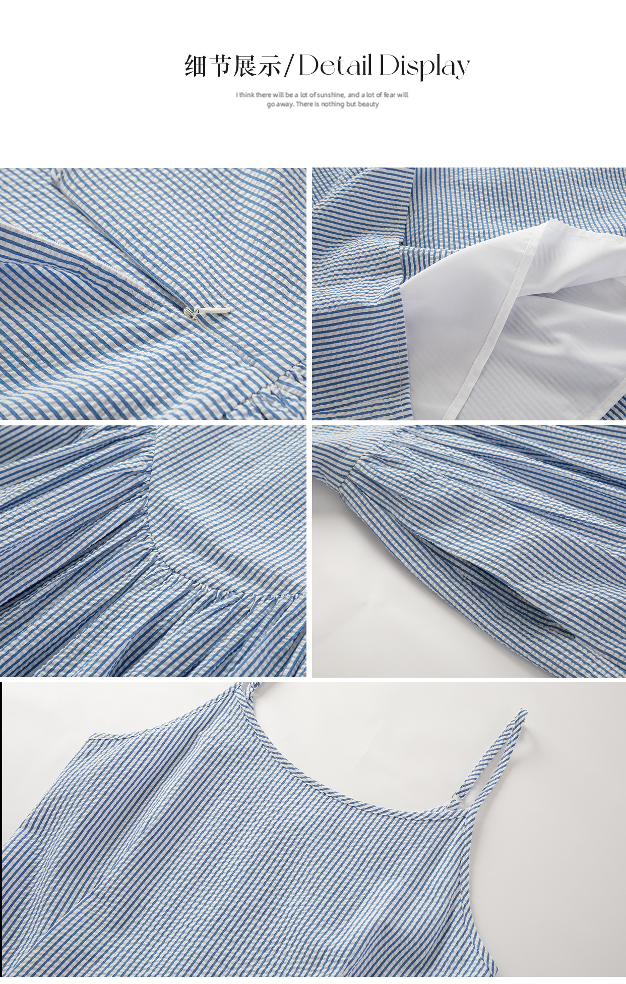 EKOOL衣库 减龄叠穿a字吊带裙女夏季高腰宽松显瘦无袖条纹连衣裙