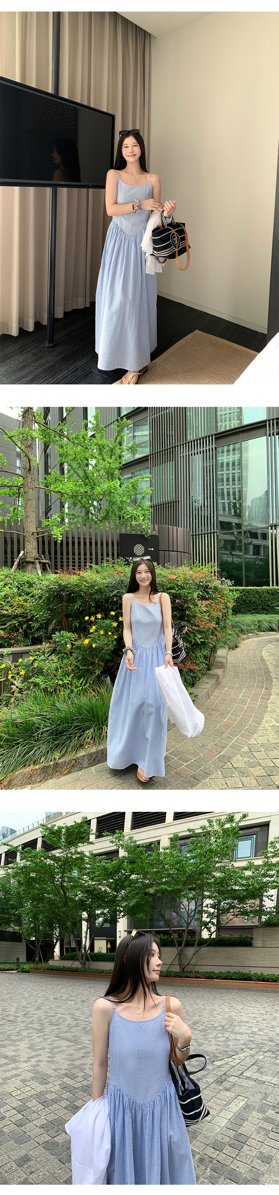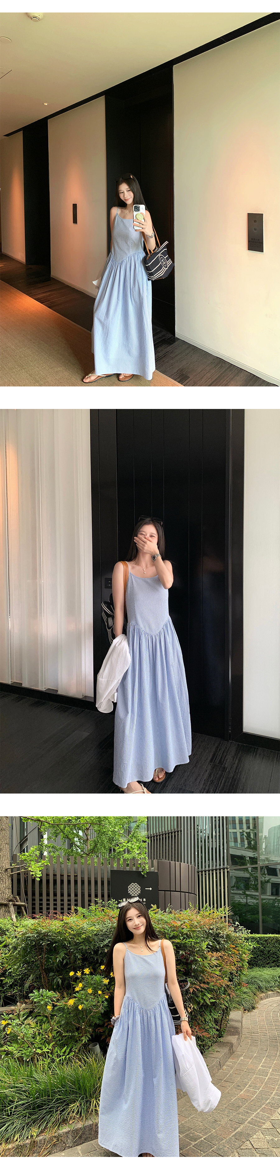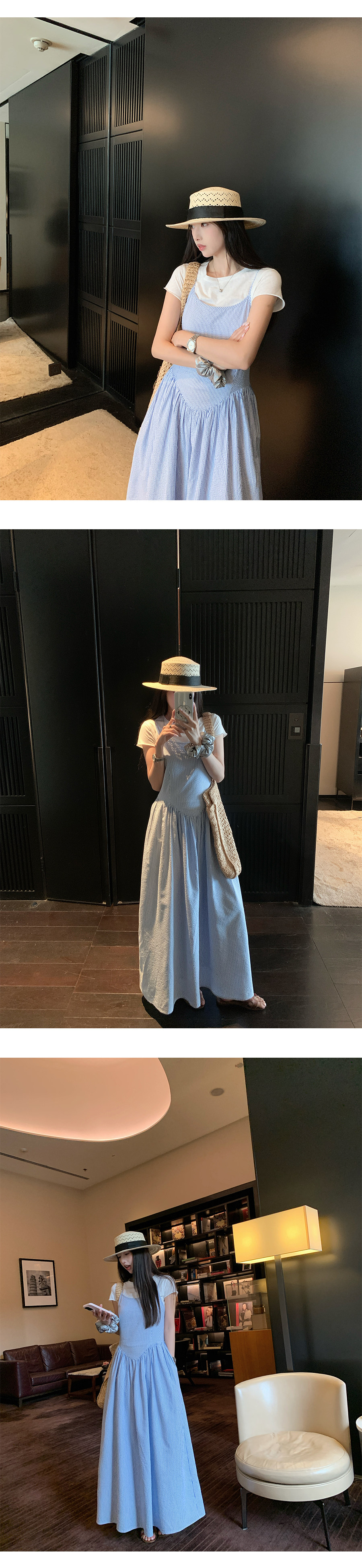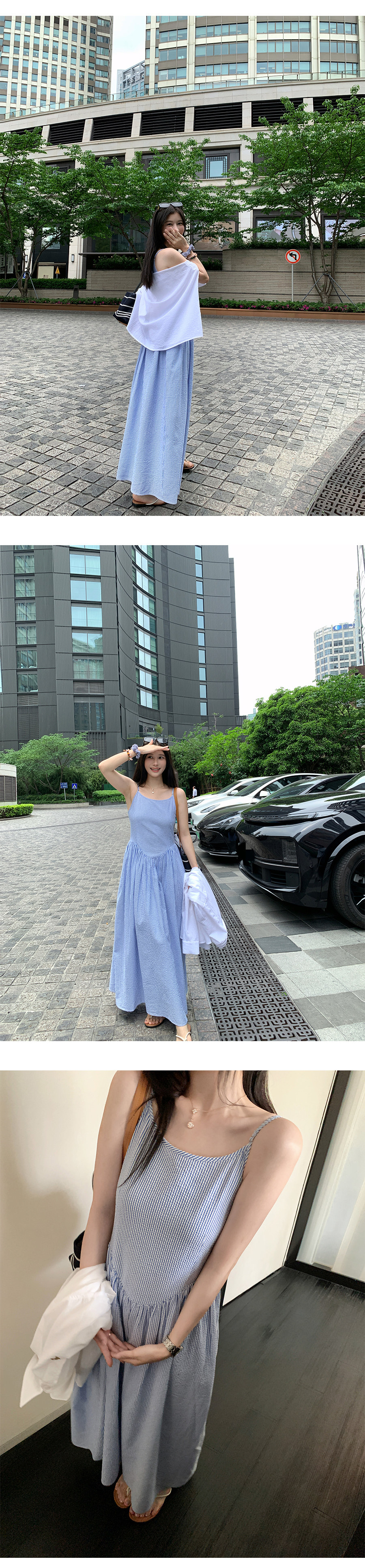 EKOOL衣库 减龄叠穿a字吊带裙女夏季高腰宽松显瘦无袖条纹连衣裙