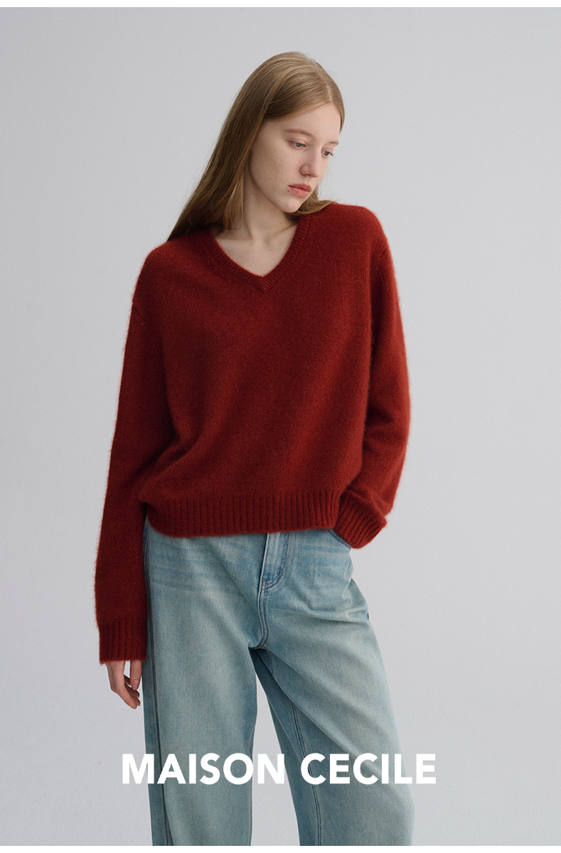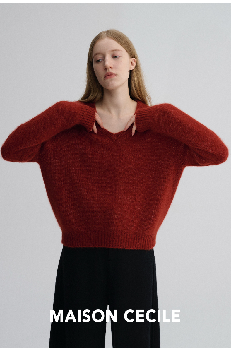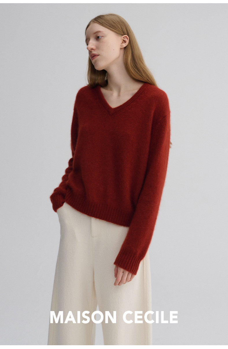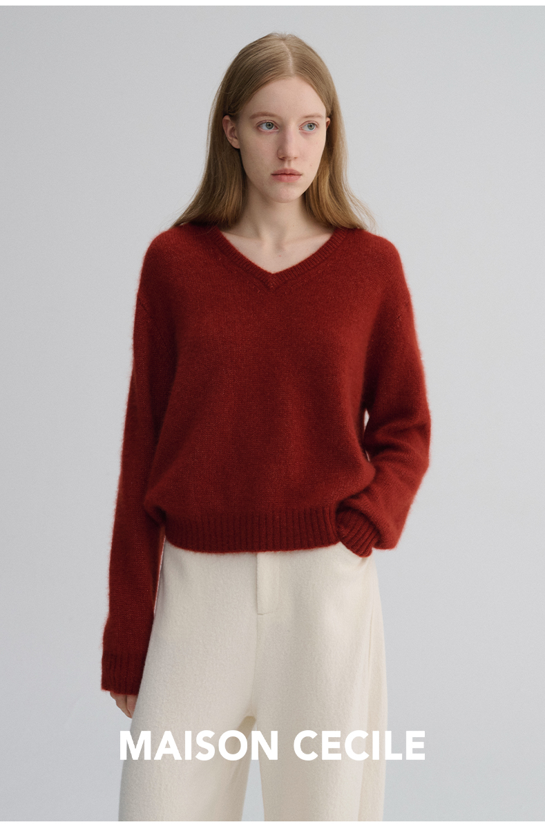 MAISON CECILE 三色/真丝羊绒云朵感亲肤软糯康宝莱V领套头毛衣