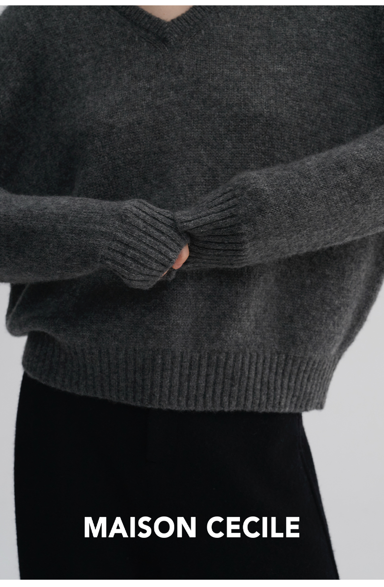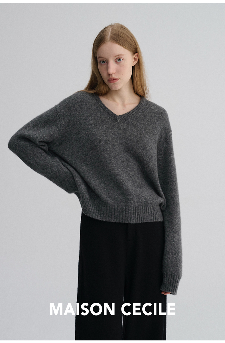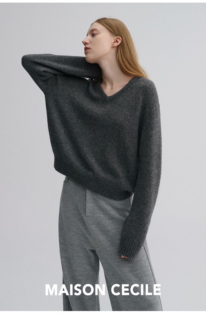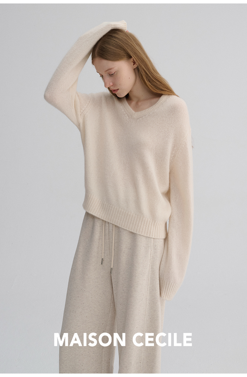 MAISON CECILE 三色/真丝羊绒云朵感亲肤软糯康宝莱V领套头毛衣