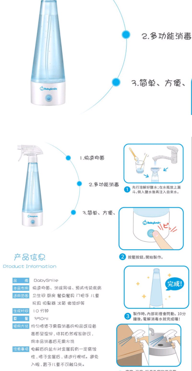 (超值)日本babysmile天然消毒水 自制生成器 家用