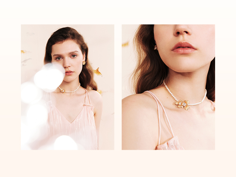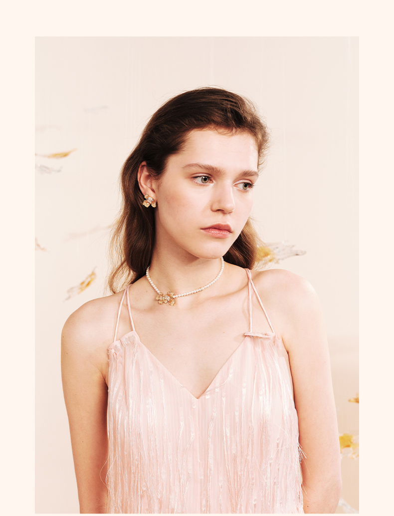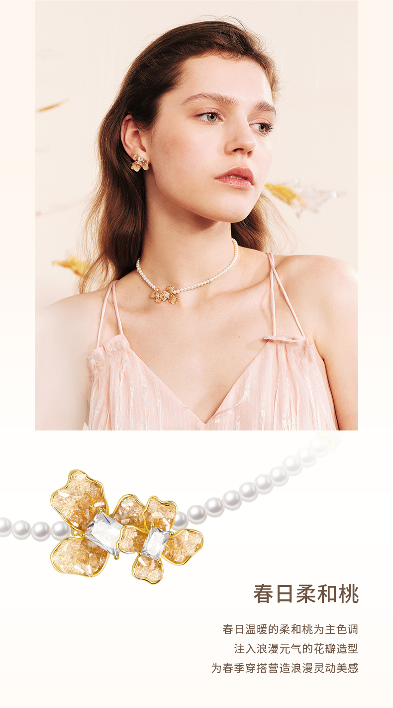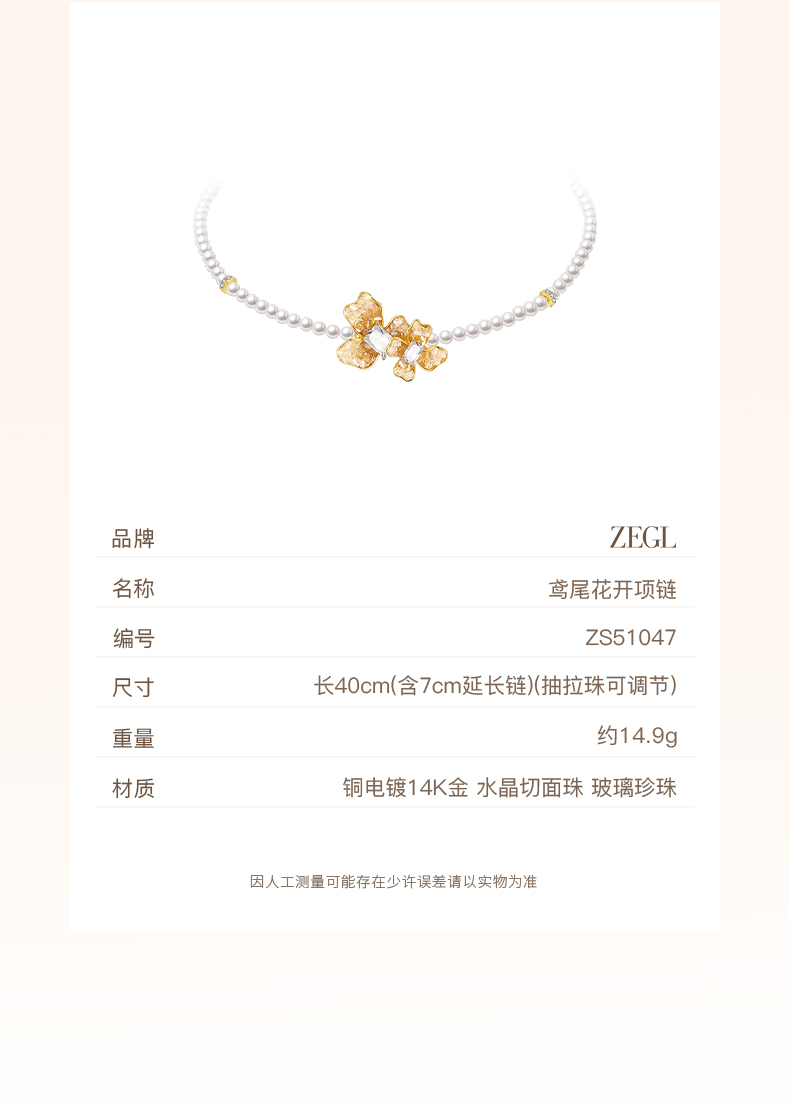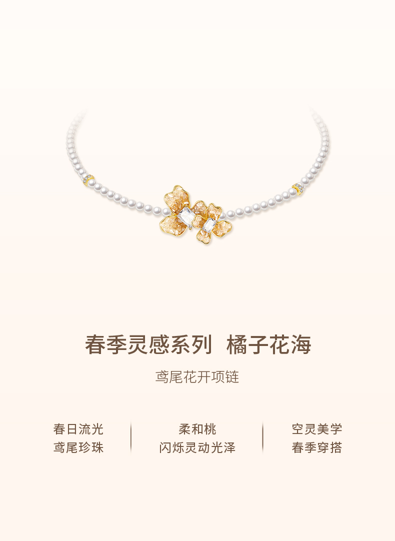 ZEGL设计师橘子花海系列人造珍珠项链女款2024新款花朵锁骨链饰品