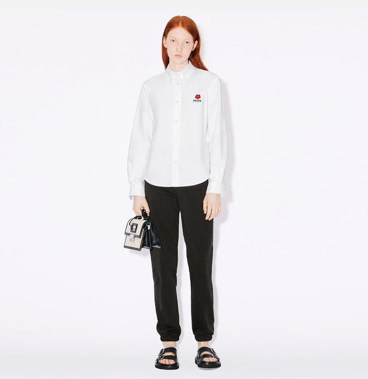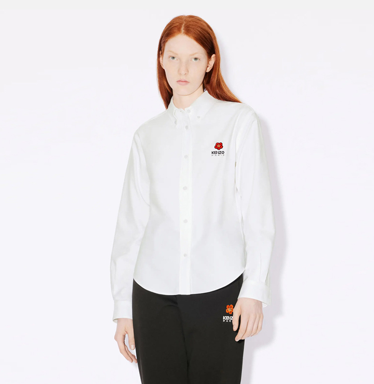KENZO 高田贤三 女士“BOKE FLOWER”徽章刺绣棉质长袖衬衫 白色 FD52 CH087 9LO 01