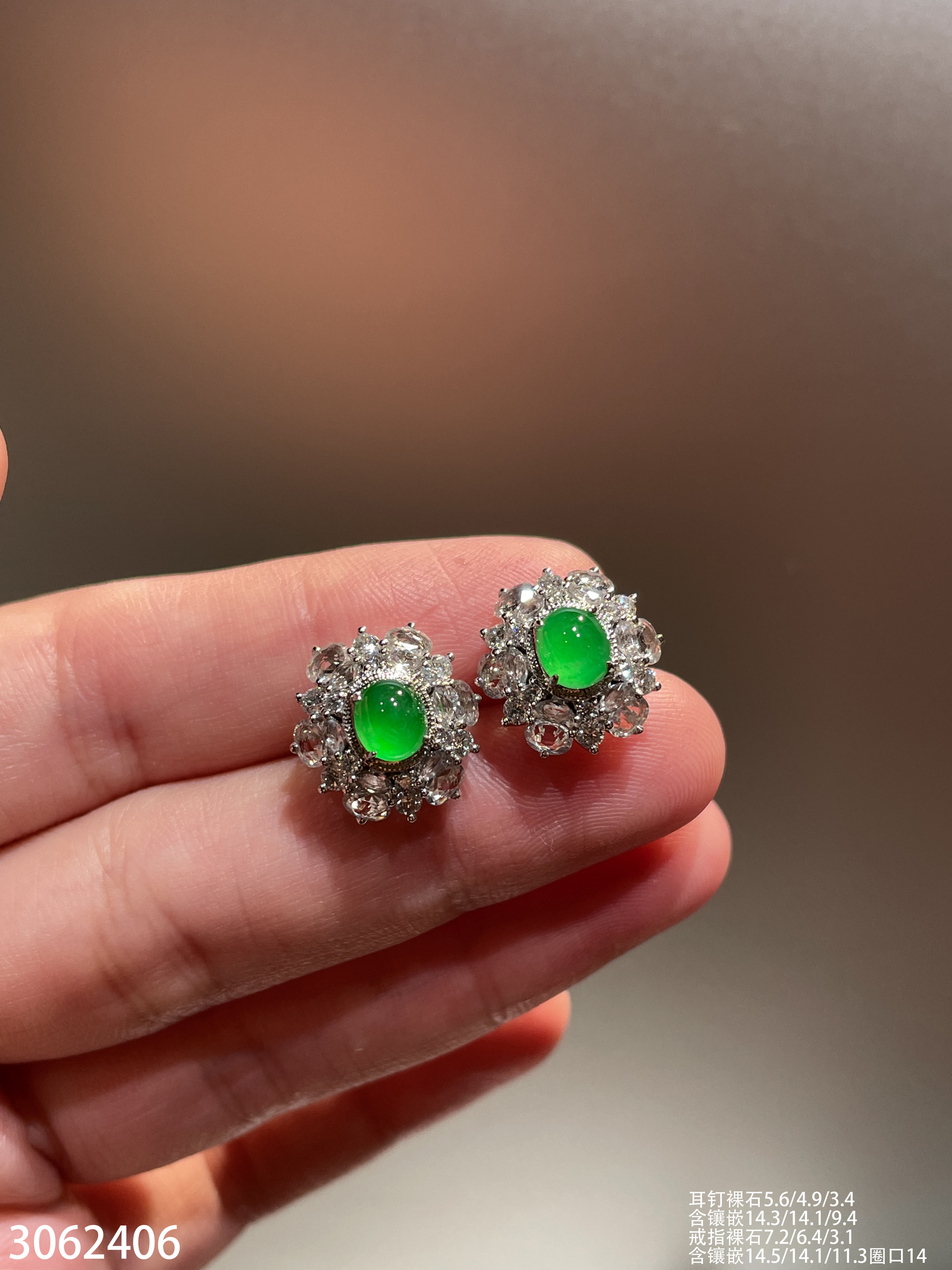 高冰种浓艳绿蛋面耳坠【6025704】具体价格微信咨询