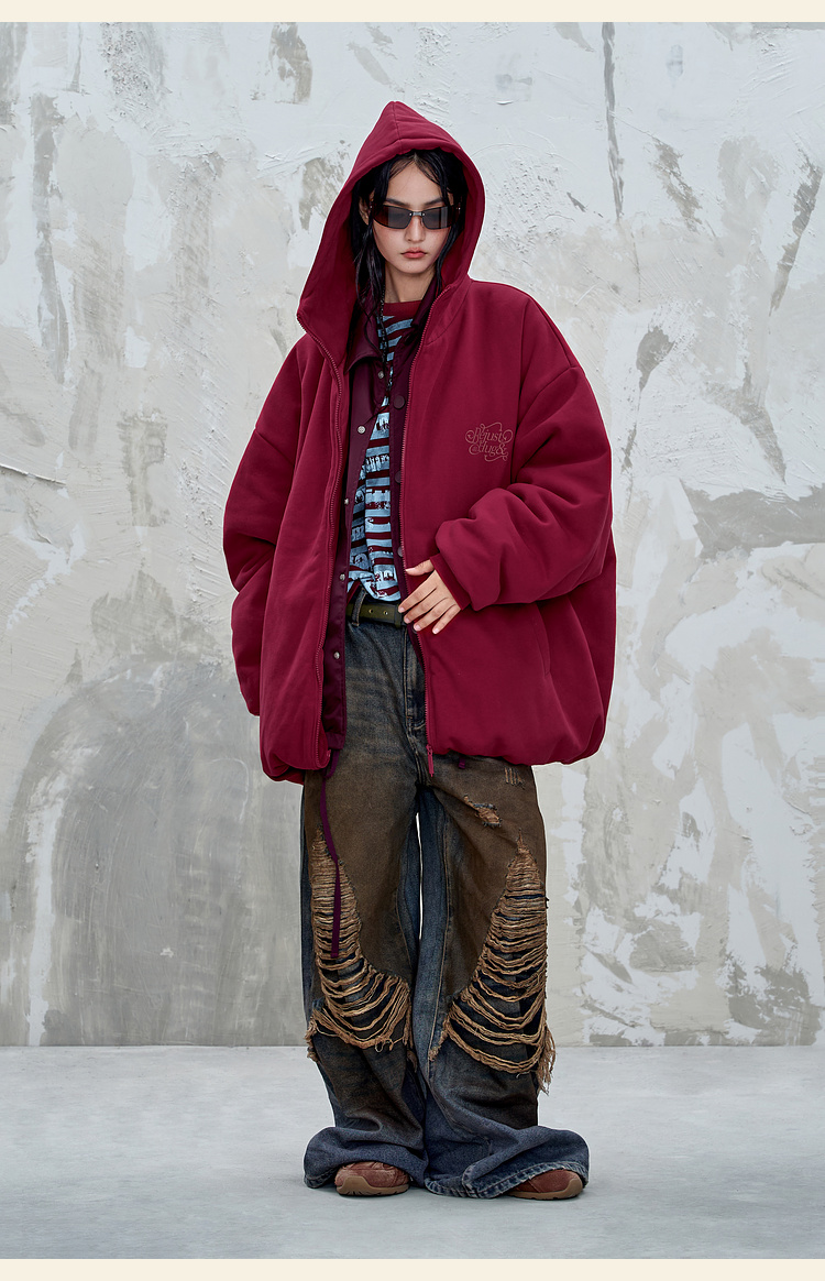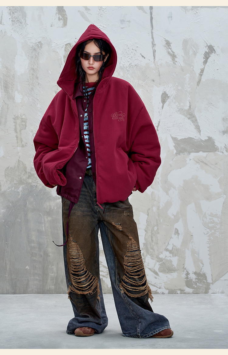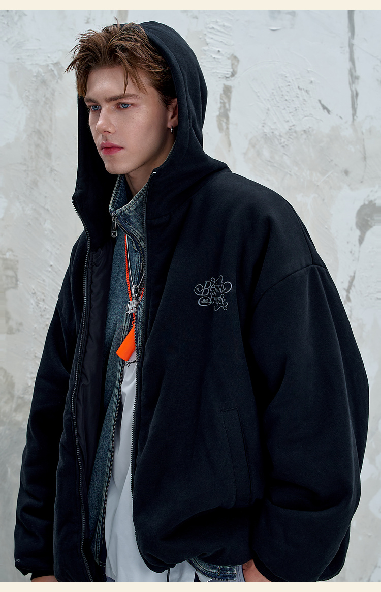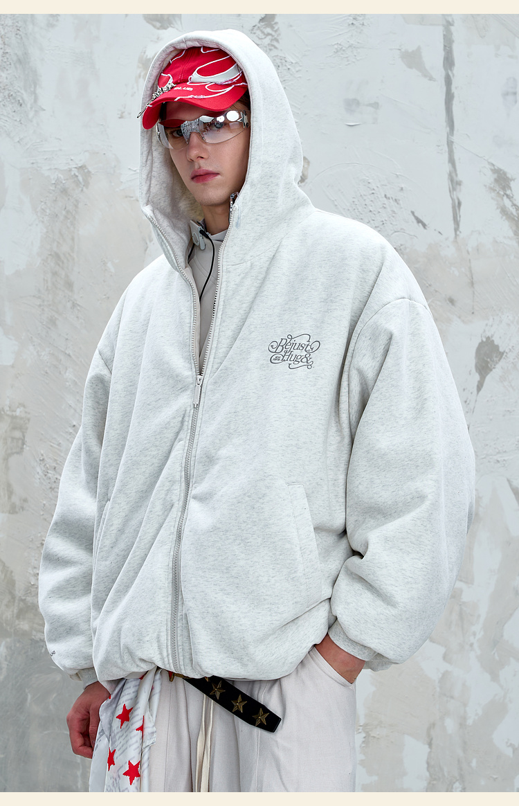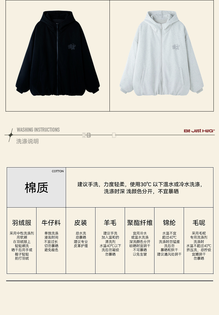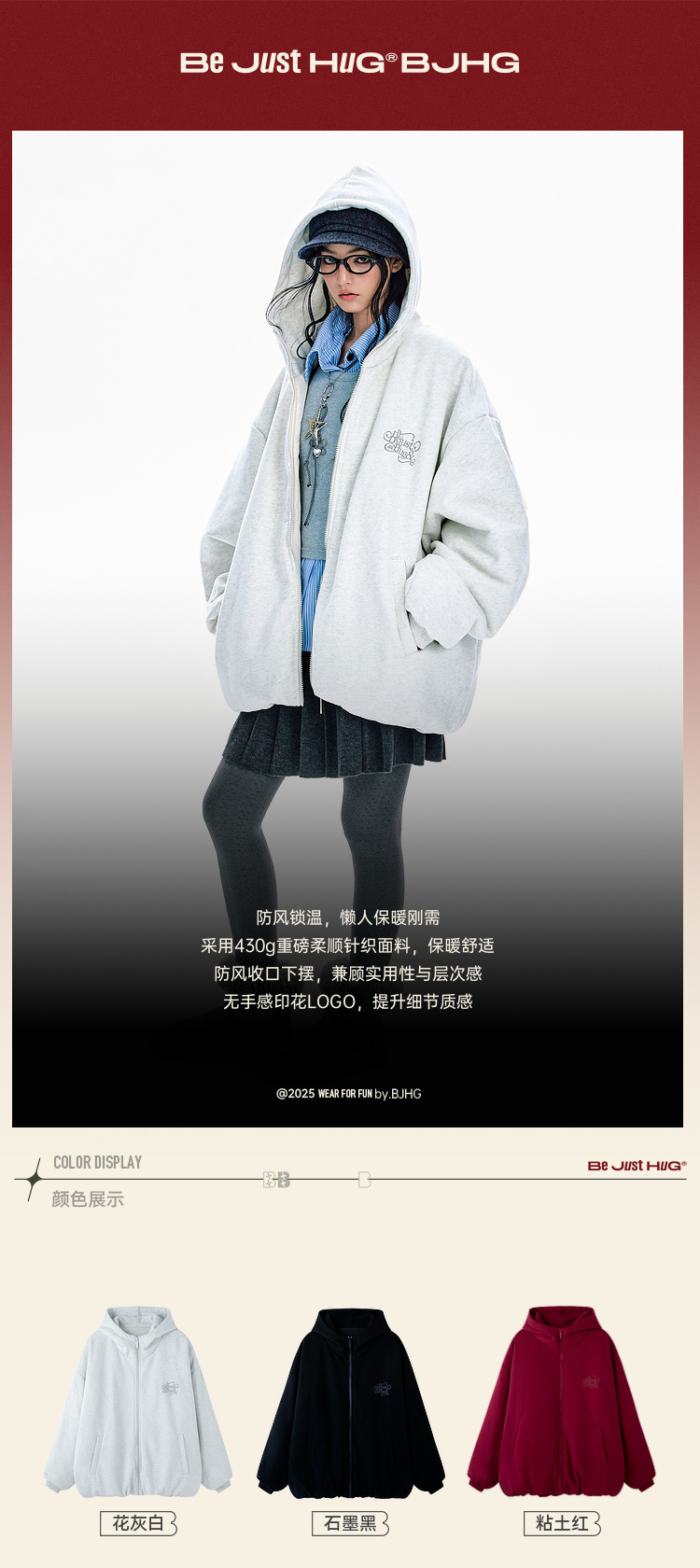 BJHG不计后果重磅休闲连帽卫衣男款秋2025新款印花暖皮开衫外套女