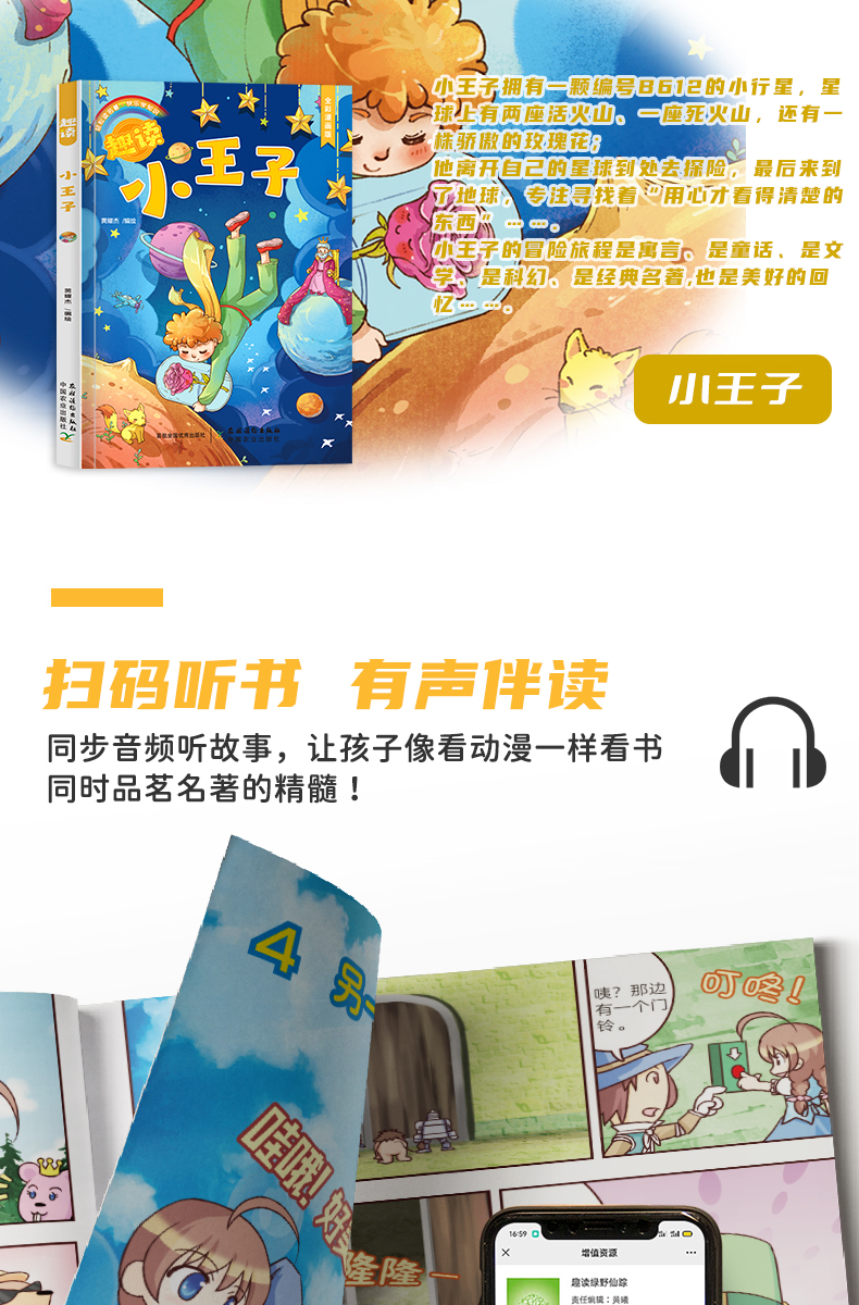 有声伴读 趣读漫画名著全5册 爱丽丝梦游仙境 小王子 绿野仙踪 鲁宾逊漂流记 格列佛游记