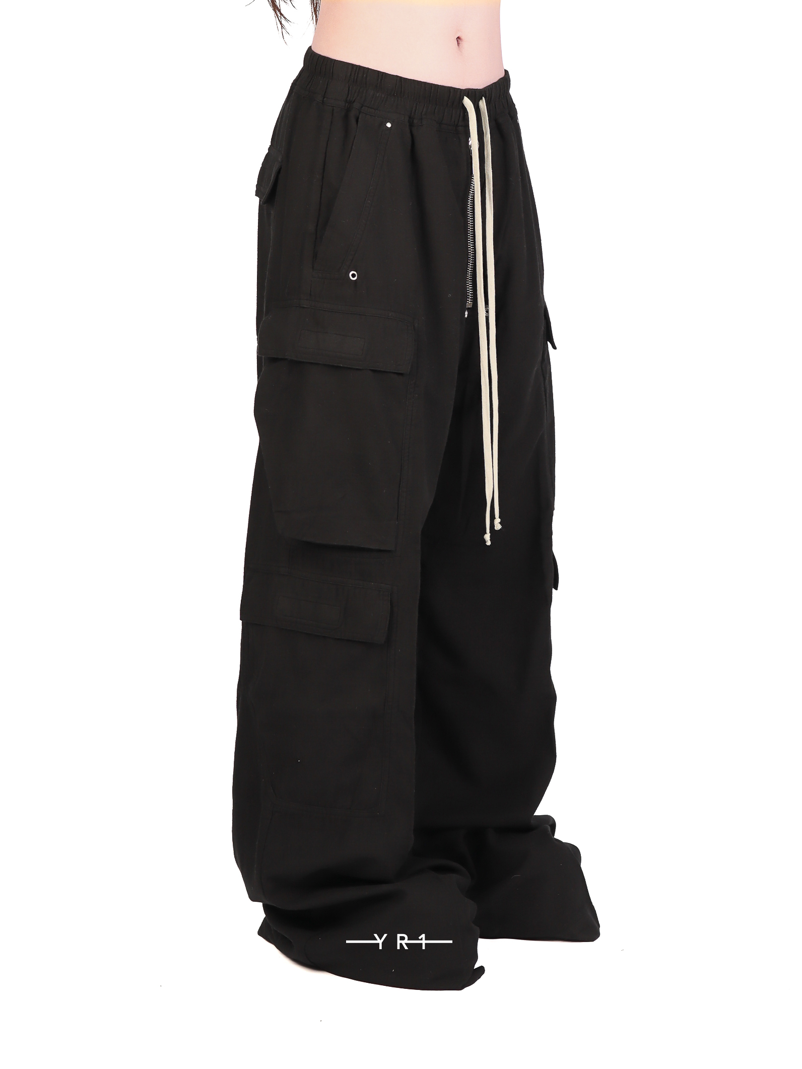 这款 DOUBLE CARGO JUMBO BELA 工装裤为全长款,低裆,阔腿设计。