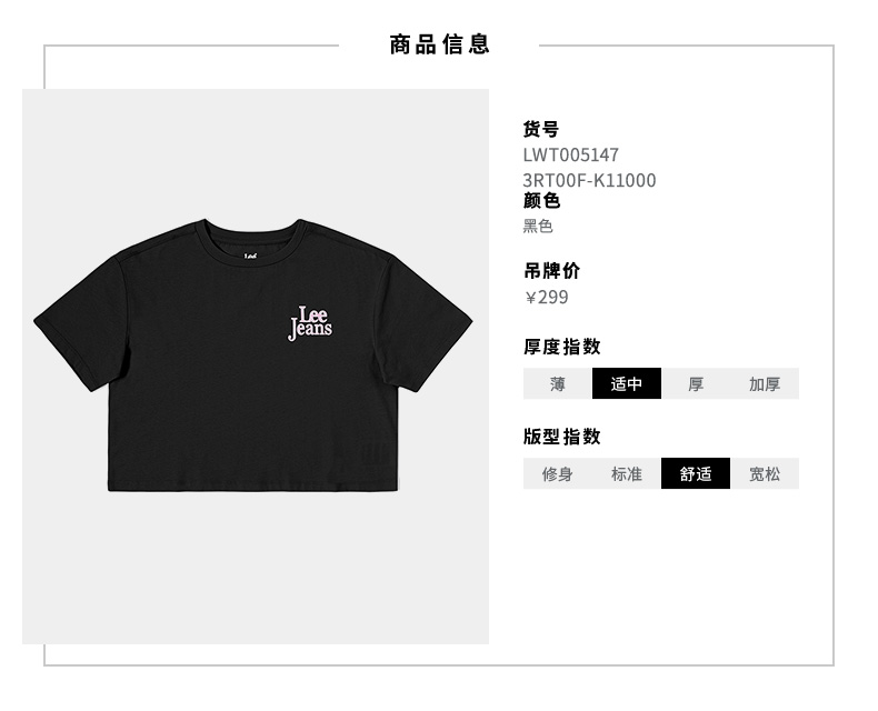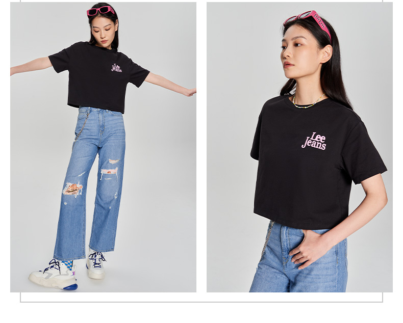LEE 新品舒适短身款植绒印花女短袖T恤LWT0051473RT