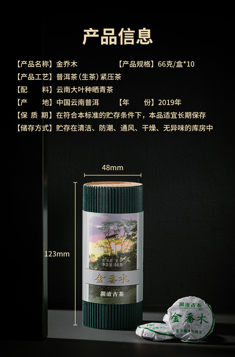 澜沧古茶金乔木普洱茶生茶小茶饼单筒66g*10瓶
