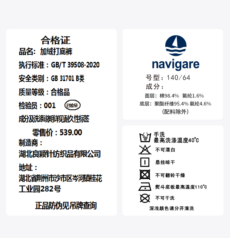 【纳维凯尔】【加绒】【120-165】意大利小帆船冬季女童加绒打底裤子