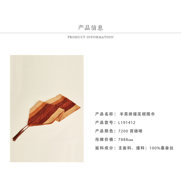 TANGY Collection天意精美莨绸拼接压褶围巾