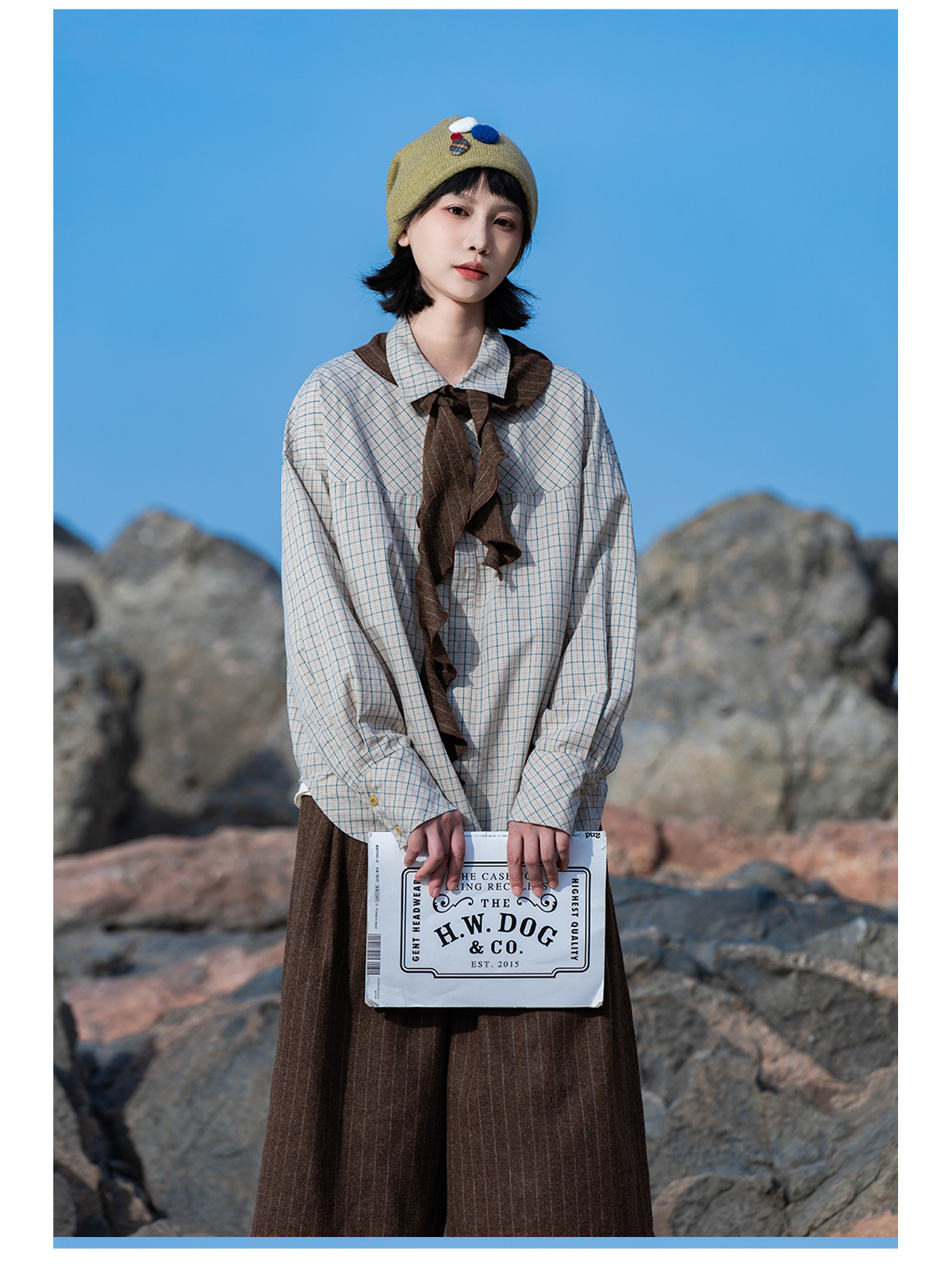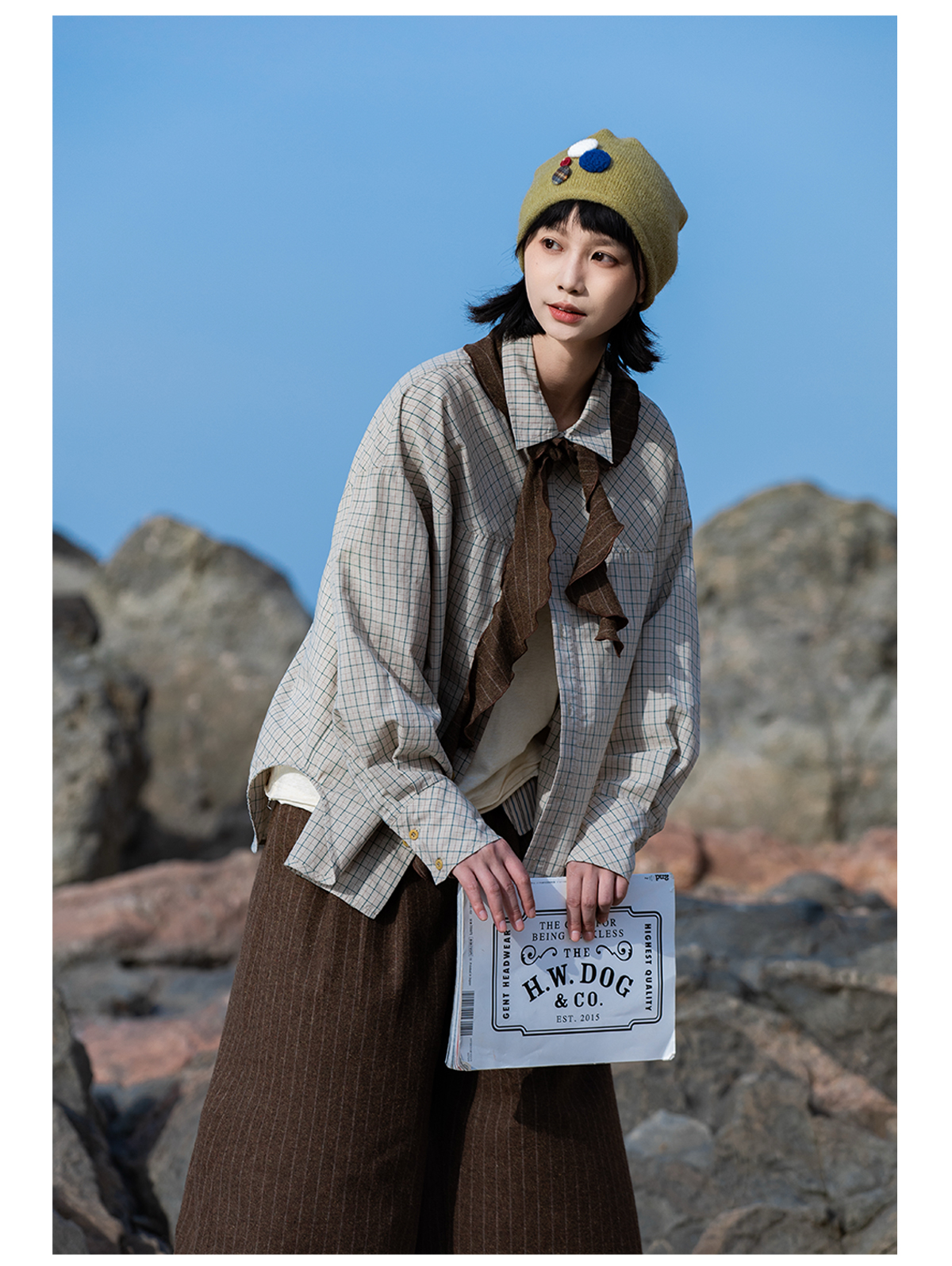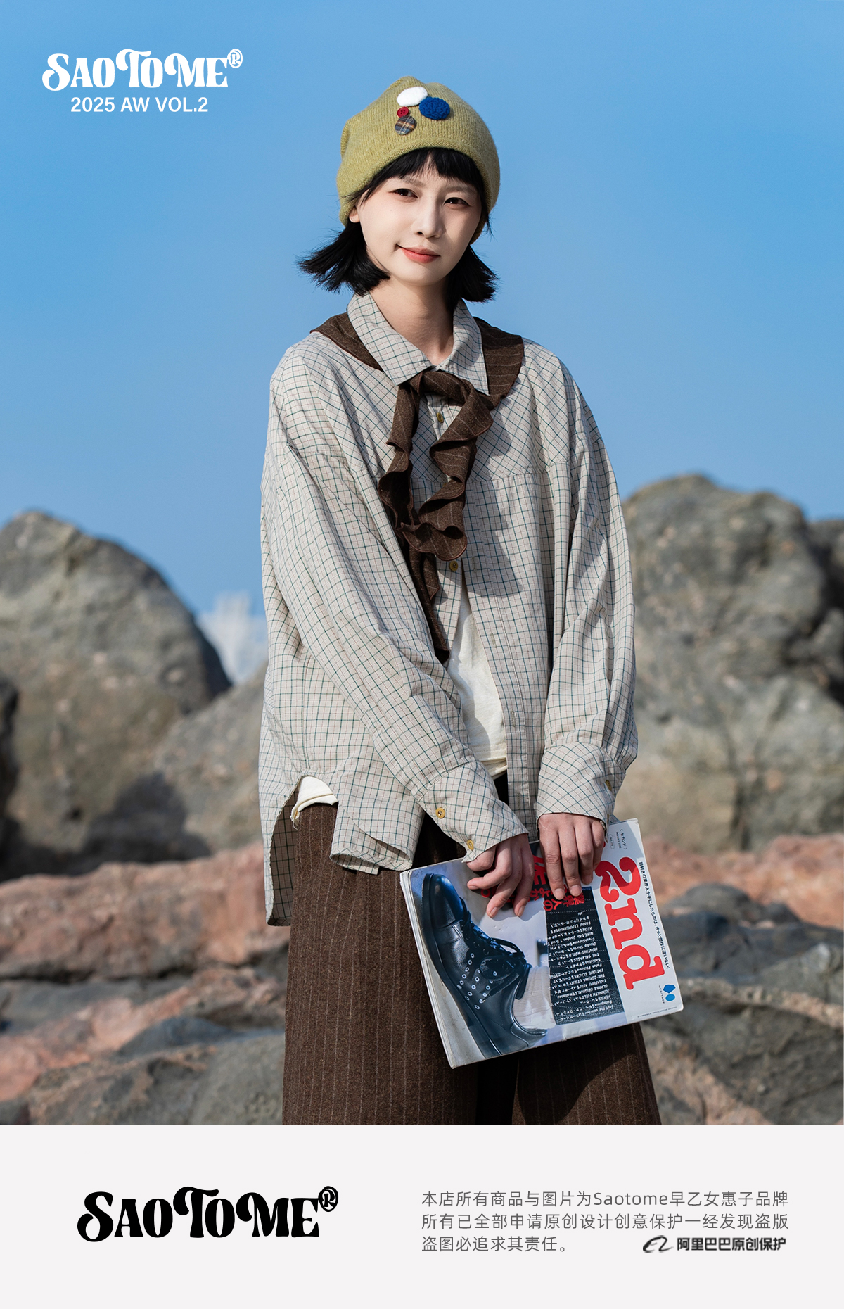 早乙女惠子saotome/STMCS13148/细格纹长袖衬衫