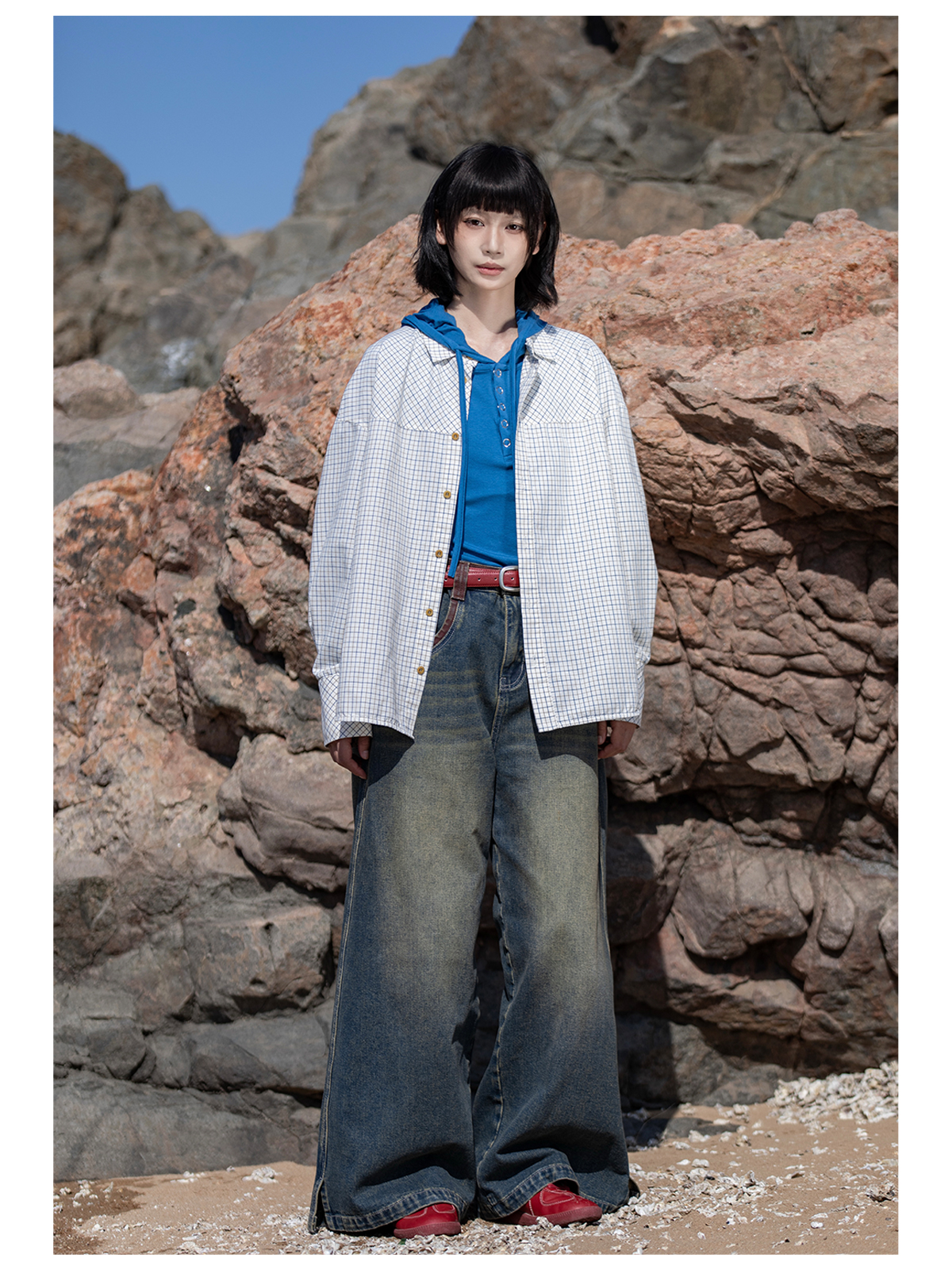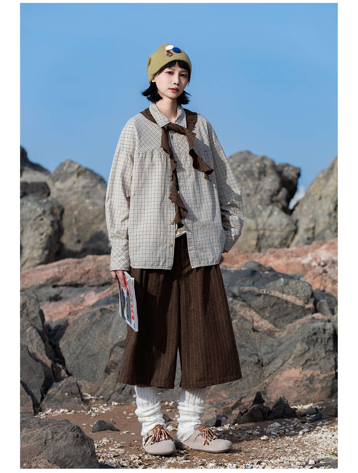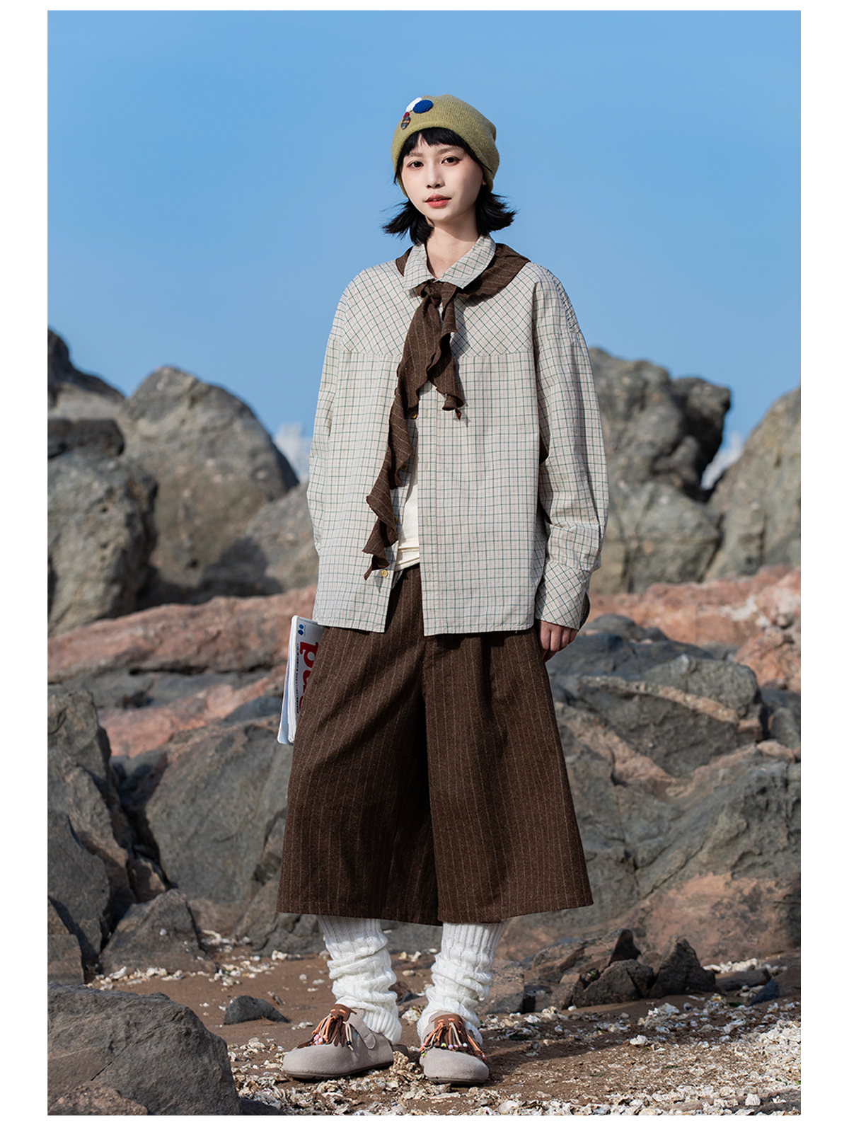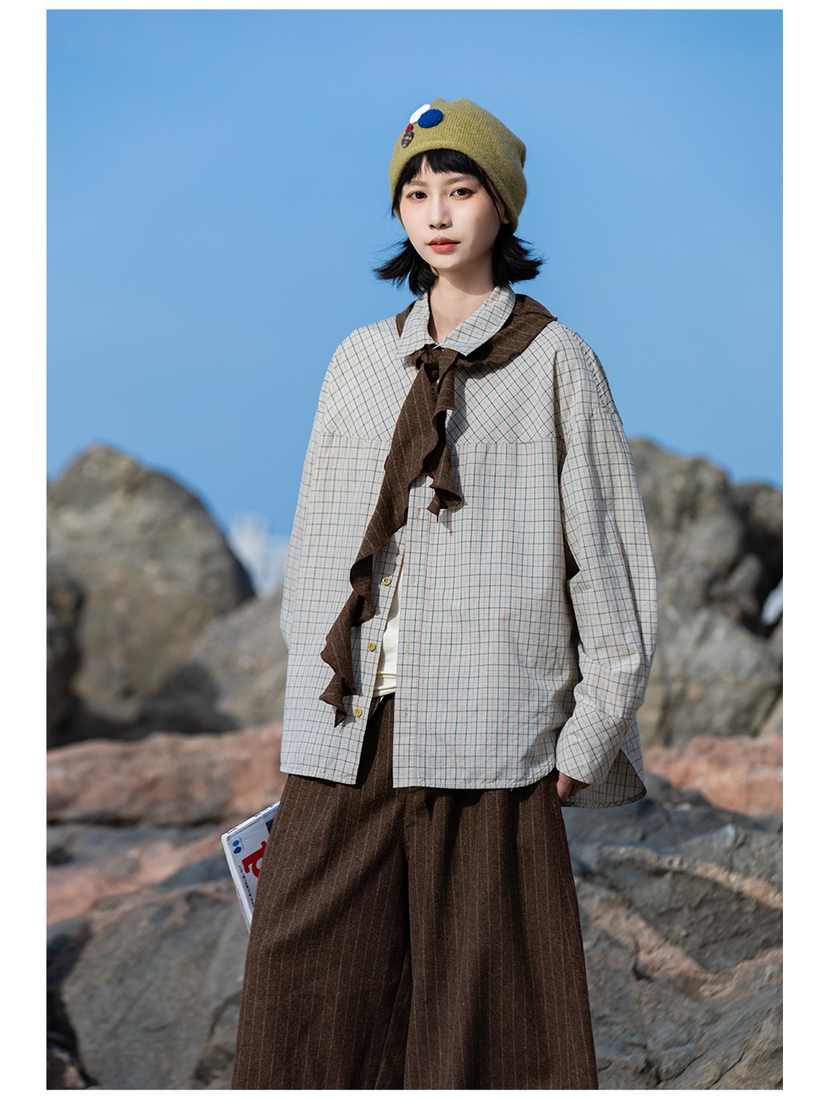 早乙女惠子saotome/STMCS13148/细格纹长袖衬衫