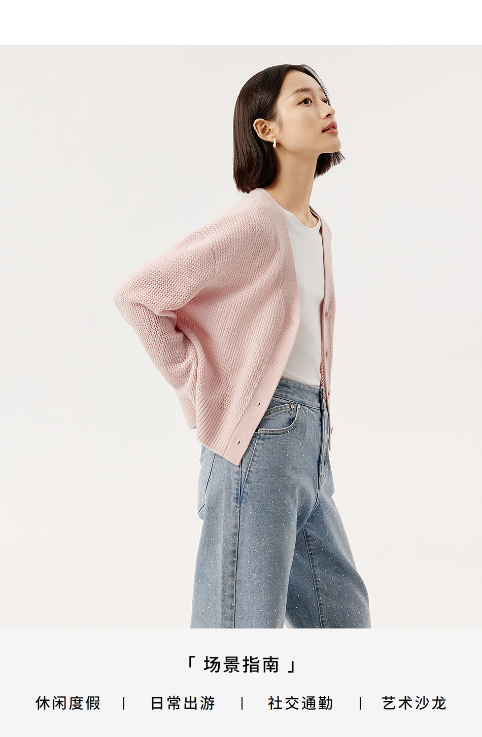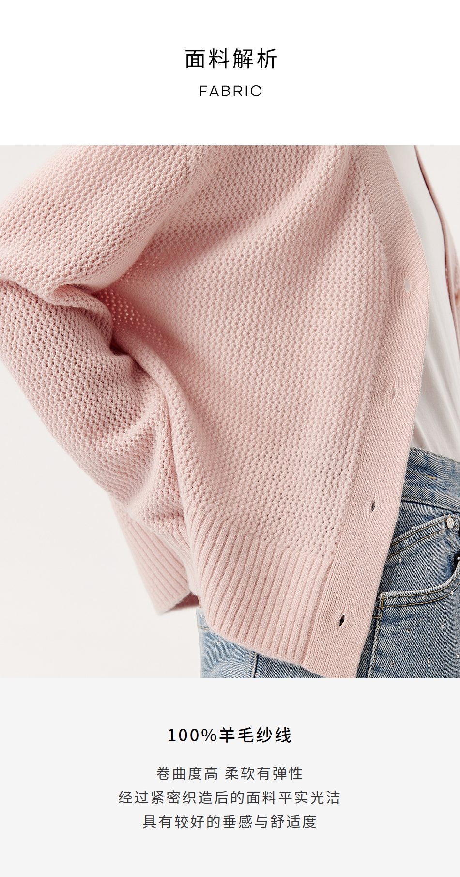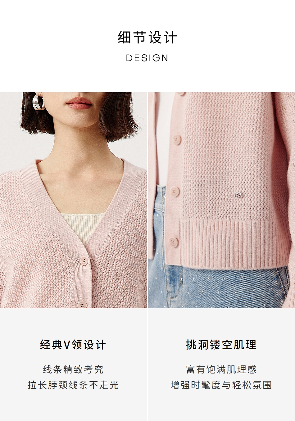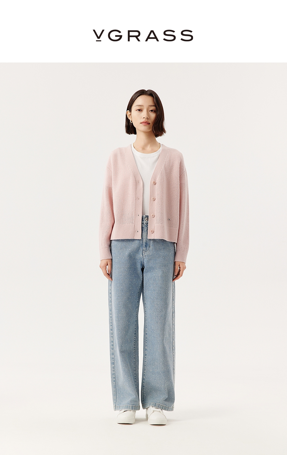 VGRASS维格娜丝25年春季新款绵羊毛V领针织开衫