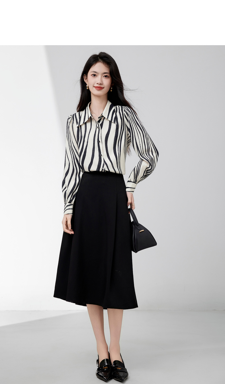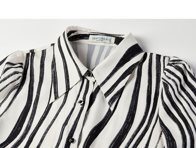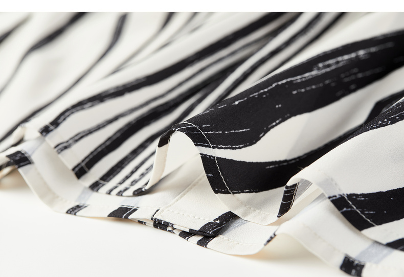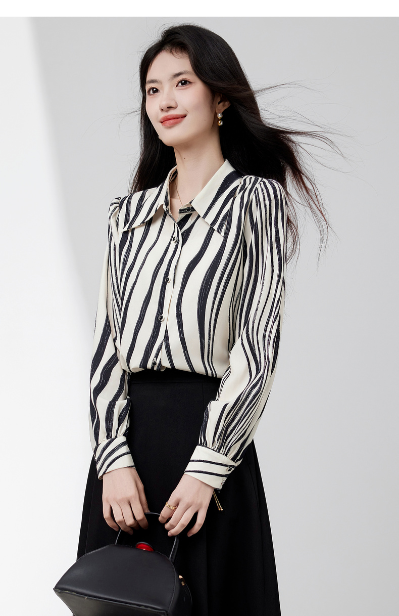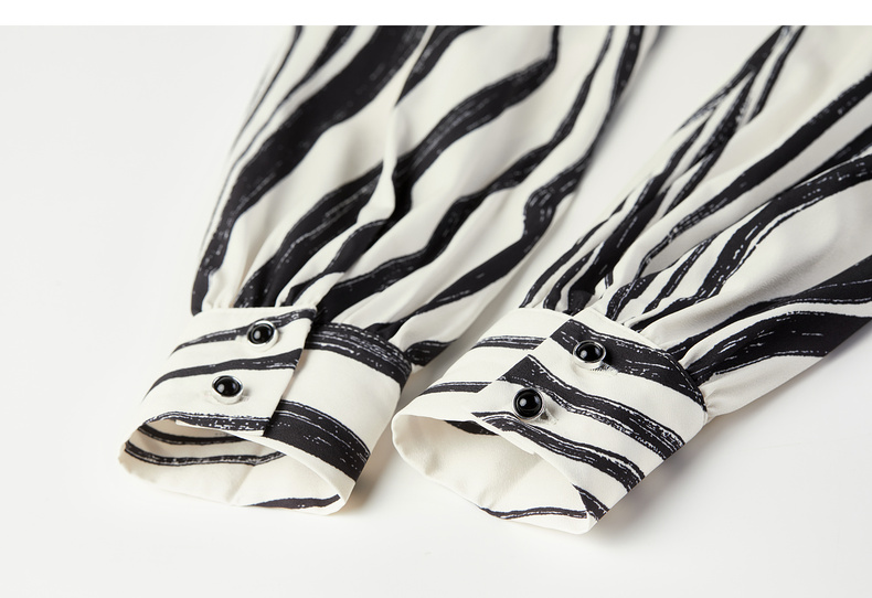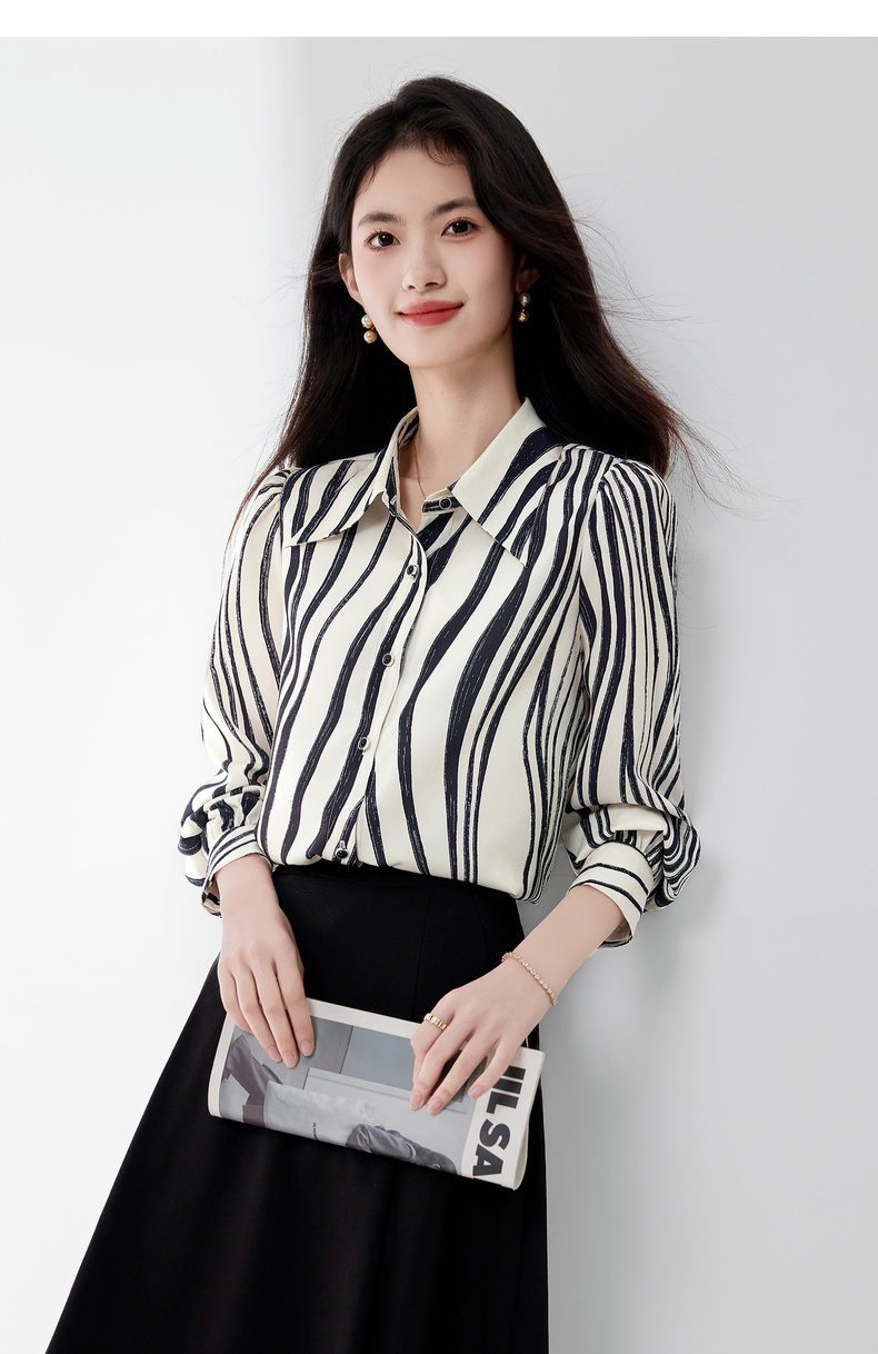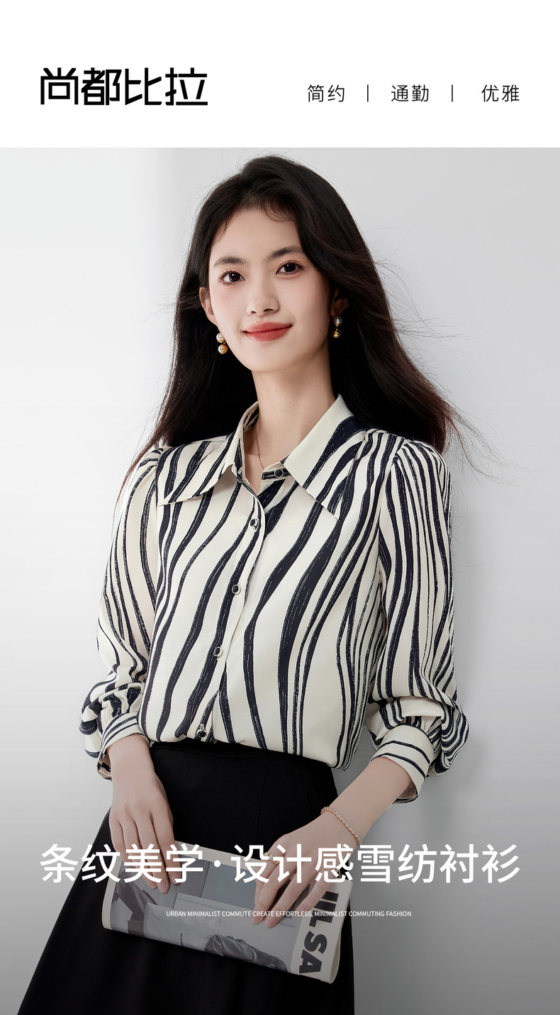 【内购】【流动条纹】都市通勤设计感抽象印花翻领长袖雪纺衬衫-153CH2603