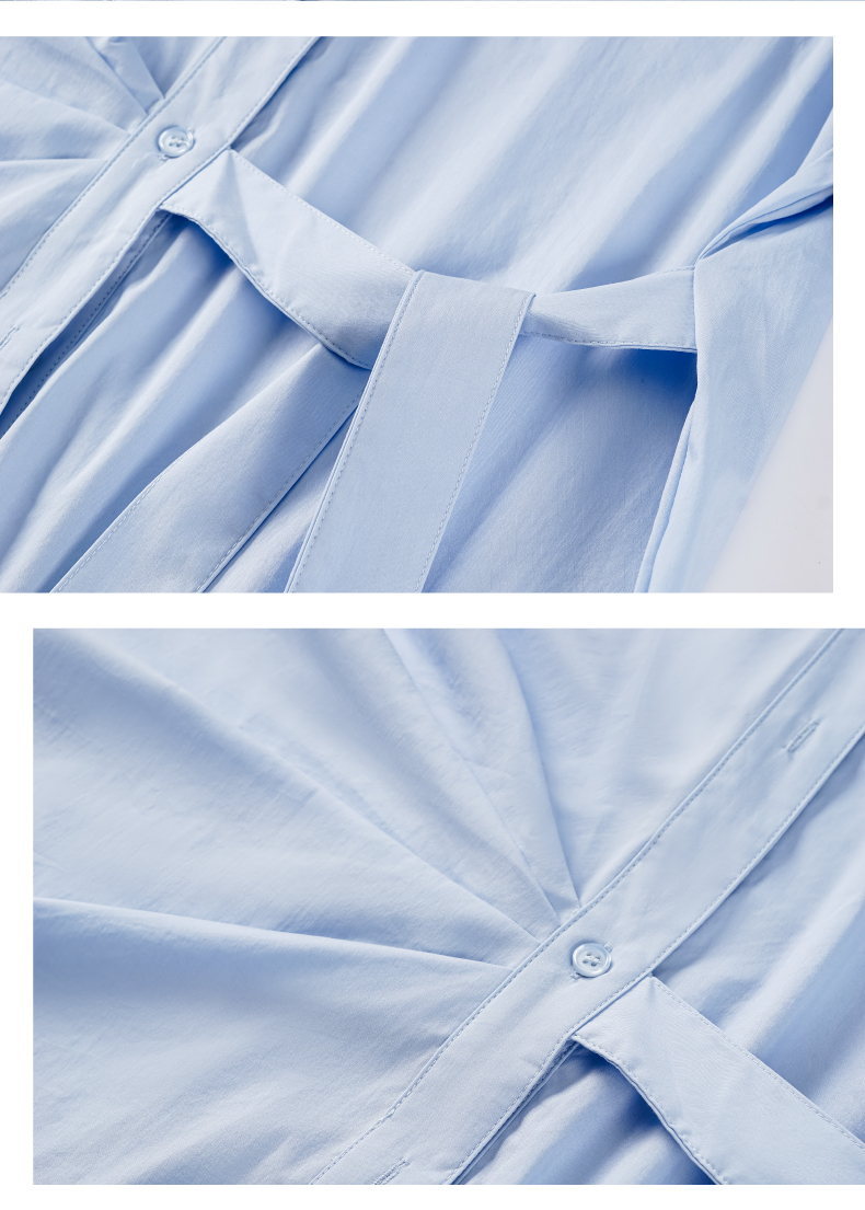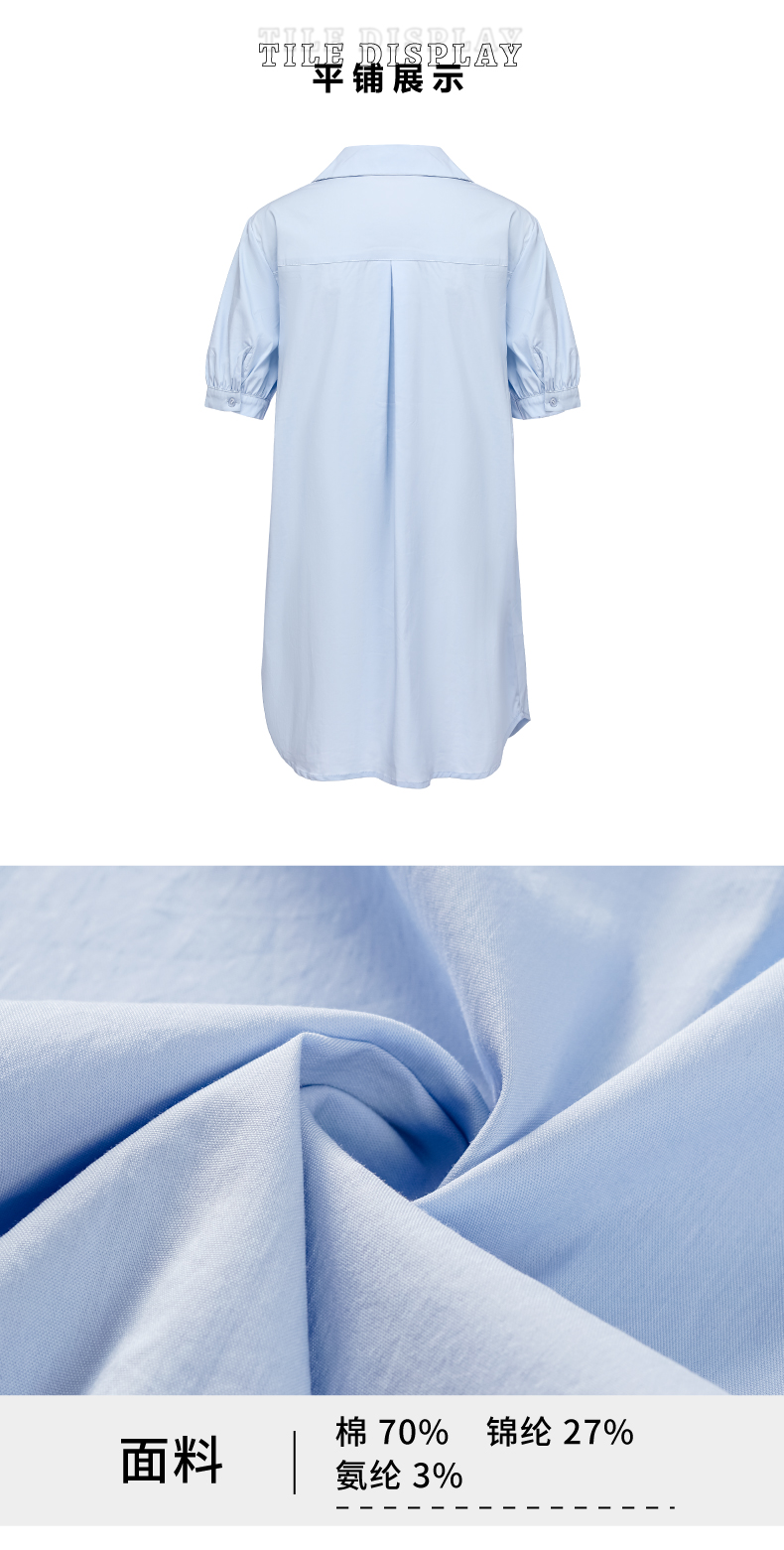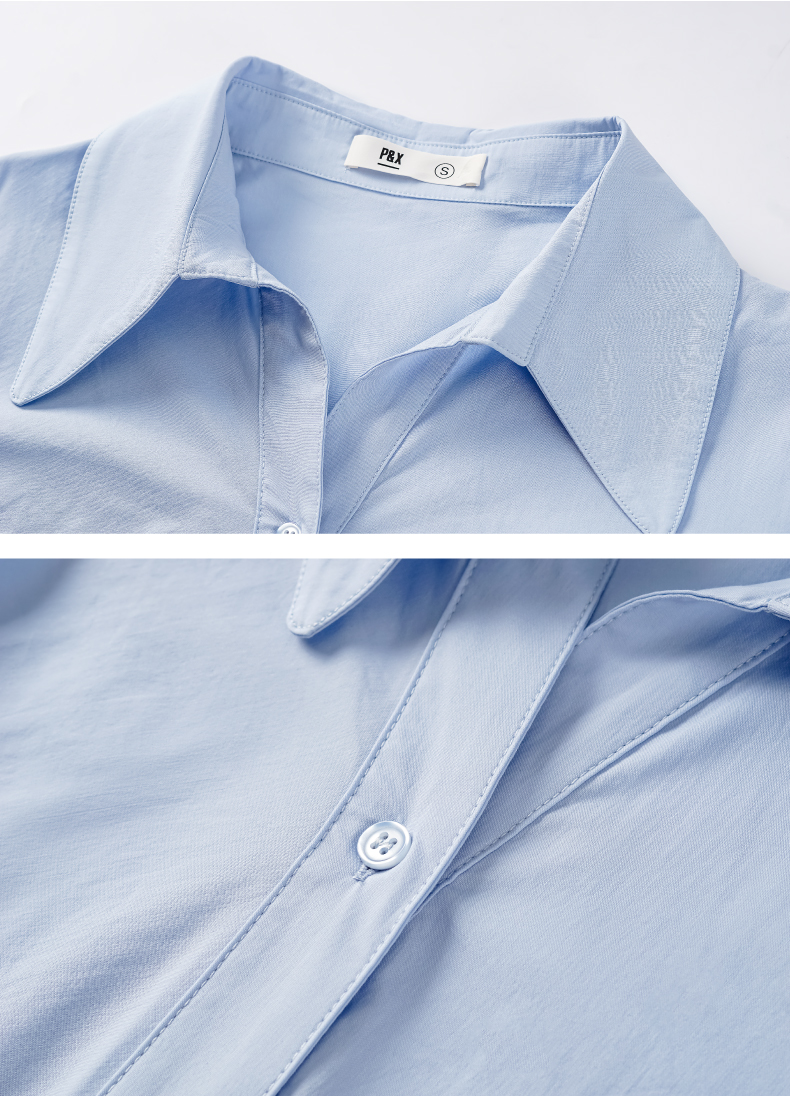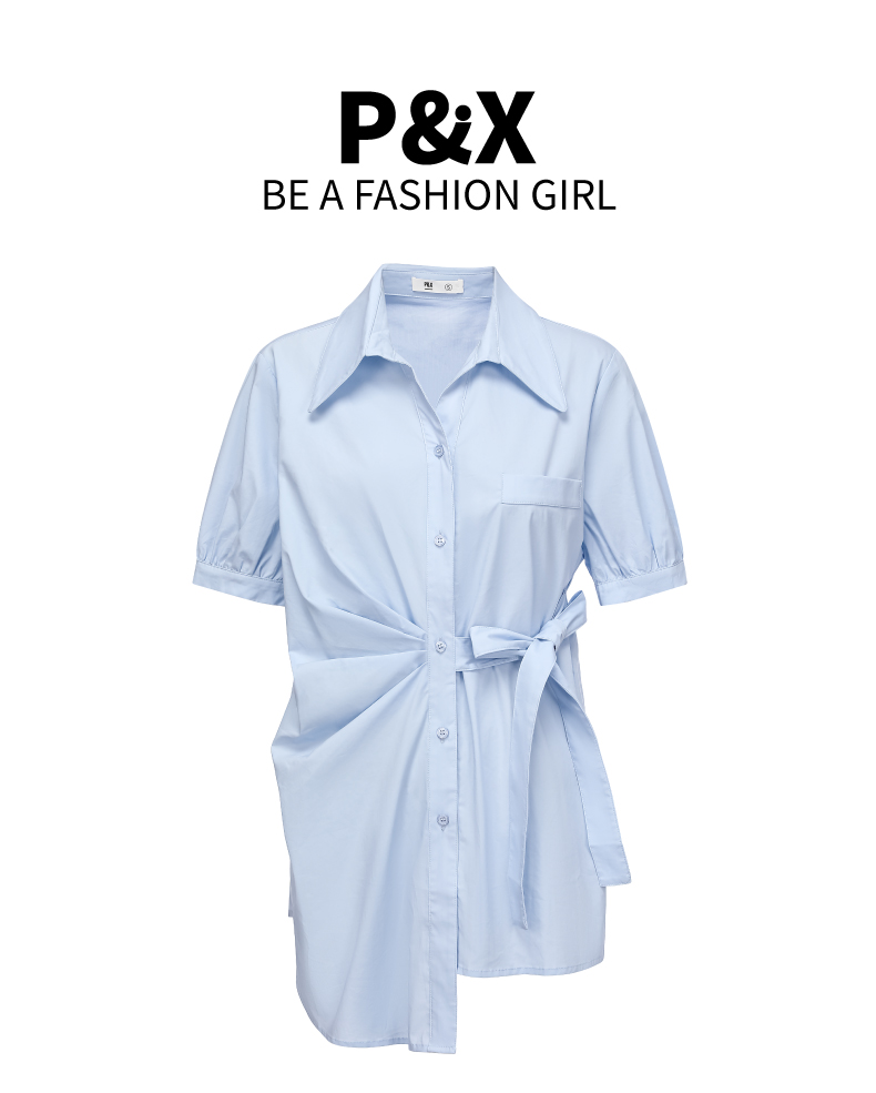 P&X设计师女装 2022夏季新款 中长款衬衫 通勤 蓝色 822205167B