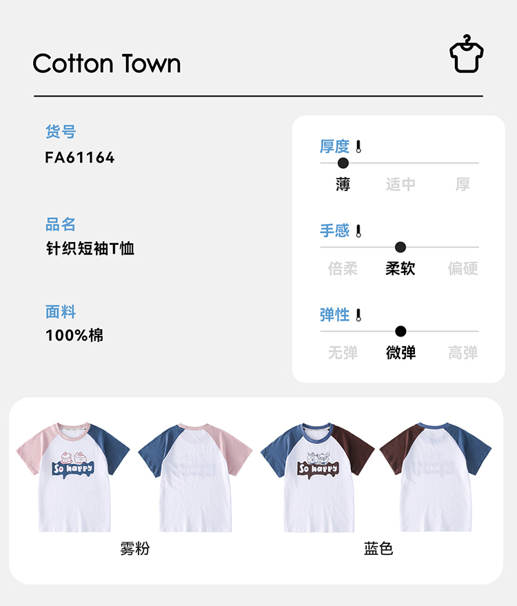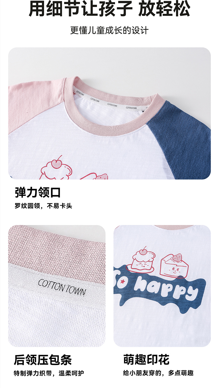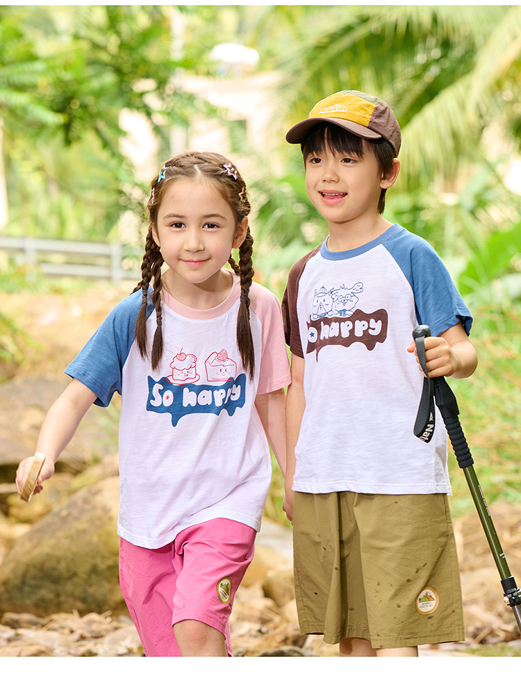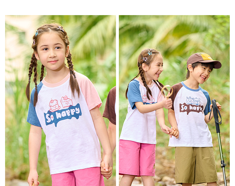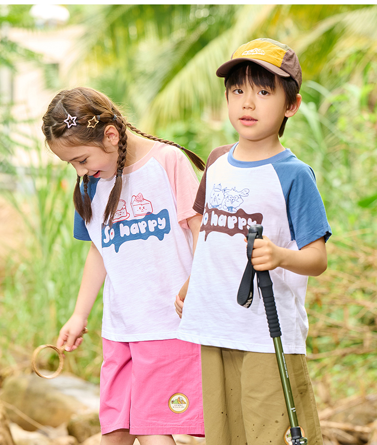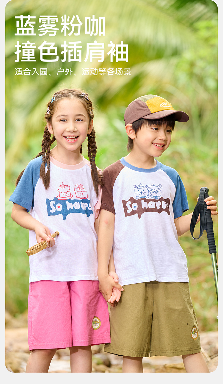 【10A抗菌】棉花堂夏款蓝雾粉咖竹节棉童装短袖T恤 ---FA61164