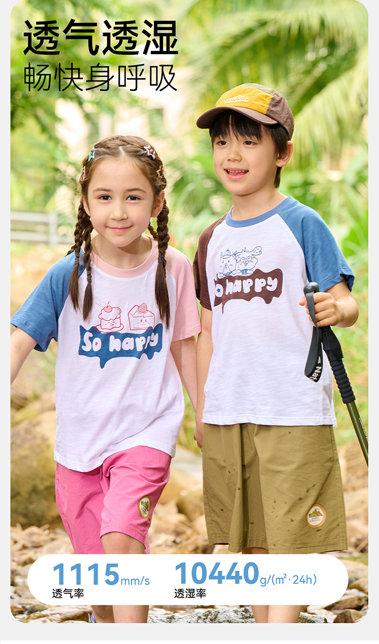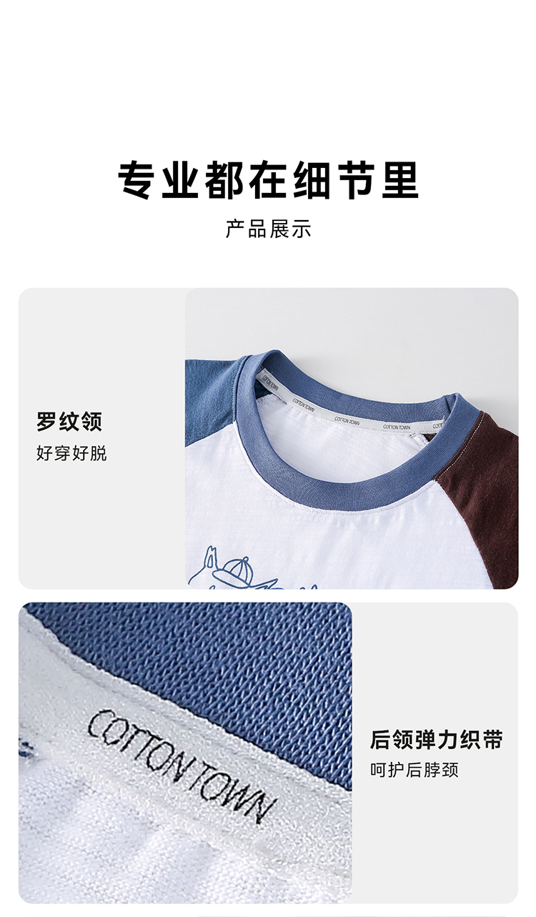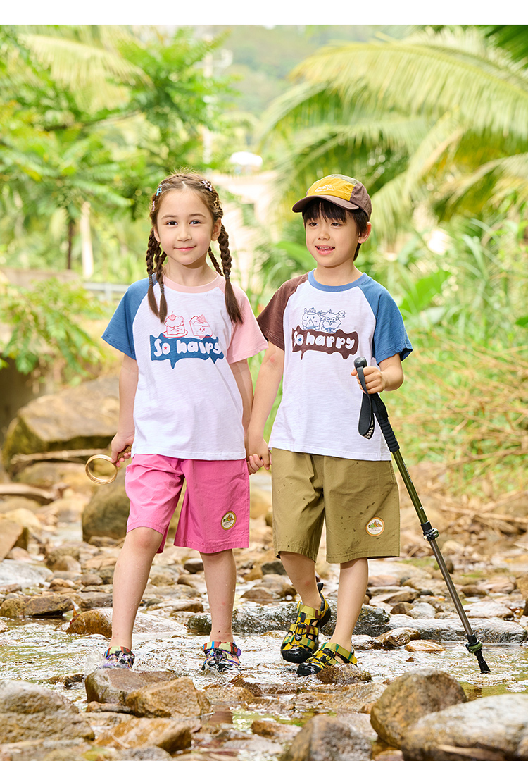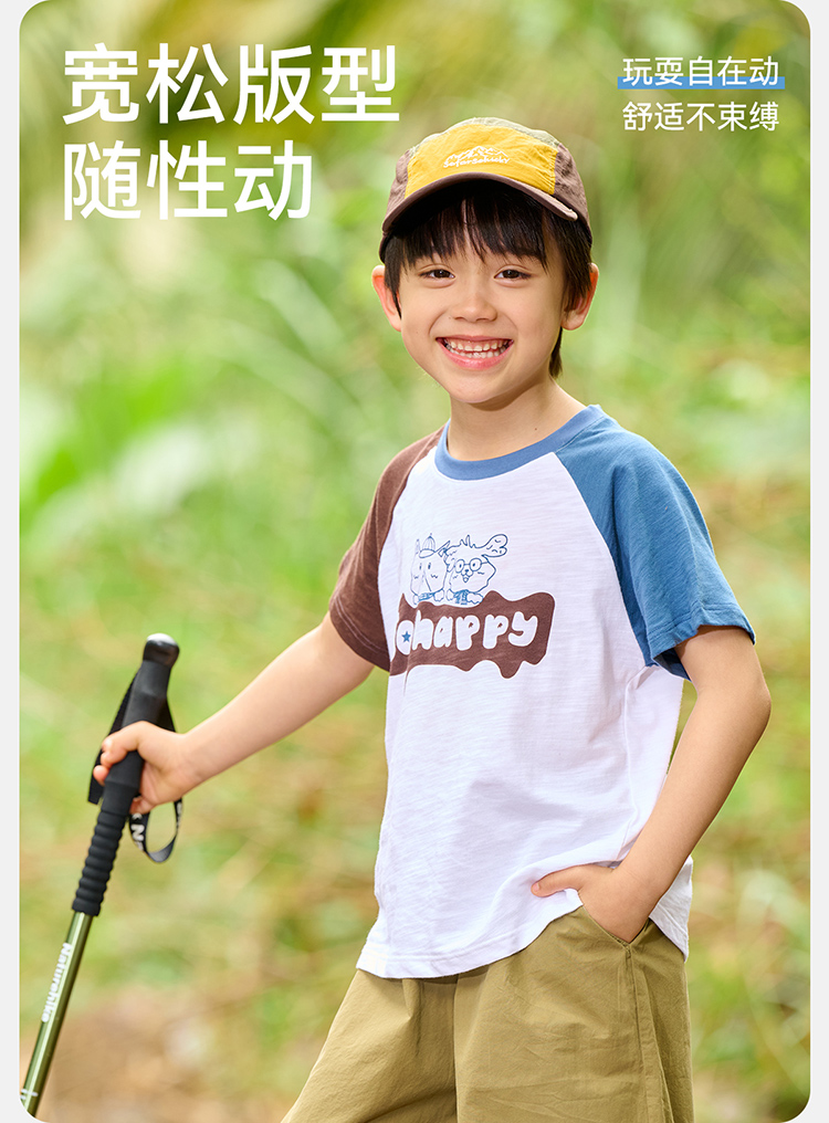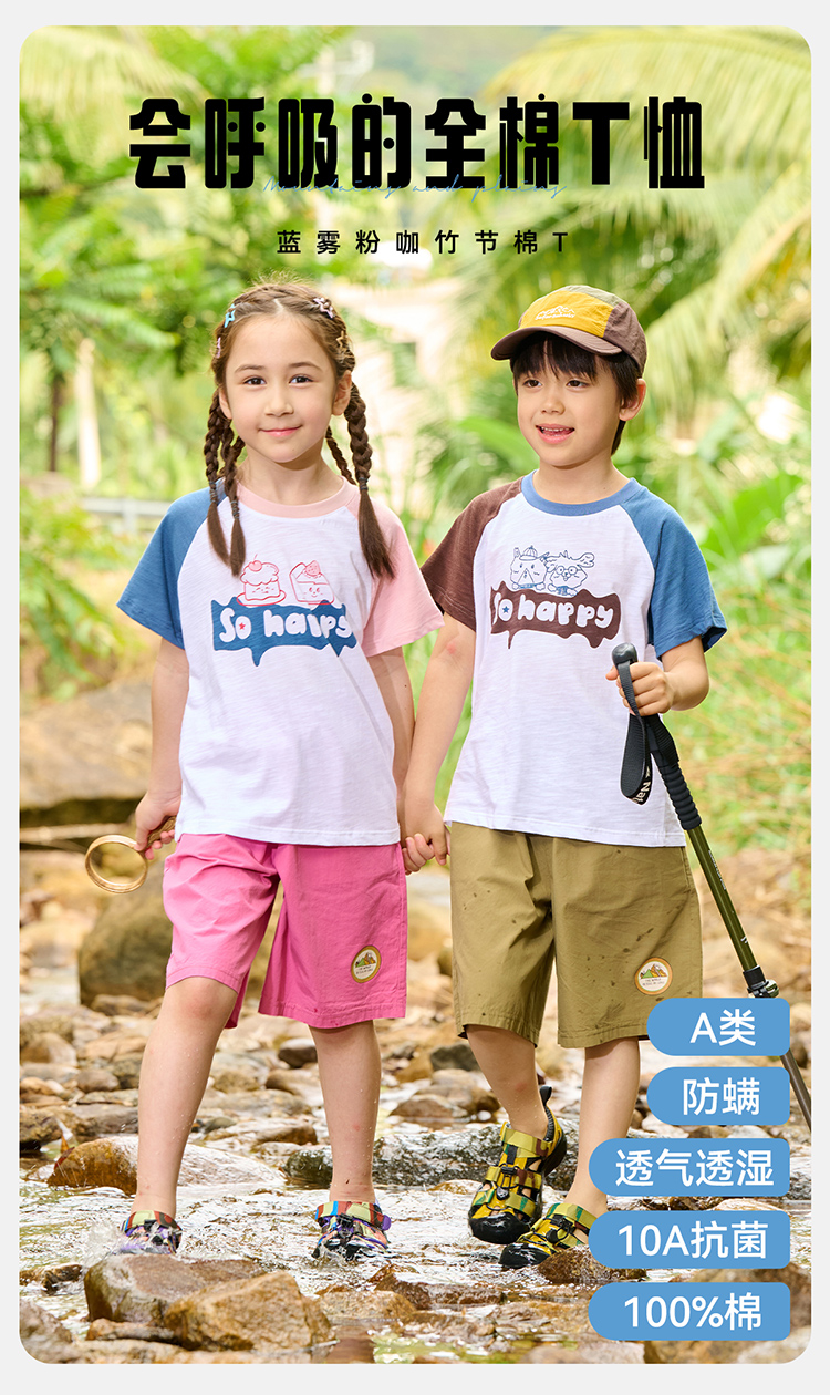 【10A抗菌】棉花堂夏款蓝雾粉咖竹节棉童装短袖T恤 ---FA61164