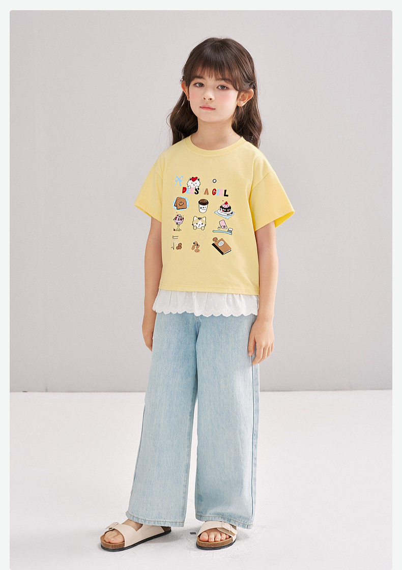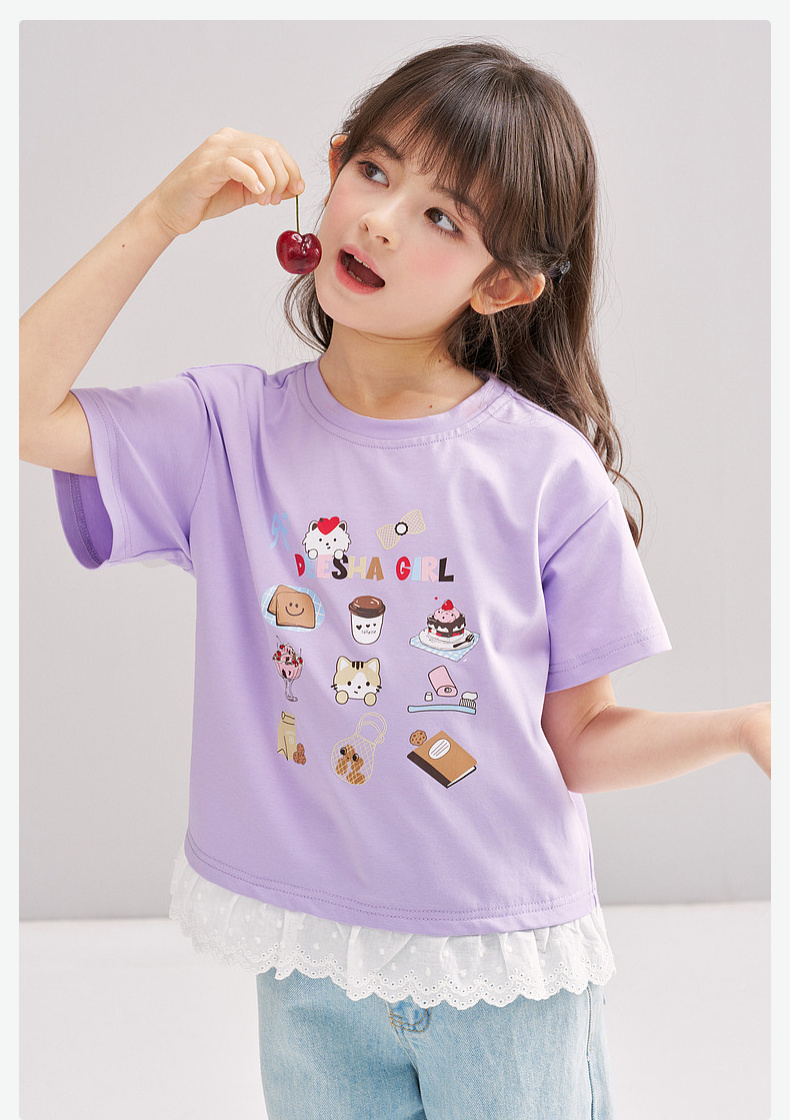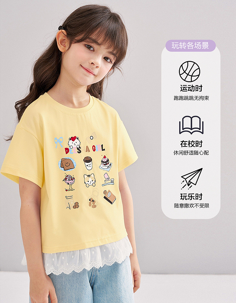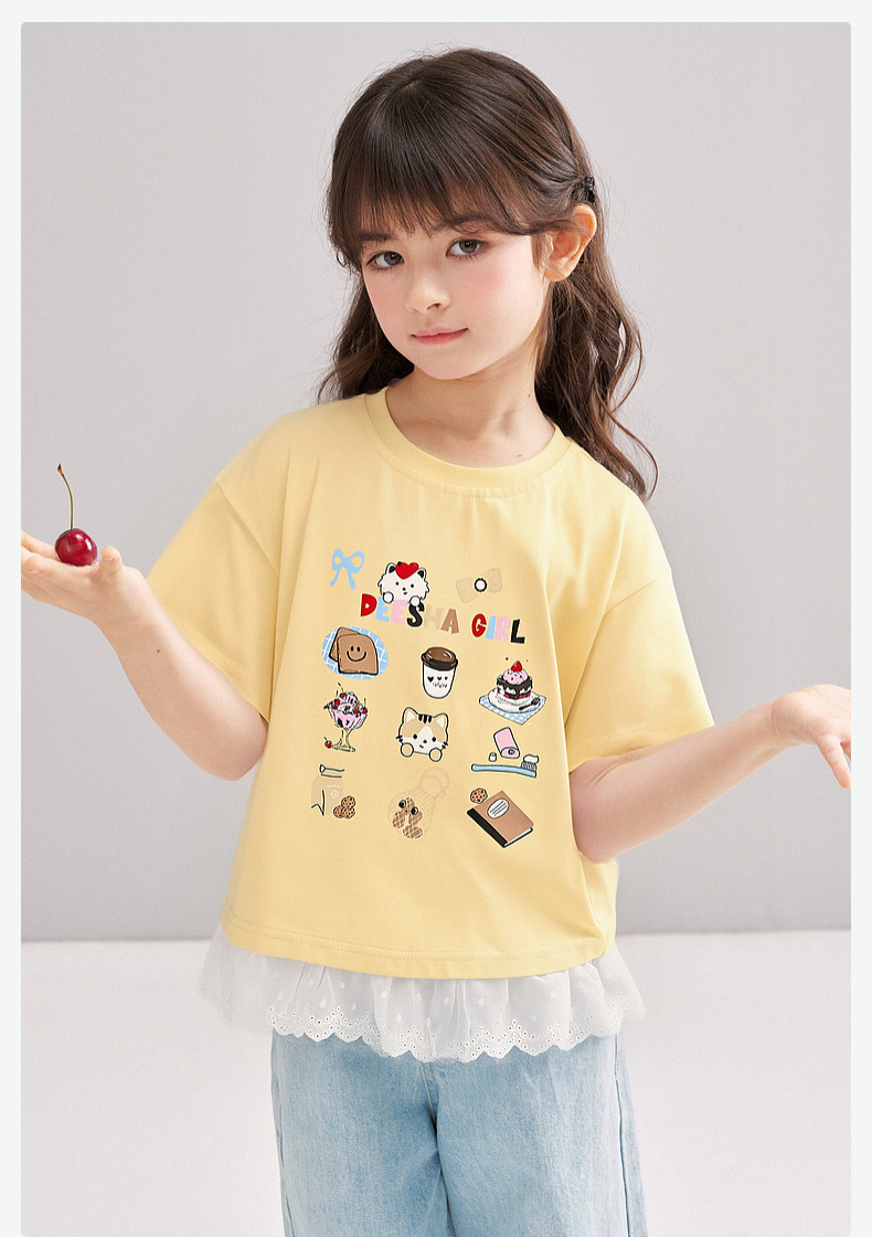 笛莎/Deesha 【松饼熊】2026年夏季新款女童索罗那原纱防晒短袖T恤