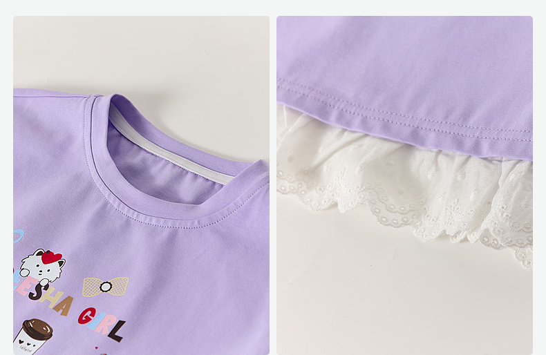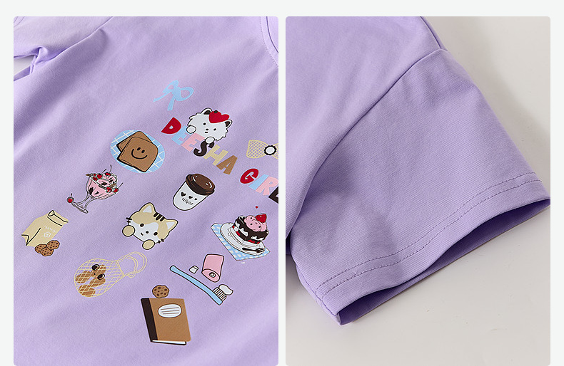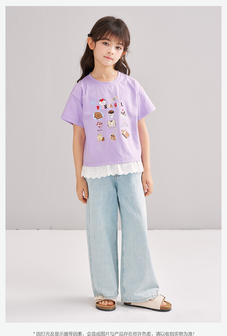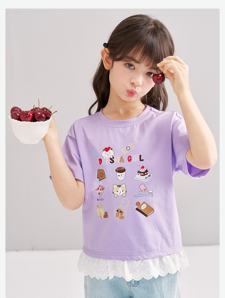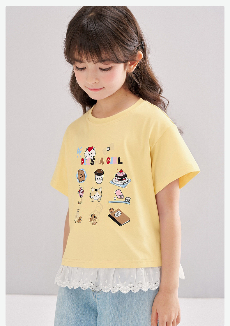 笛莎/Deesha 【松饼熊】2026年夏季新款女童索罗那原纱防晒短袖T恤