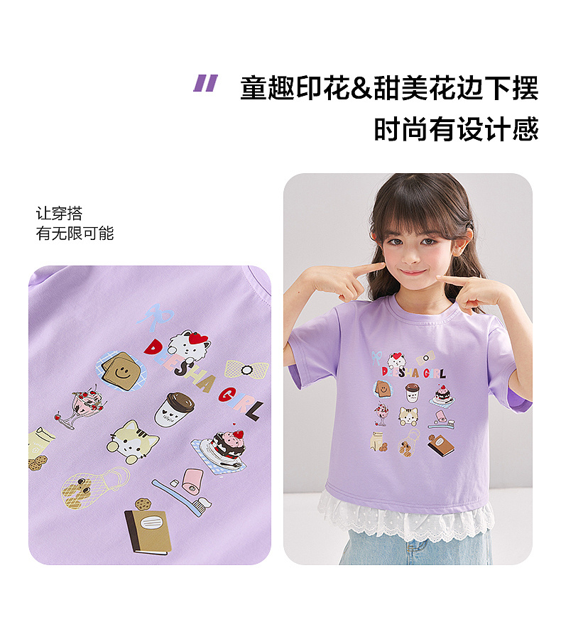 笛莎Deesha 2026年夏季新款松饼熊女童短袖T恤 预售预计4月10日发货