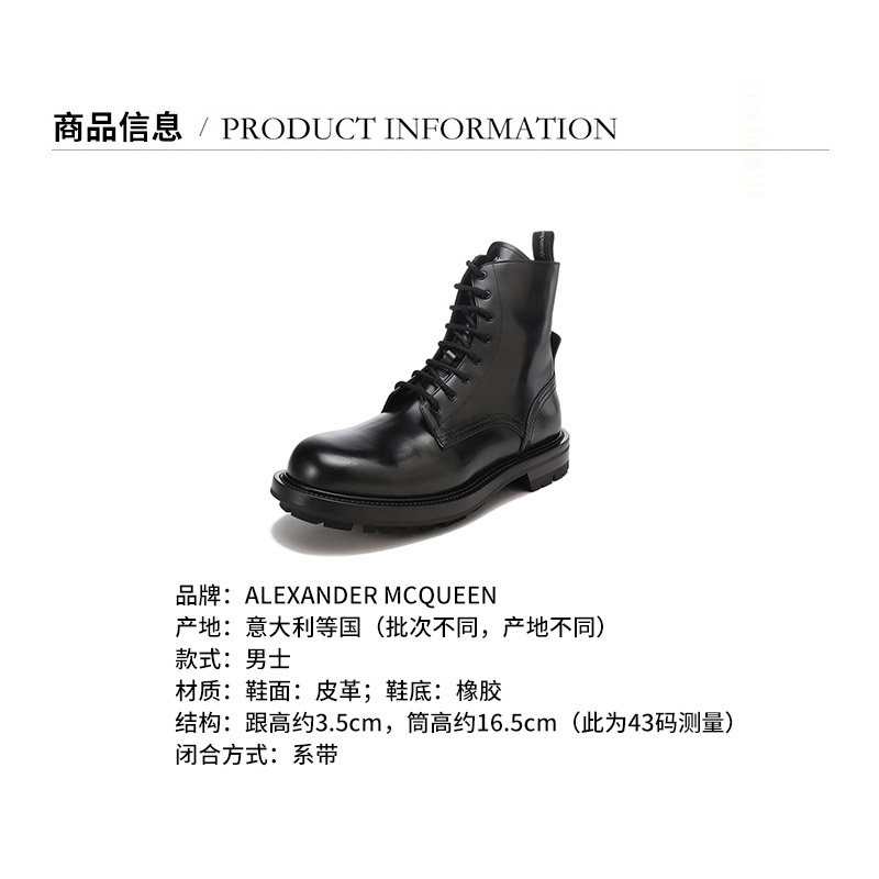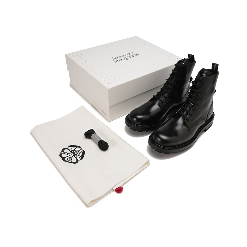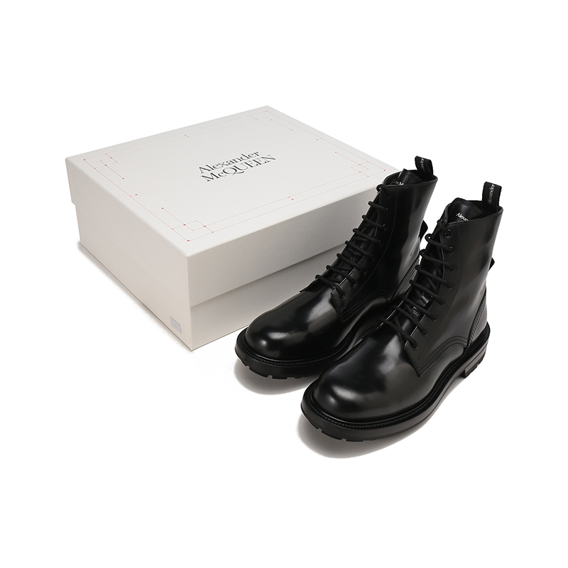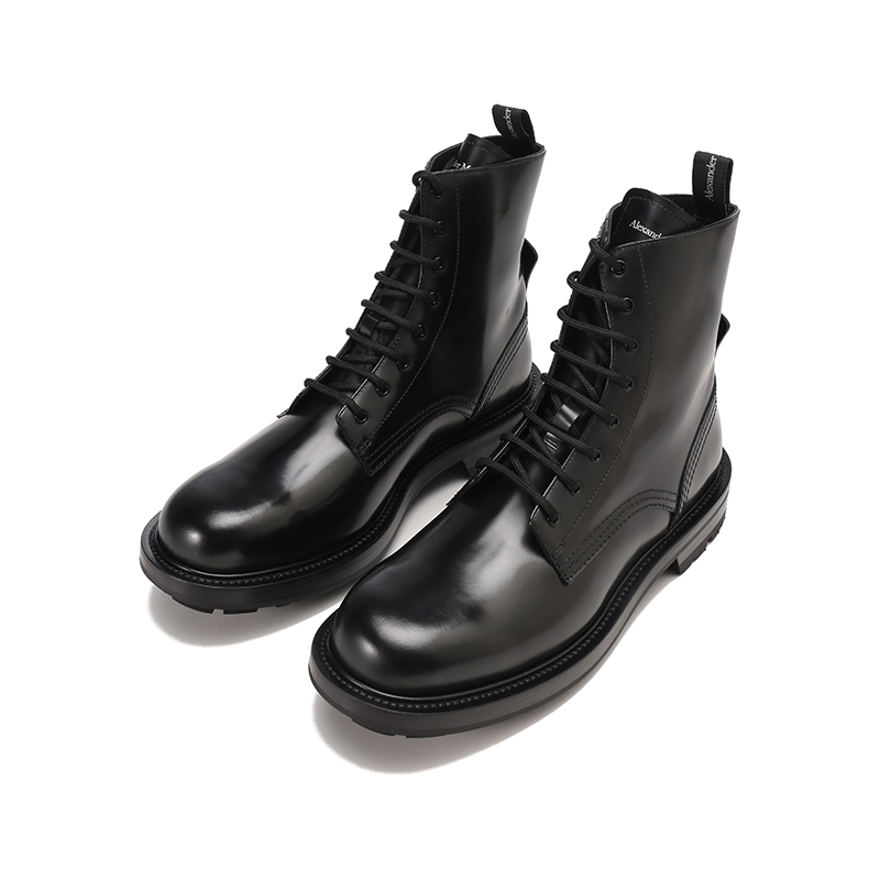 Alexander McQueen/亚历山大麦昆【22春夏新款】男士皮革系带工装靴子短靴 683569 WHZ80