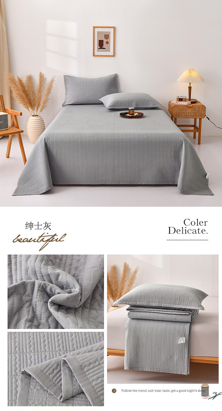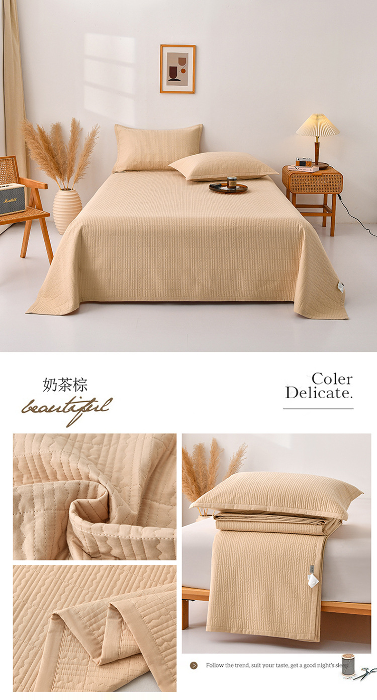 【全棉夹棉四季盖毯】水洗棉床盖纯色床单全棉夹棉床盖四季盖毯床盖可机洗