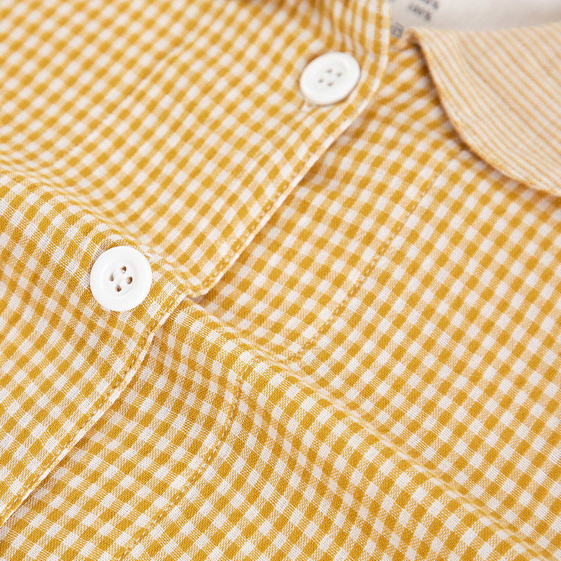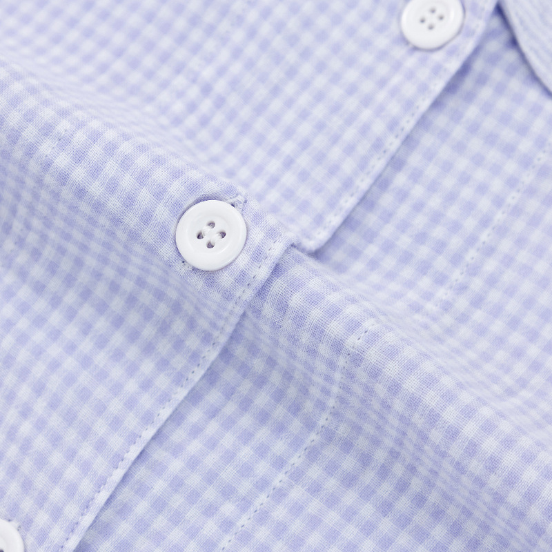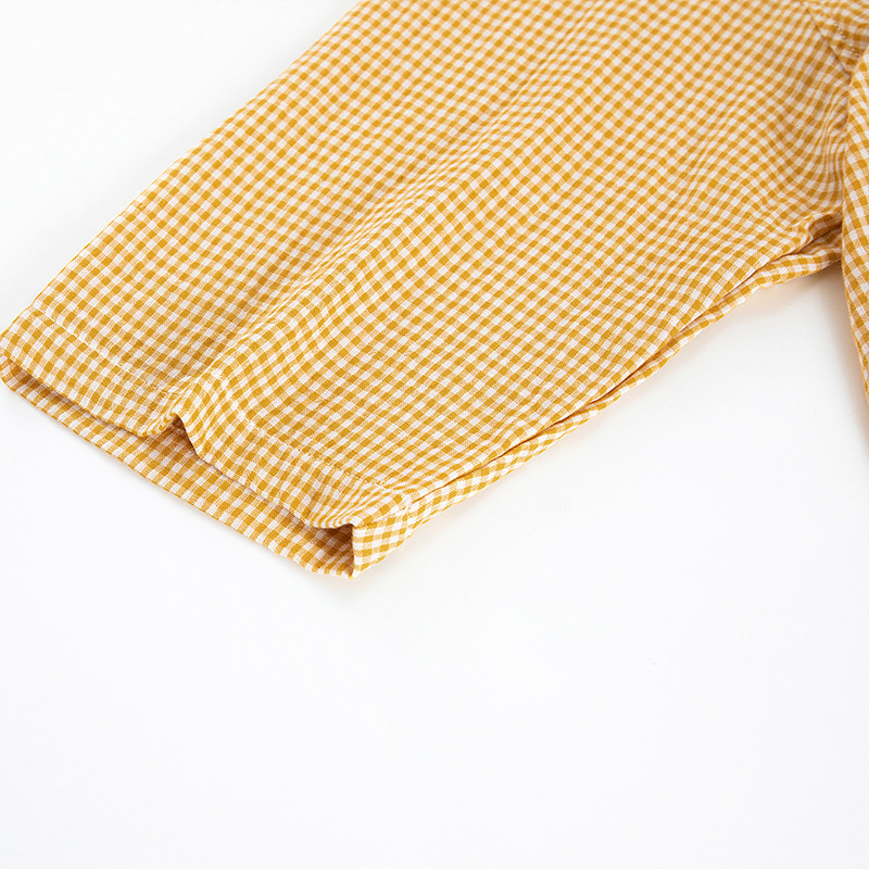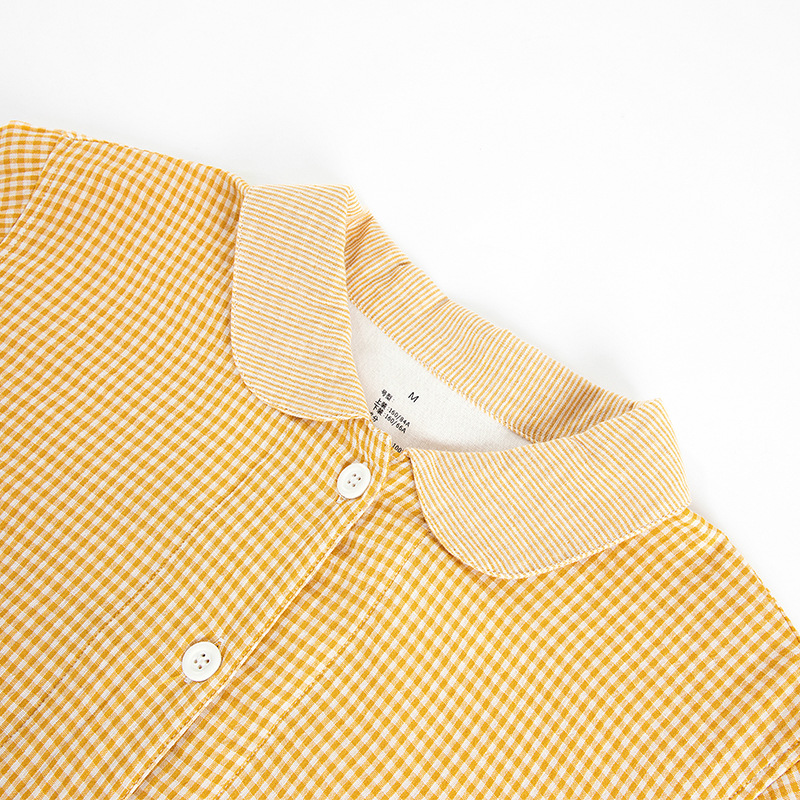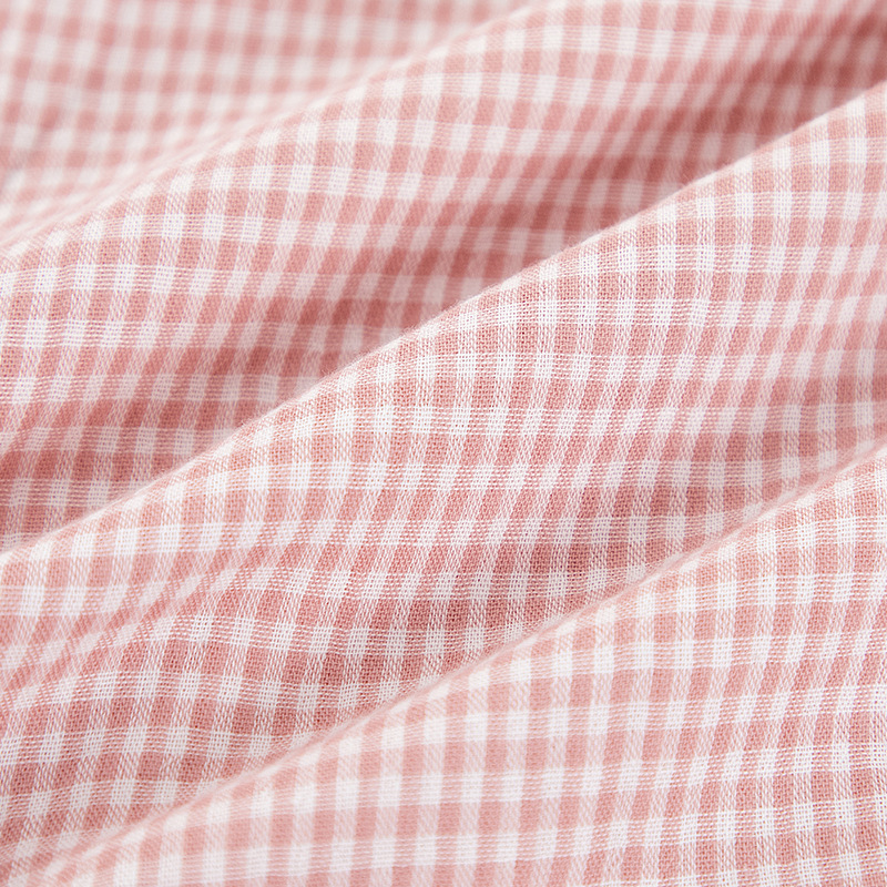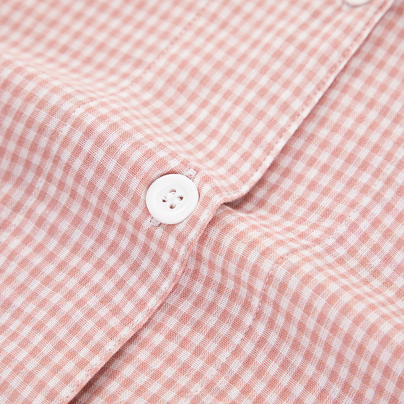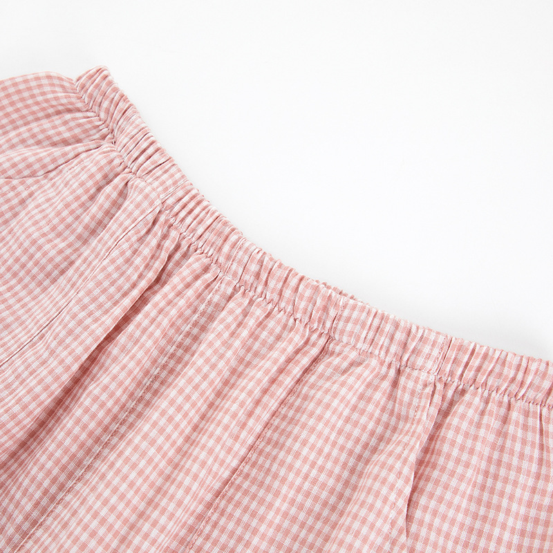 【双层纱七分袖细格纹睡衣】全棉双层纱家居服七分袖细格纹睡衣女士家居服套装