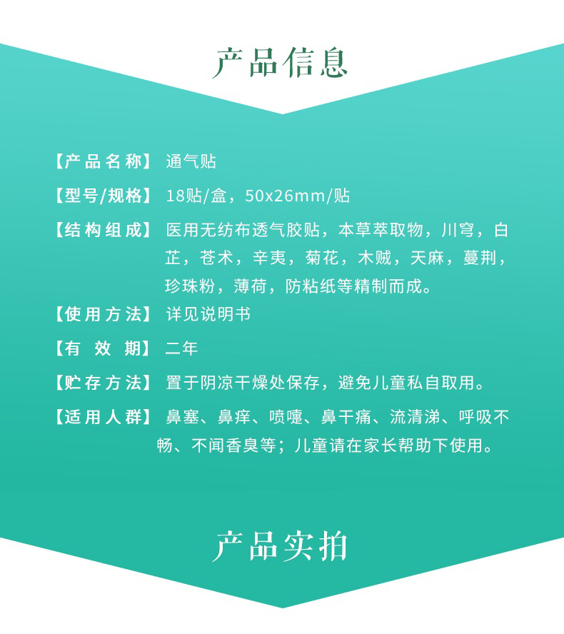 舒缓鼻塞鼻痒呼吸通畅 本草萃取川穹白芷苍术辛夷等 通气贴 18贴/盒