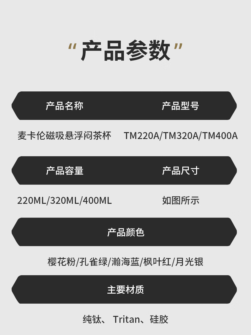 麦卡伦磁悬浮闷茶杯 养生泡茶水分离杯子水杯钛杯