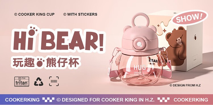 炊大皇(COOKER KING)大肚杯大容量水杯双饮吸管杯便携高颜值男女儿童塑料杯