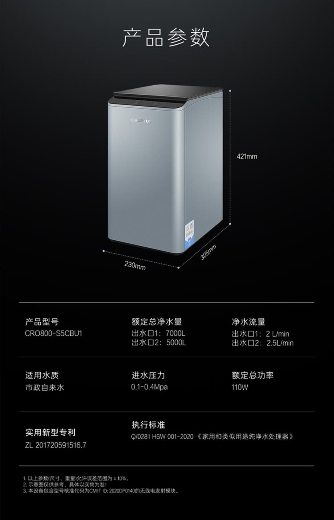 卡萨帝 (Casarte)净水机CRO800-S5CBU1云鲸