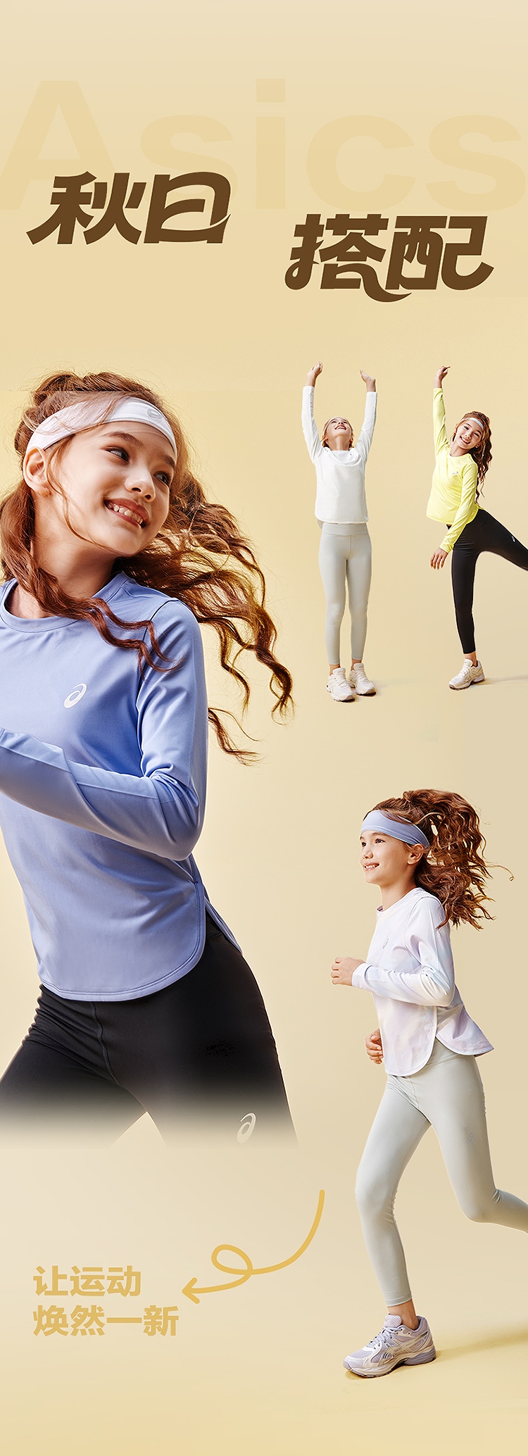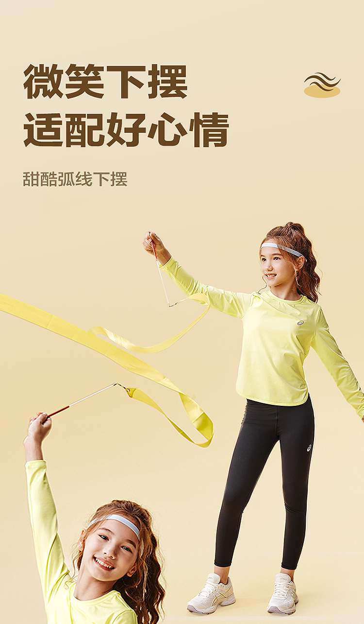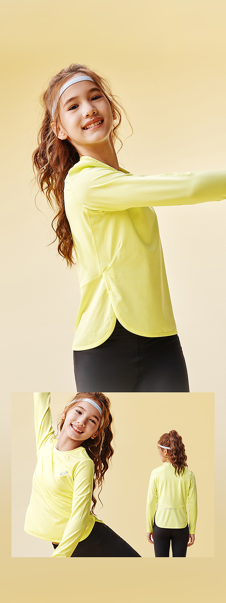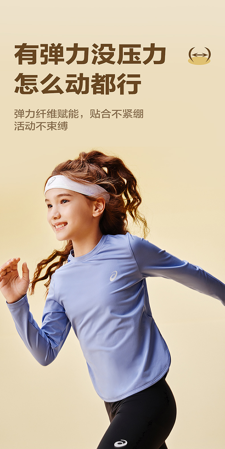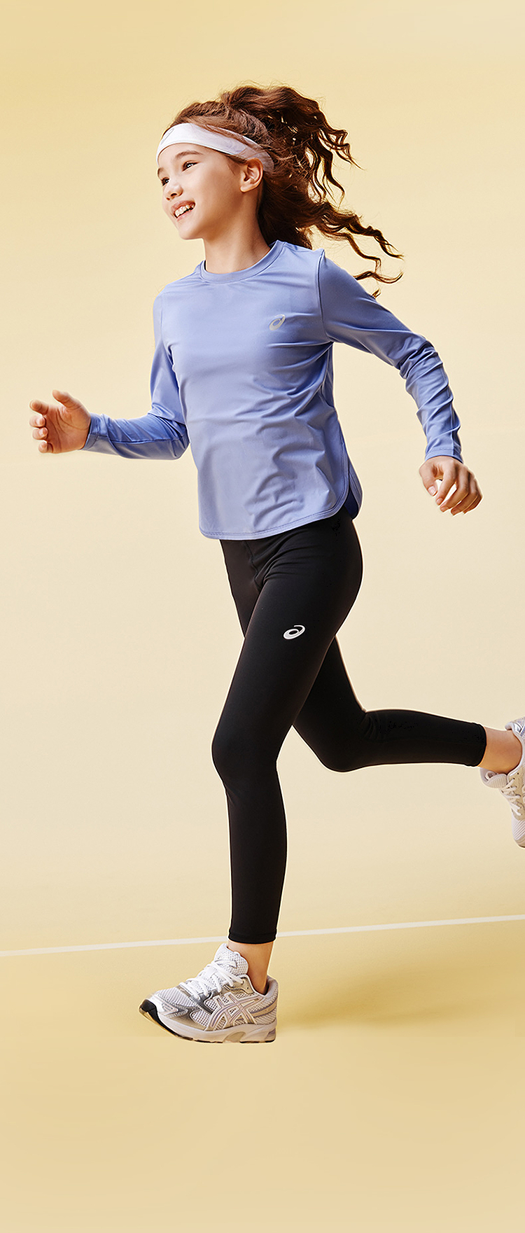 ASICS/亚瑟士童装25年秋季女童运动吸湿长袖弹力有型飓风秒干衣