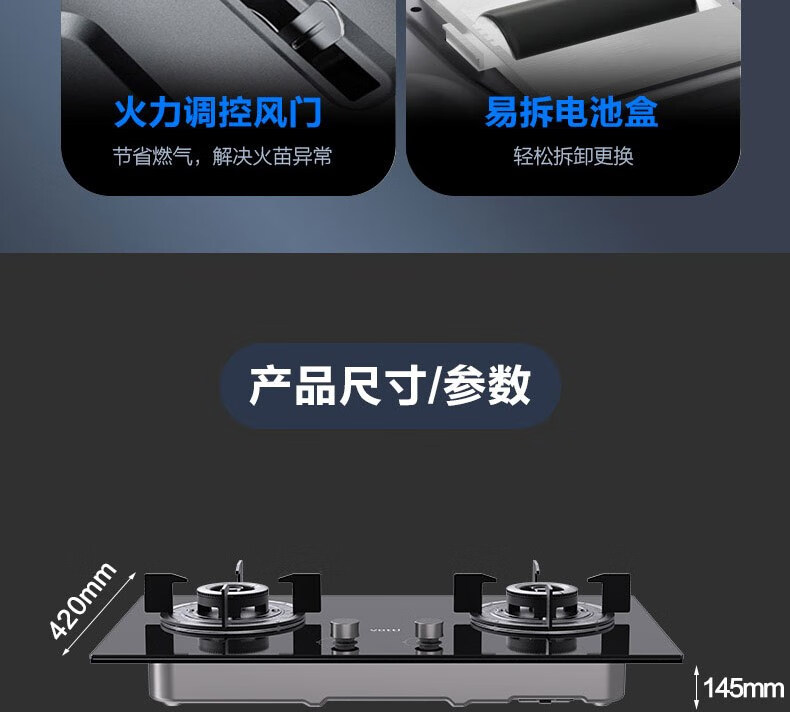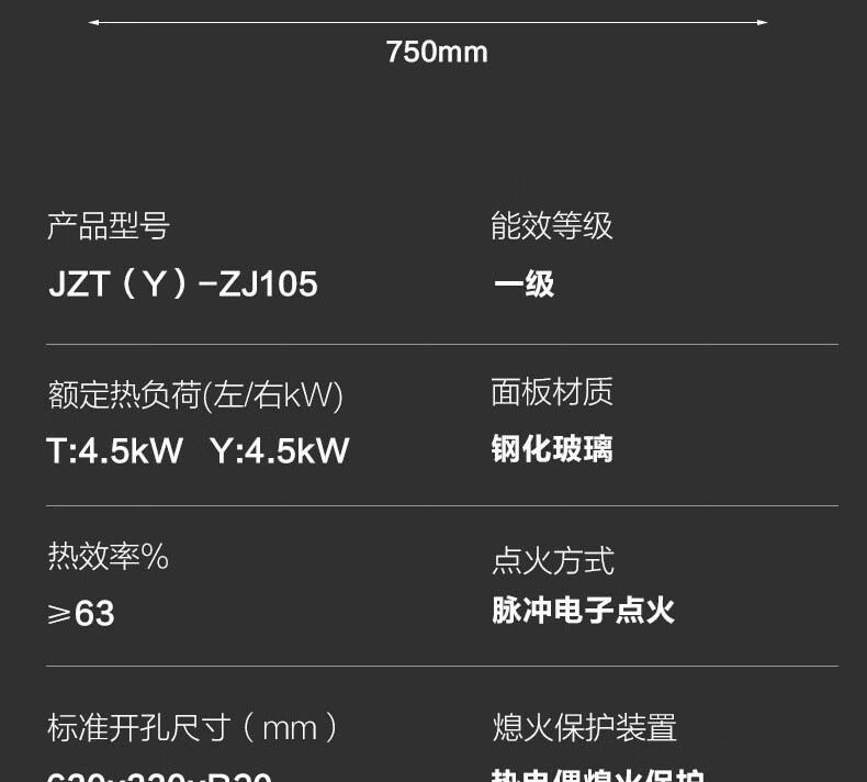 华帝(VATTI) 防爆钢化面板 熄火保护 双眼灶燃气灶 家用嵌入式 4.5kW 一级能效JZT-ZJ105(天然气液化气)