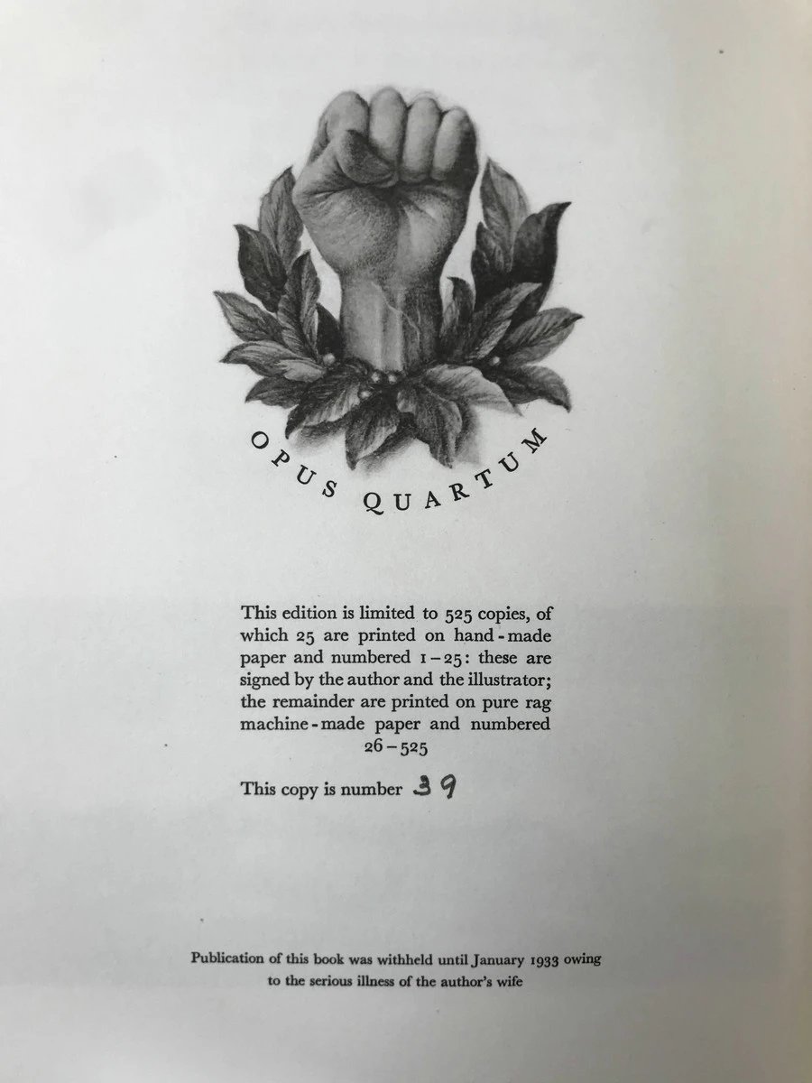 限量525册!1932年 爱德华·詹姆斯《下一卷》 拉·惠斯勒特约20幅插图 漆布精装16开