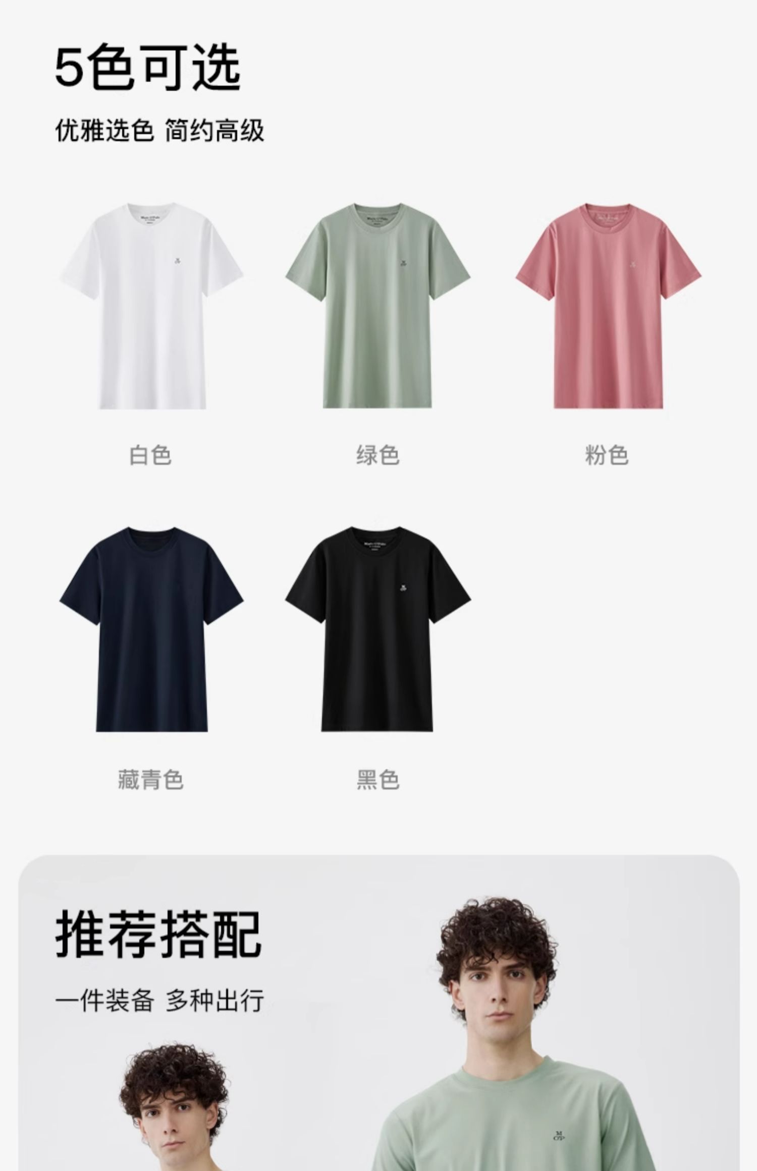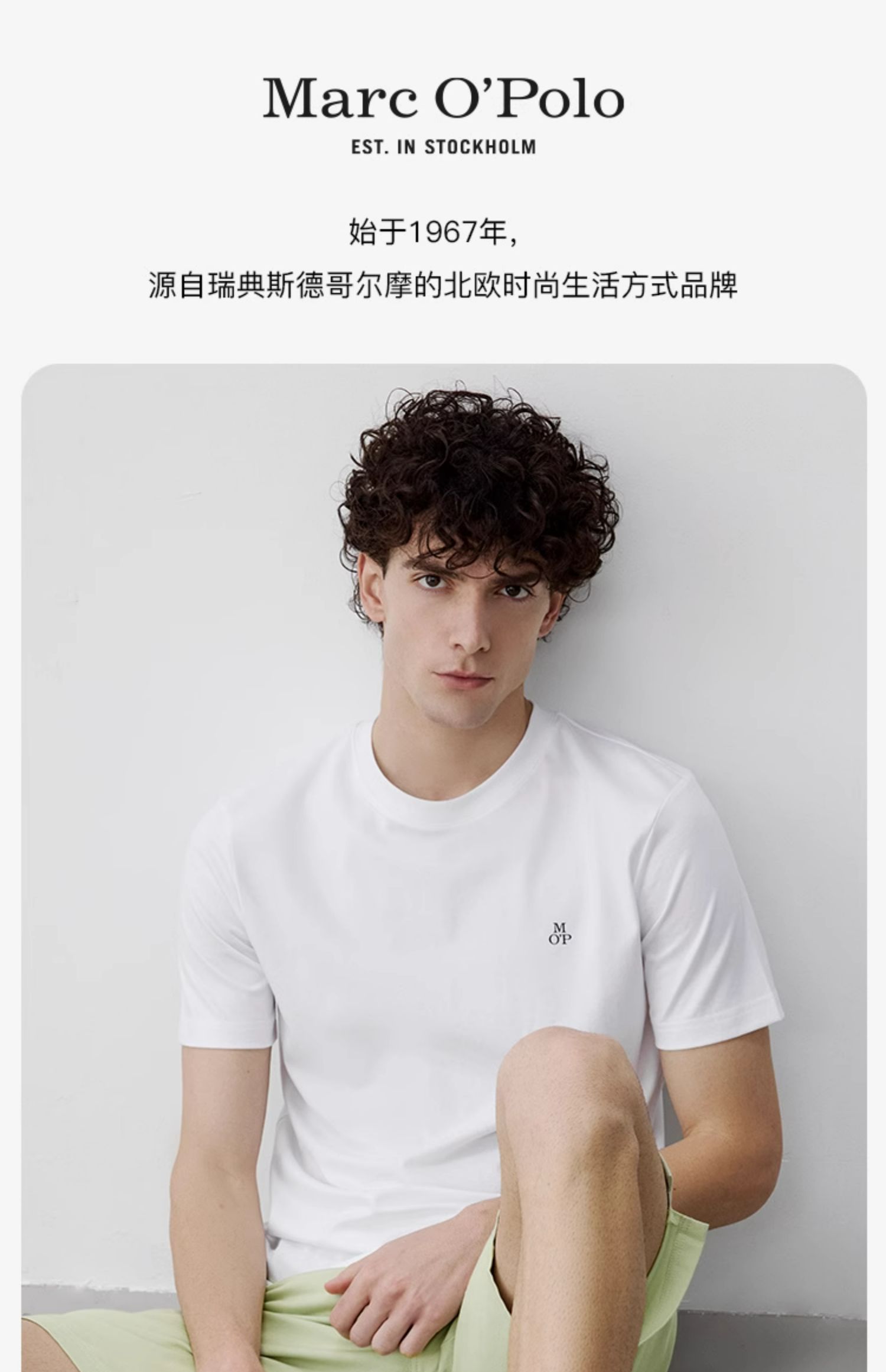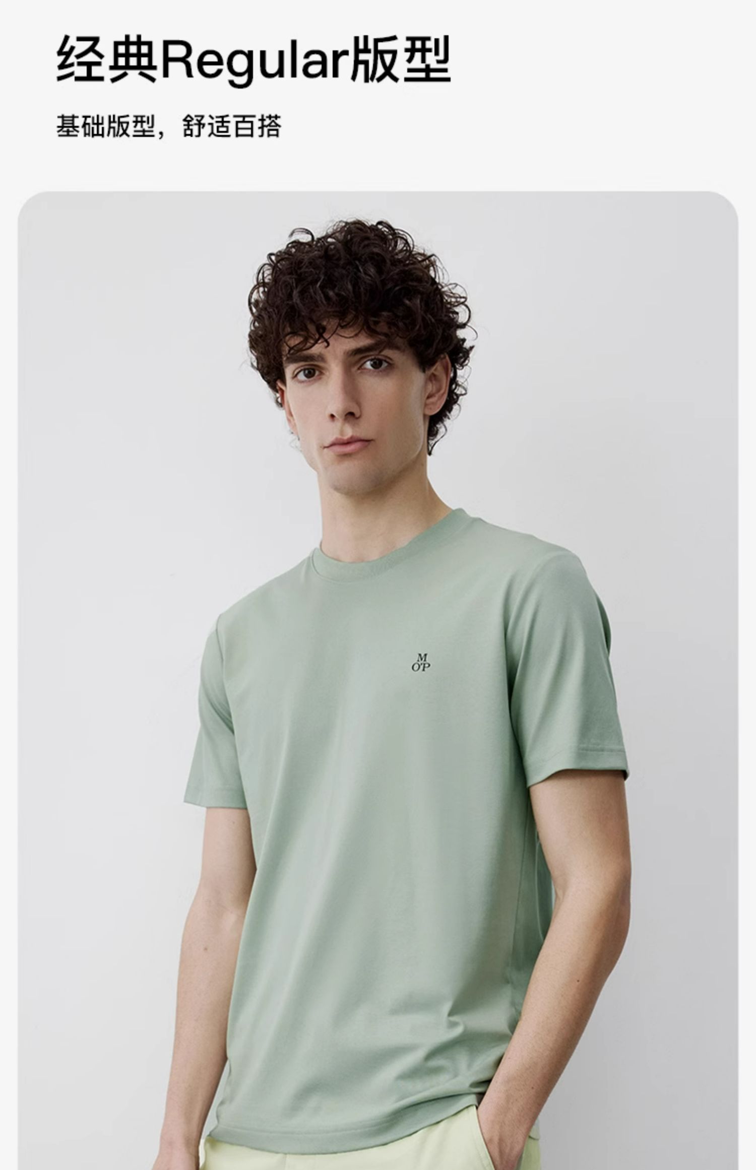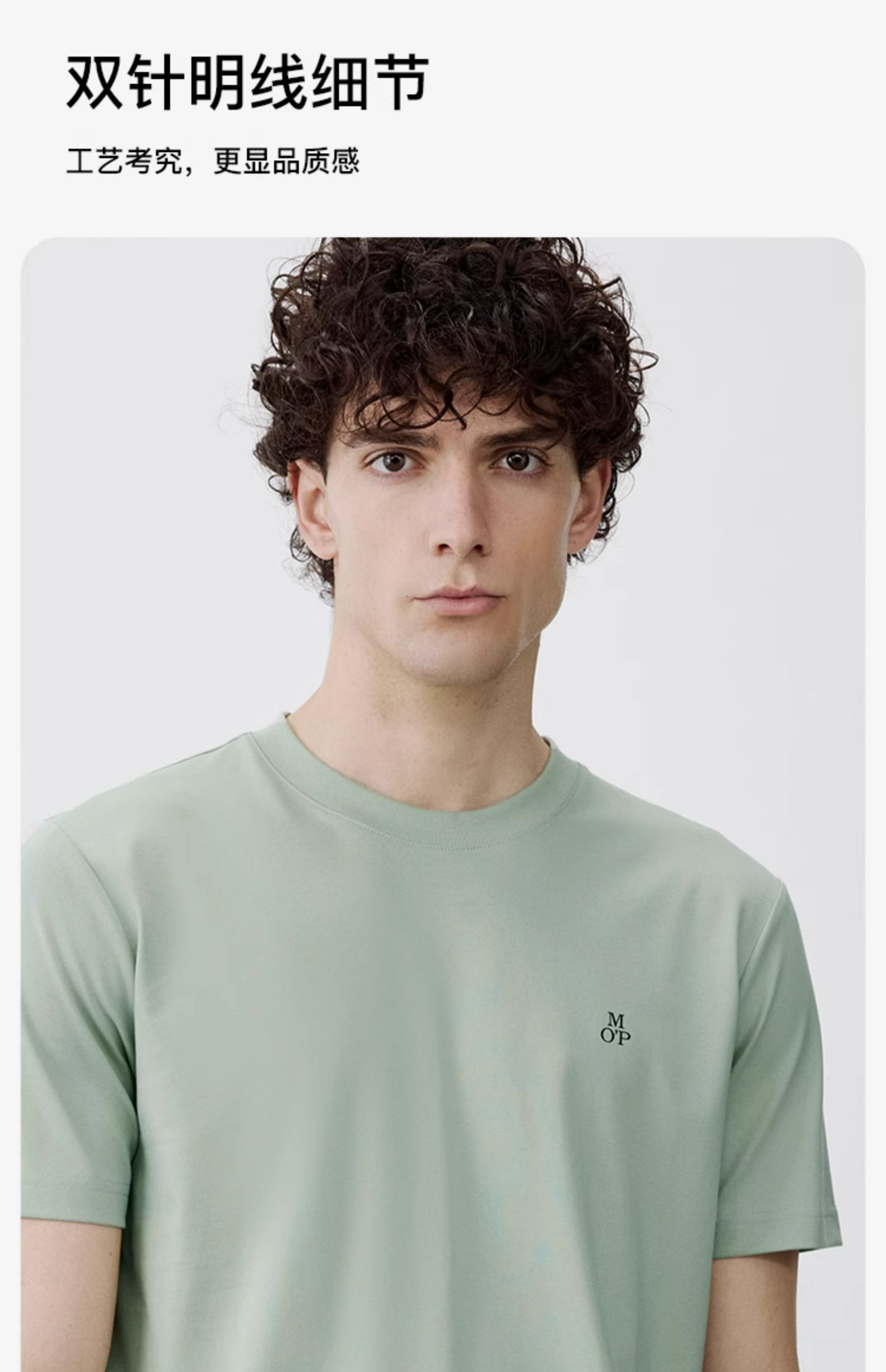 Marc O'Polo/MOP 夏季新款圆领水柔棉透气吸汗纯色短袖T恤男
