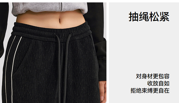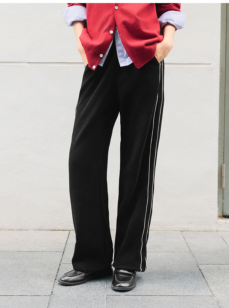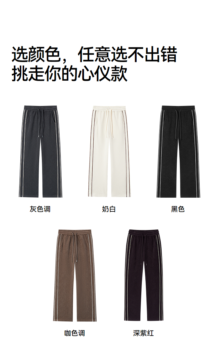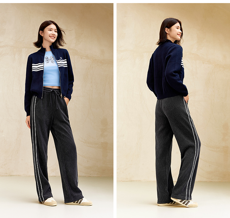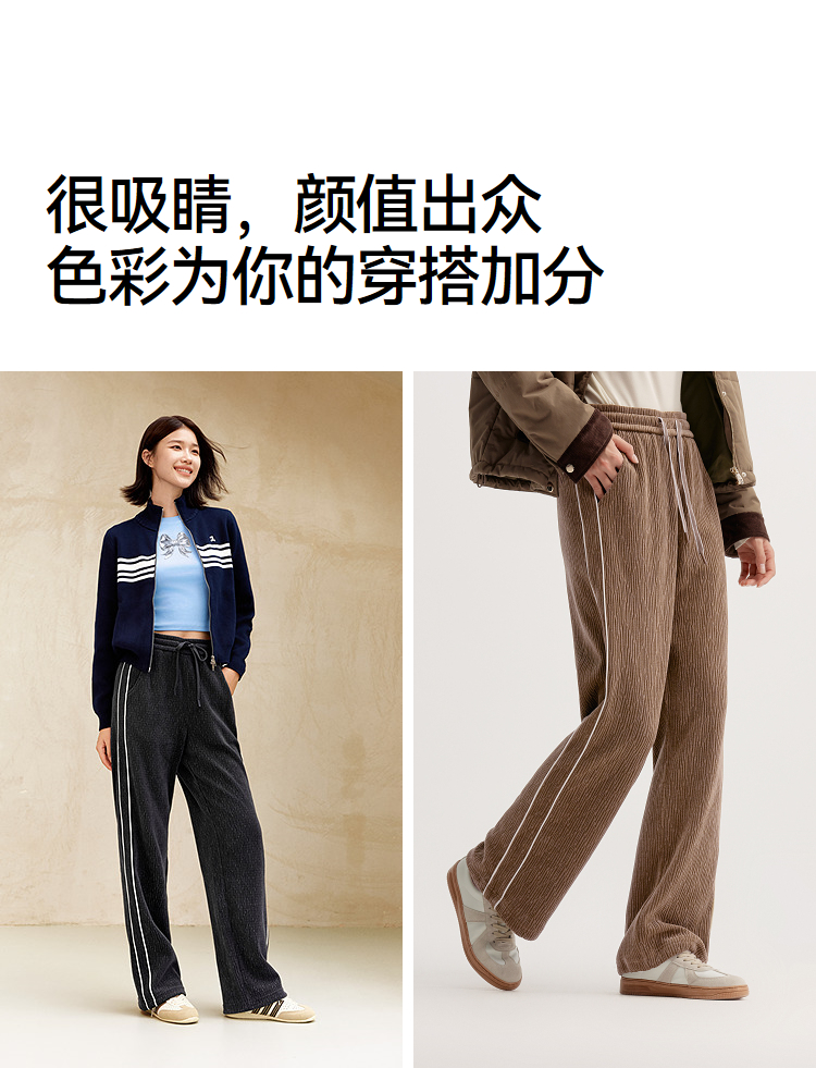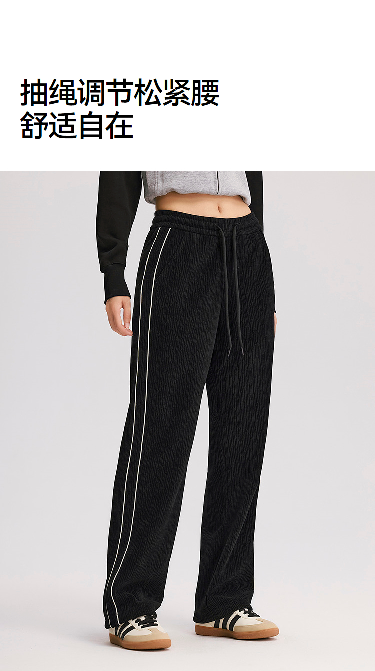 森马休闲裤女撞色宽松长裤显腿长百搭潮流冬雪尼尔阔腿裤垂感时尚