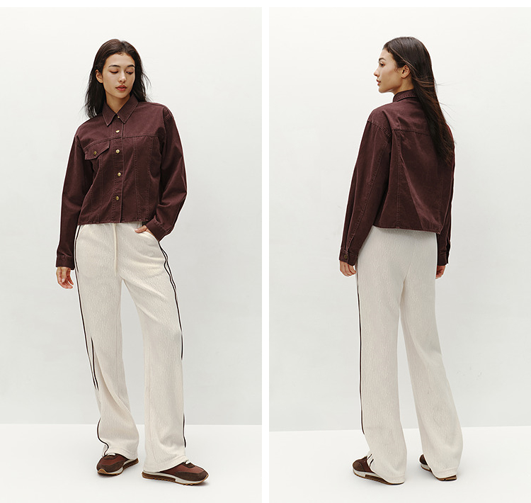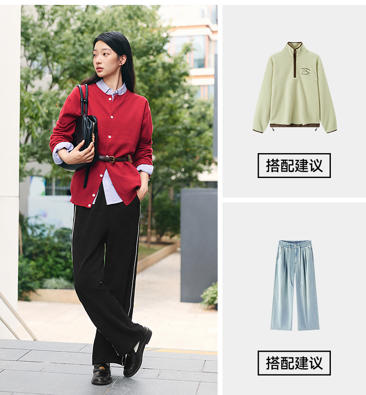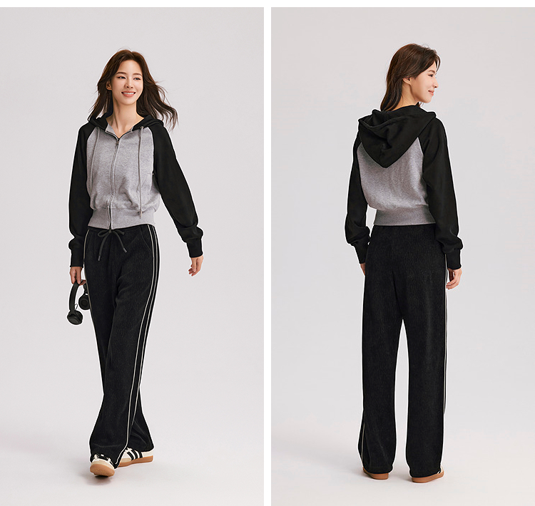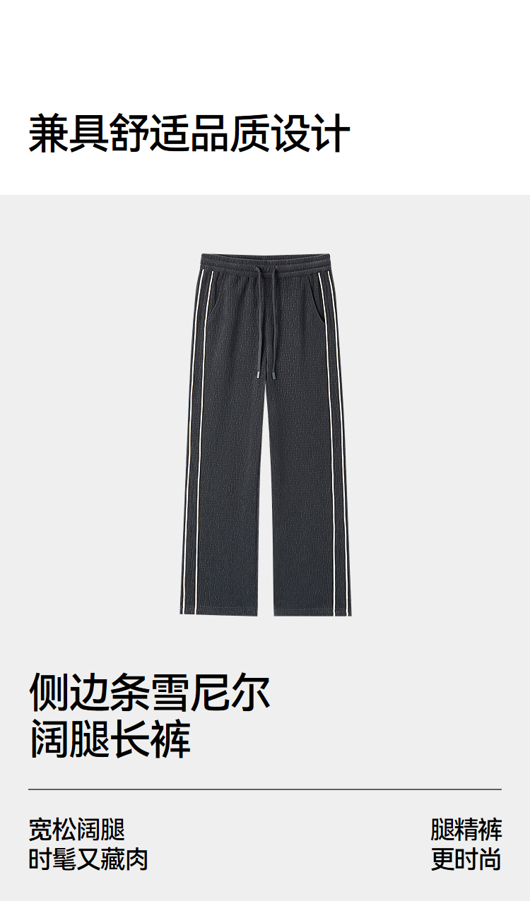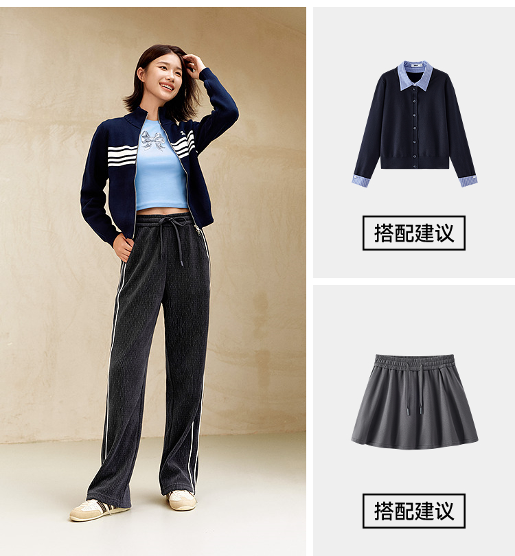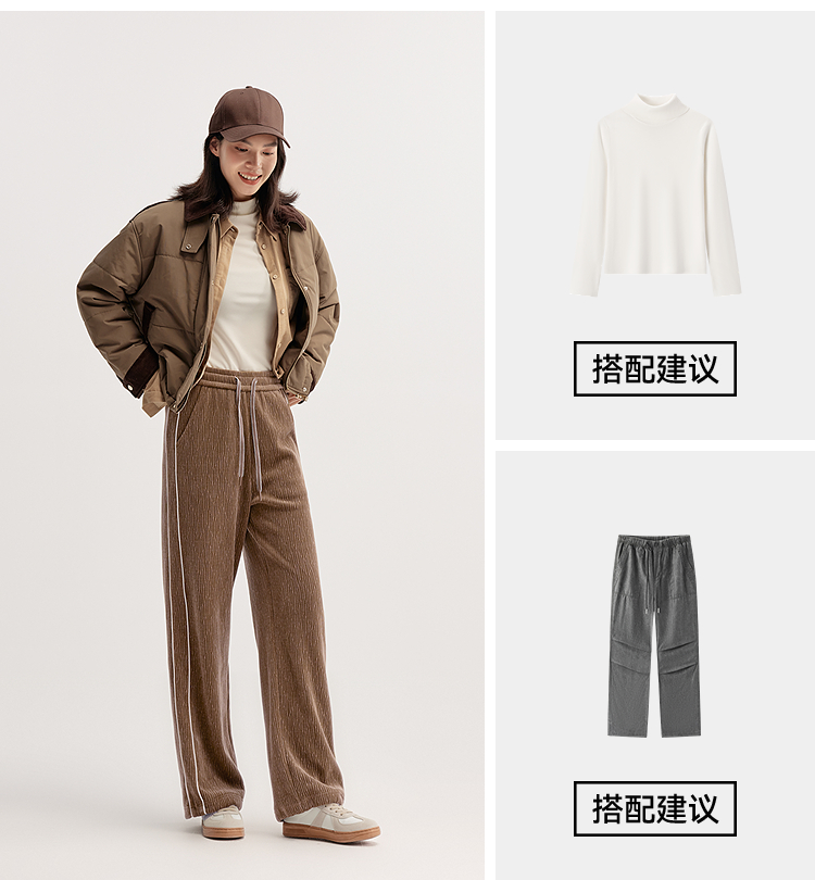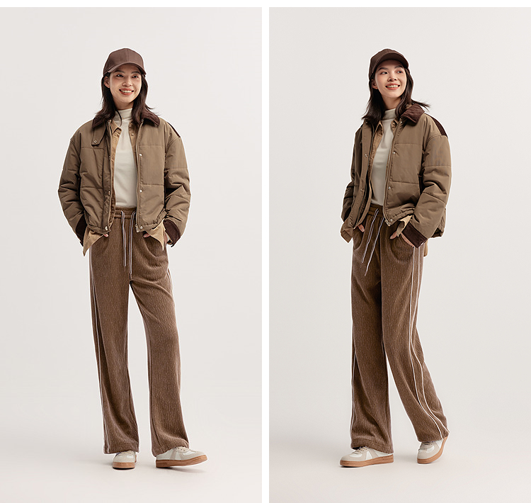 森马休闲裤女撞色宽松长裤显腿长百搭潮流冬雪尼尔阔腿裤垂感时尚